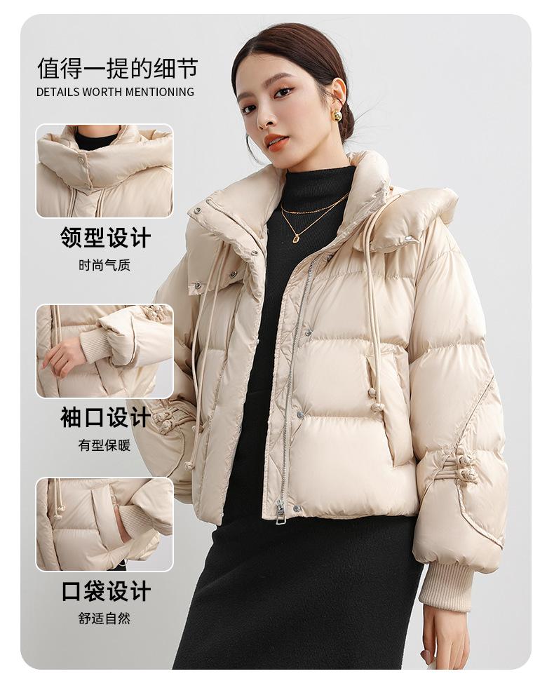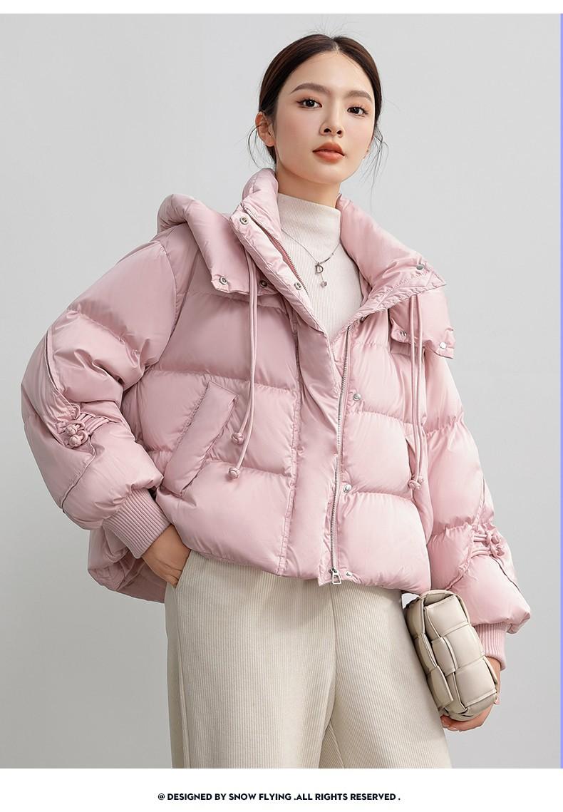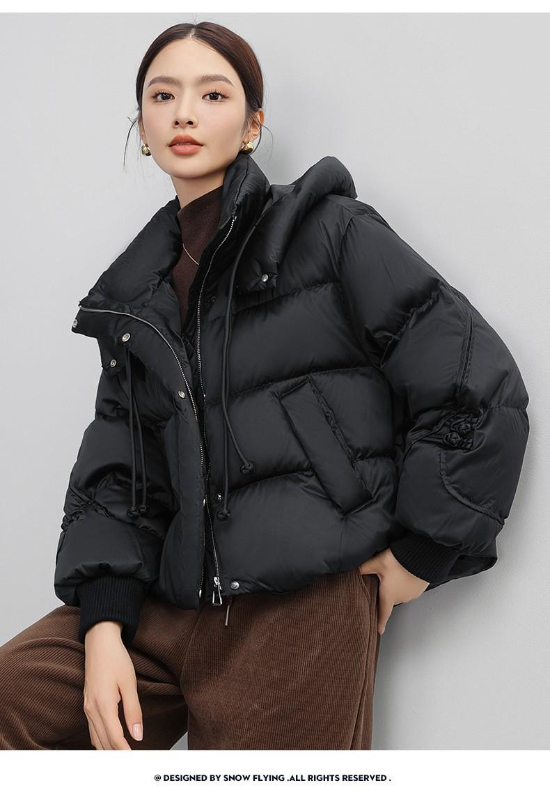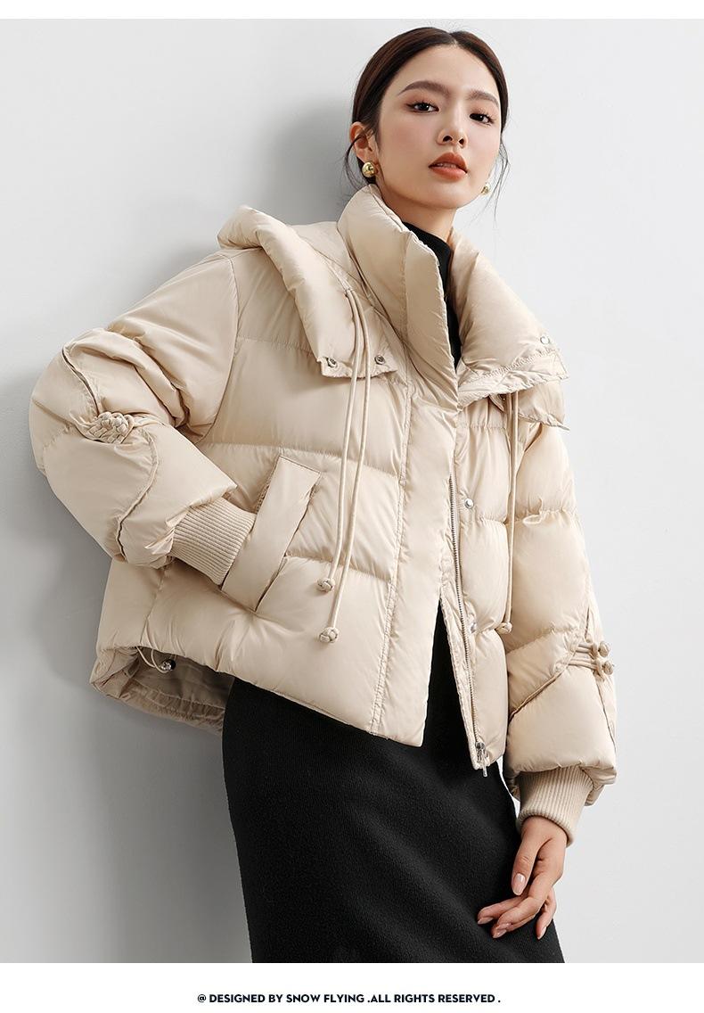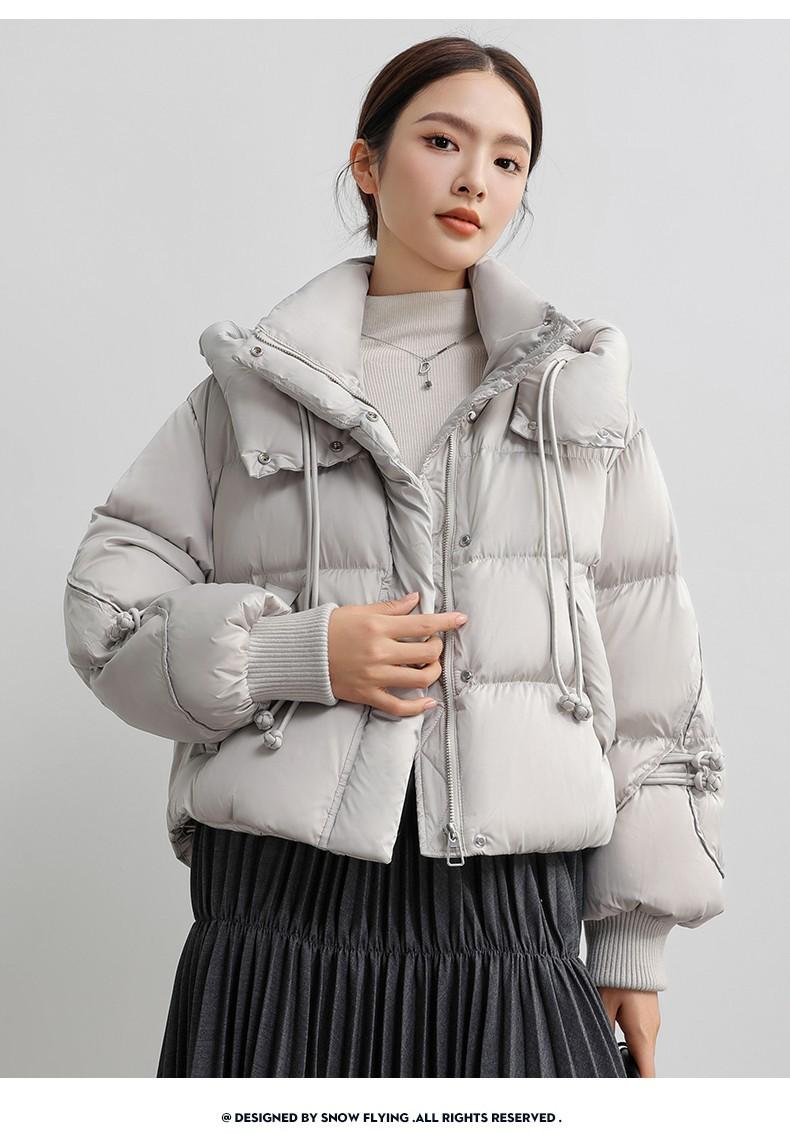 Snow Flying 90 Plumón de Pato Blanco Chaqueta Plumón Nube para Mujer Corta Invierno Nueva Color Sólido con Capucha Abrigo Pan para Mujer