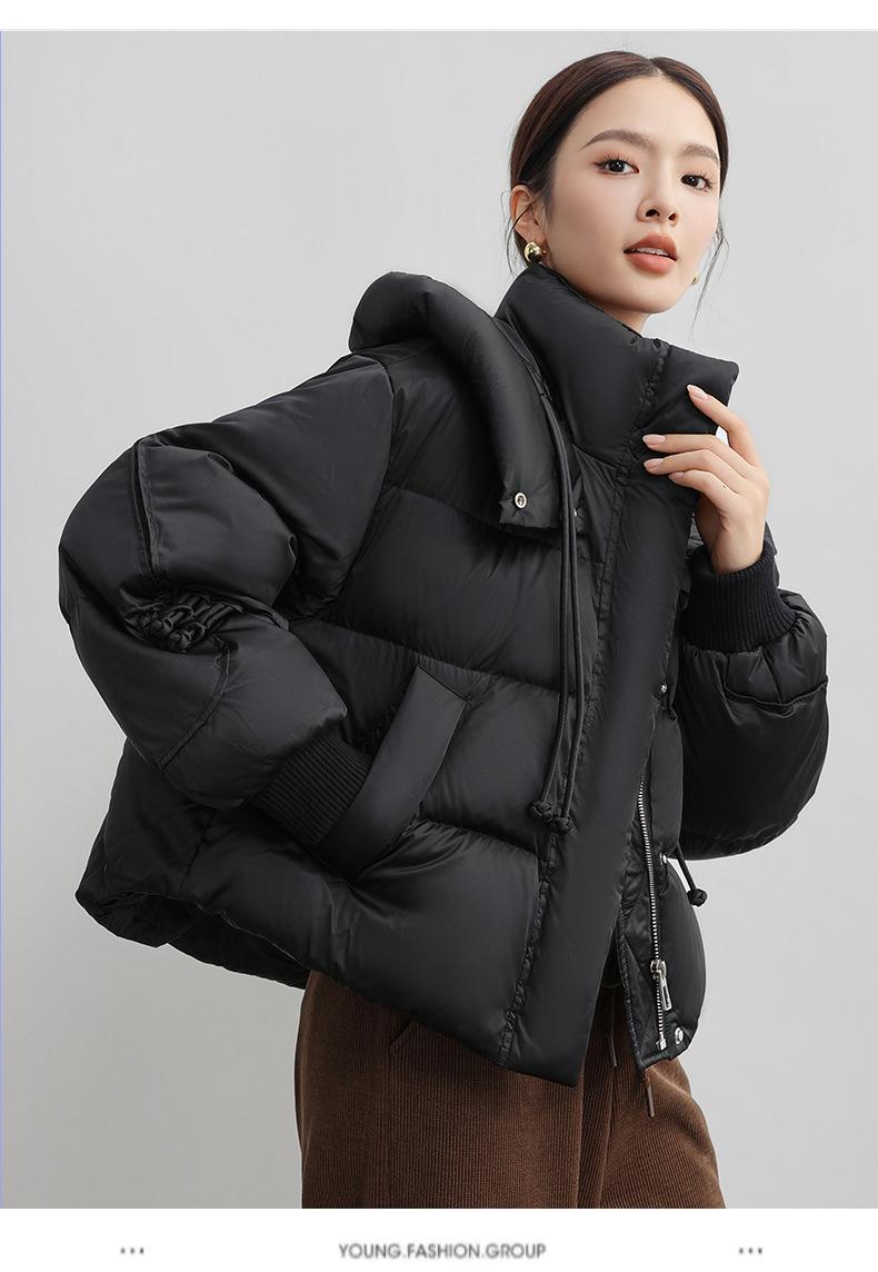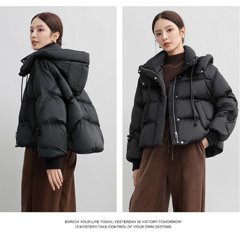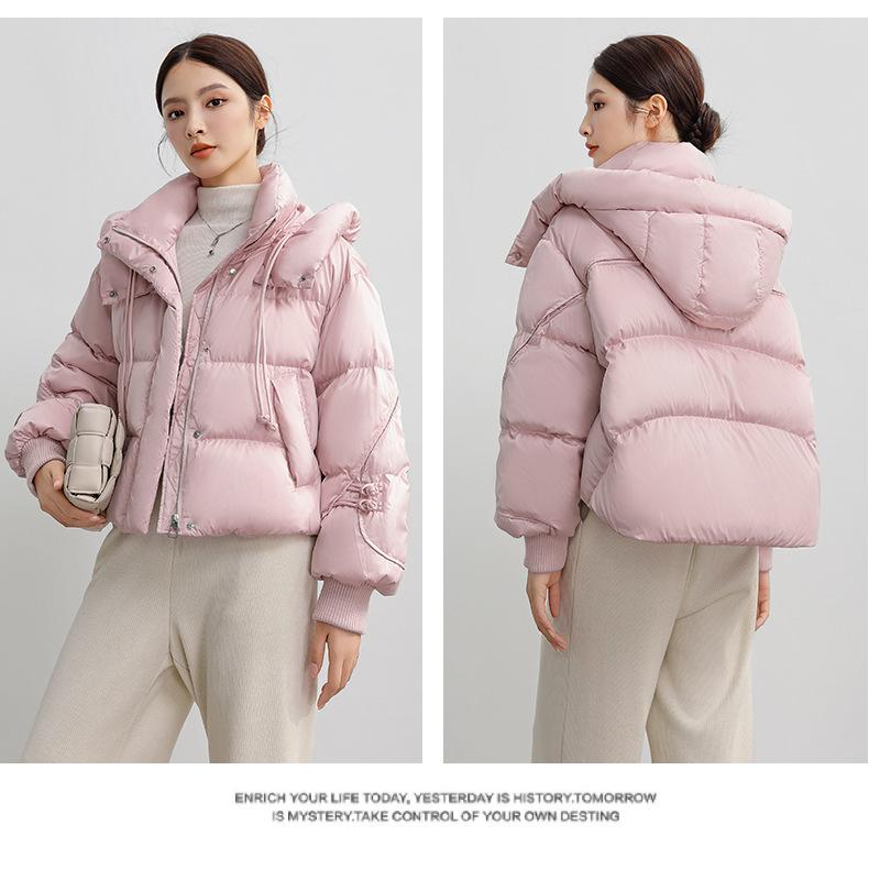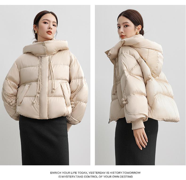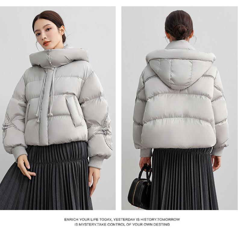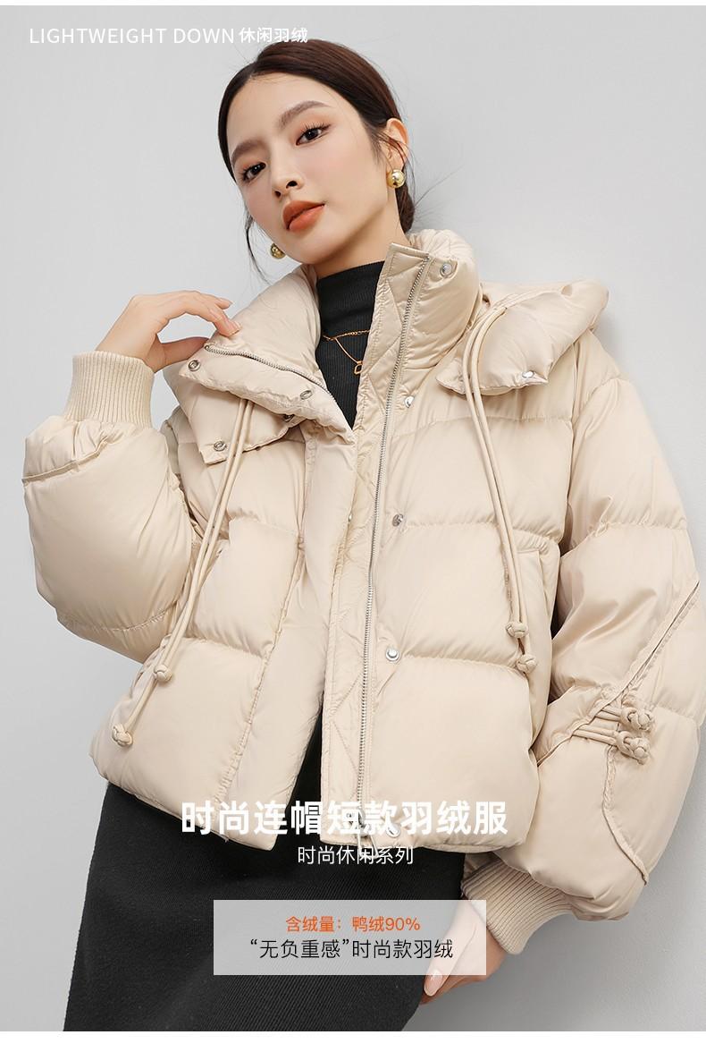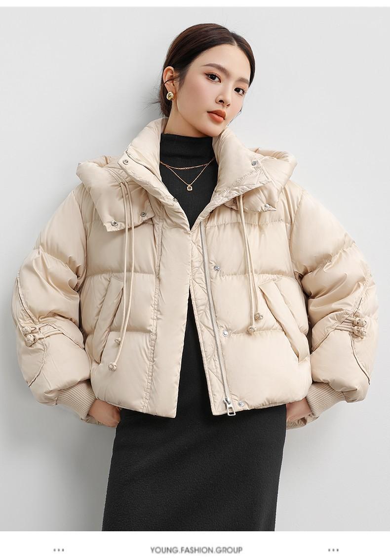Snow Flying 90 Plumón de Pato Blanco Chaqueta Plumón Nube para Mujer Corta Invierno Nueva Color Sólido con Capucha Abrigo Pan para Mujer