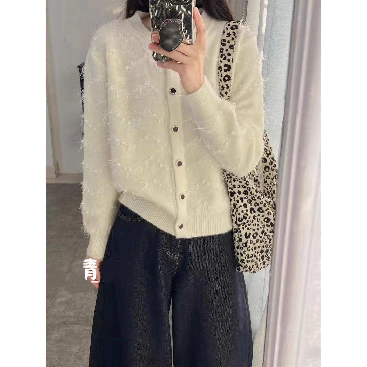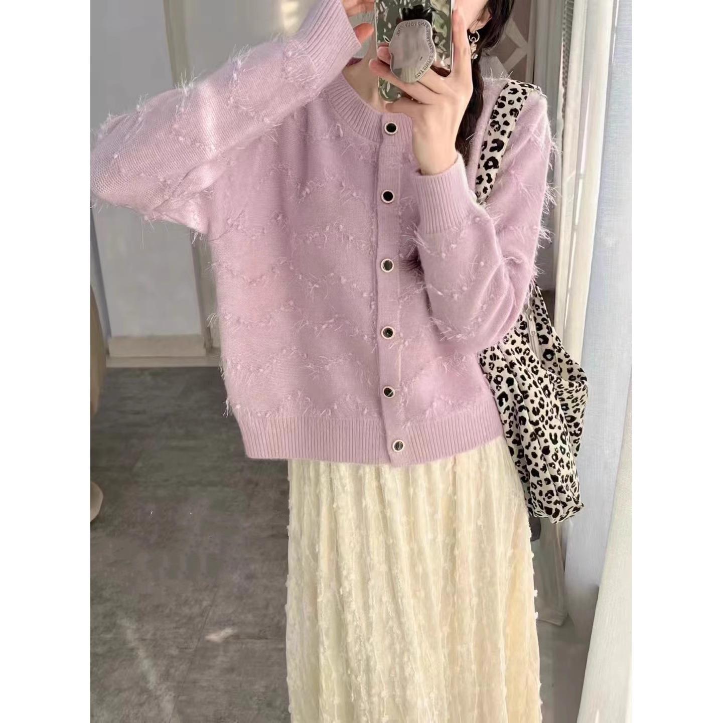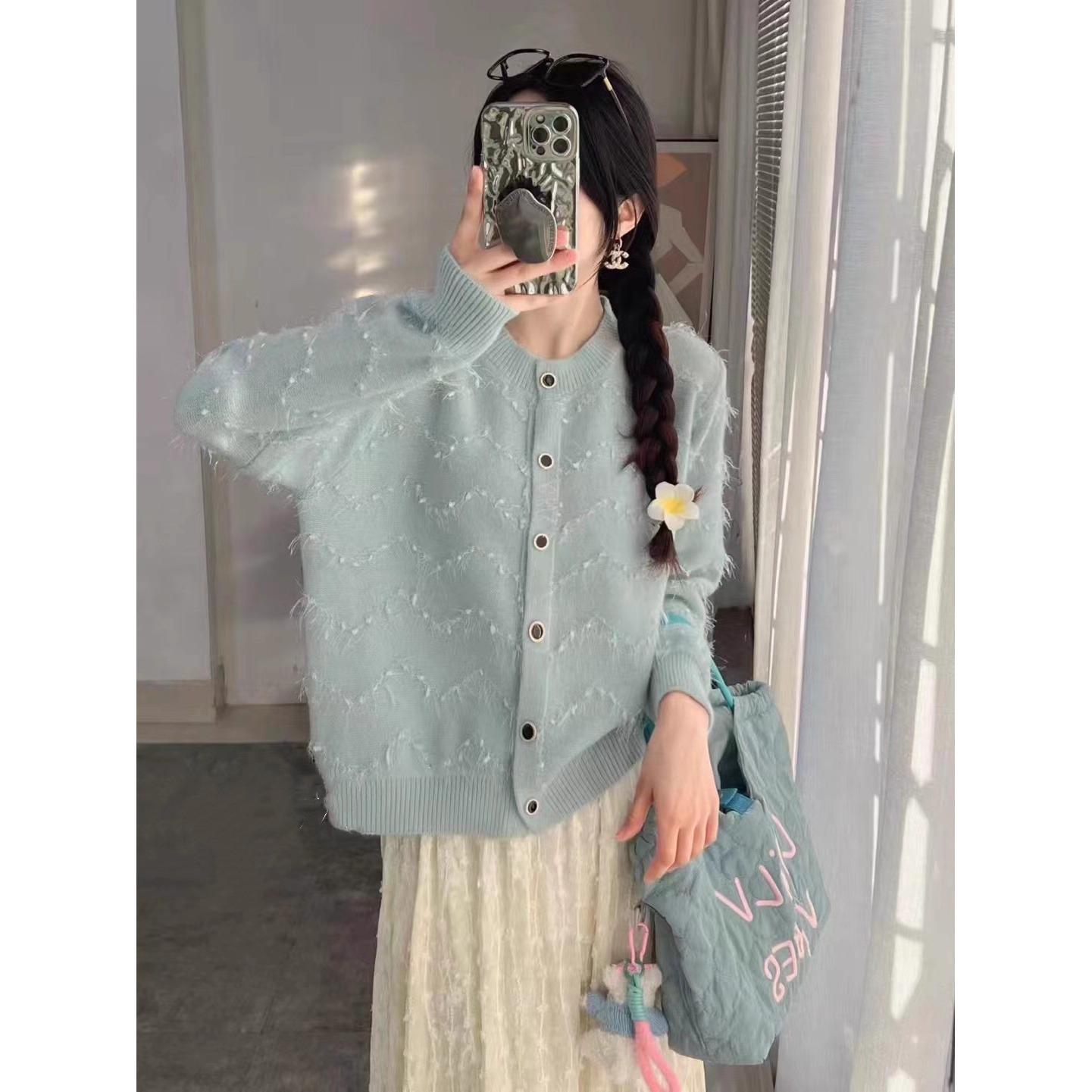 Cárdigan Suéter Tejido de Manga Larga con Cuello Redondo y Borlas para Mujer Primavera 2025 Nuevo Nicho Suelto Suave Encerado Chaqueta Top Trendy