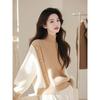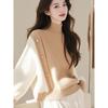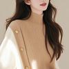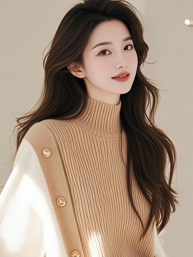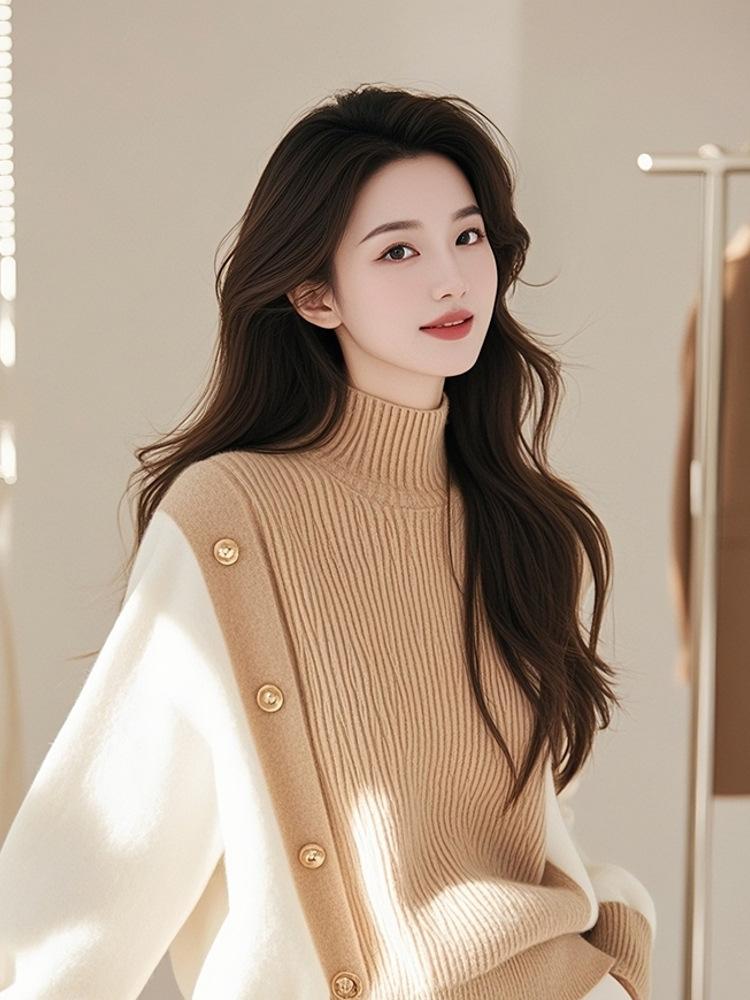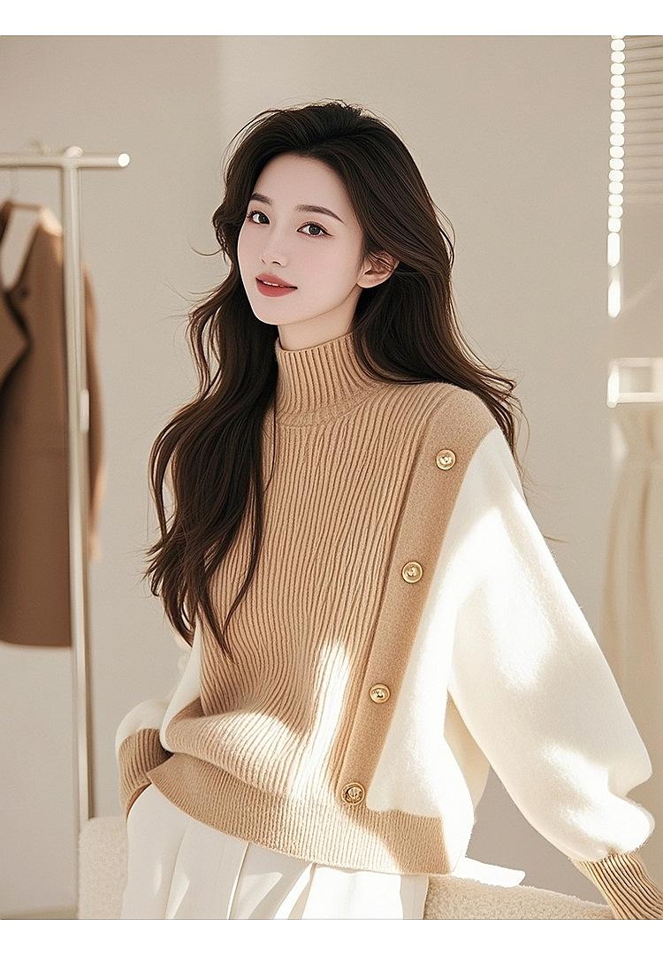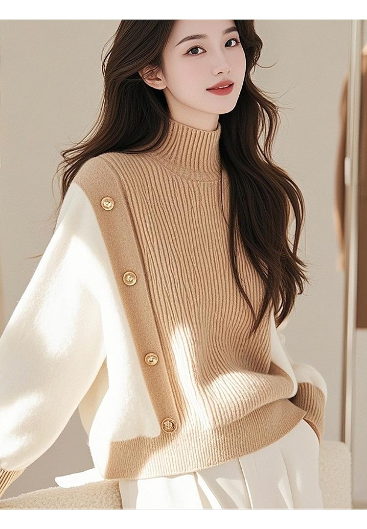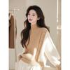 Suéter de Punto de Cuello Alto con Bloque de Color para Mujer Otoño/Invierno 2025 Nuevo Diseño Único Niche Perezoso Manga Larga Top