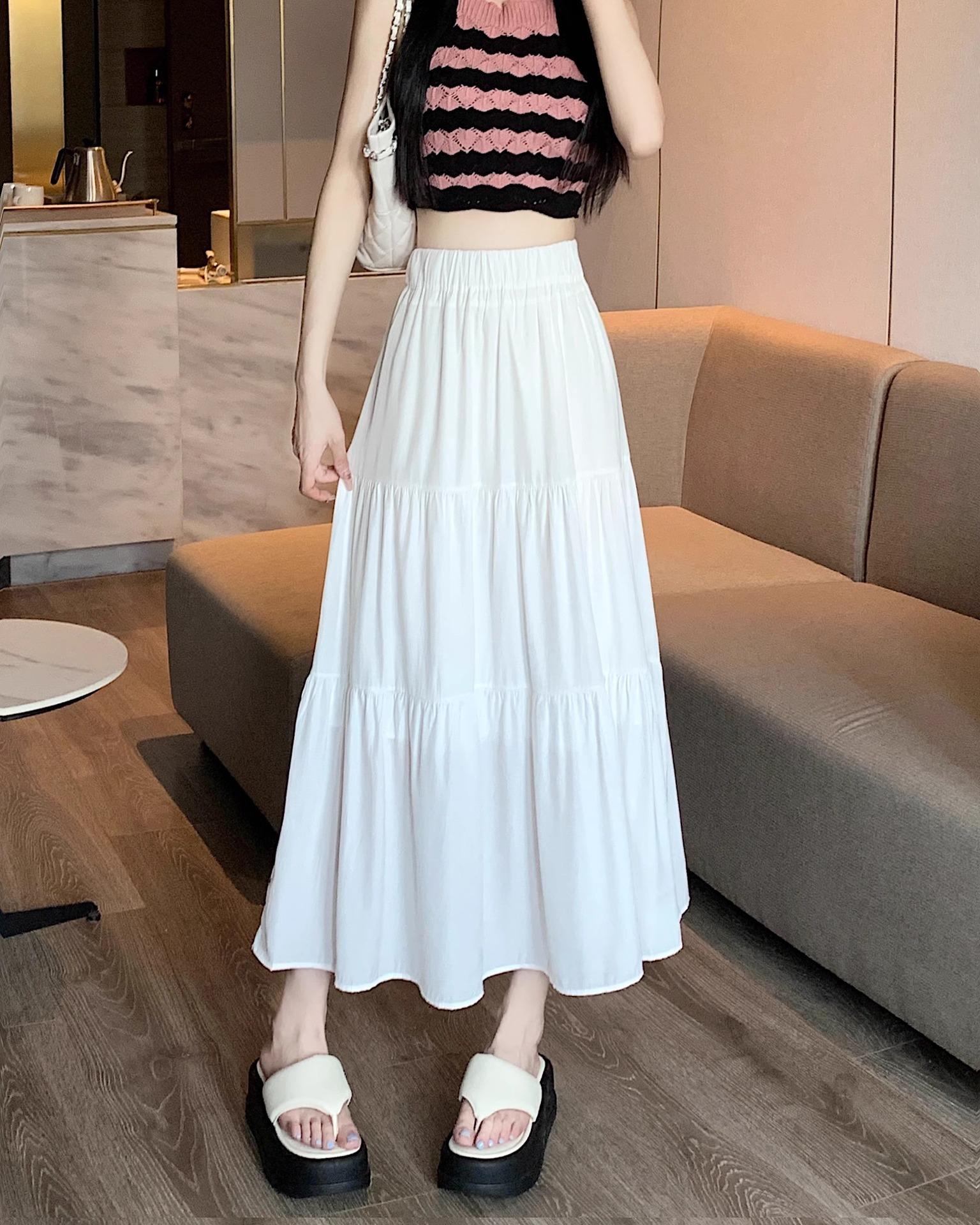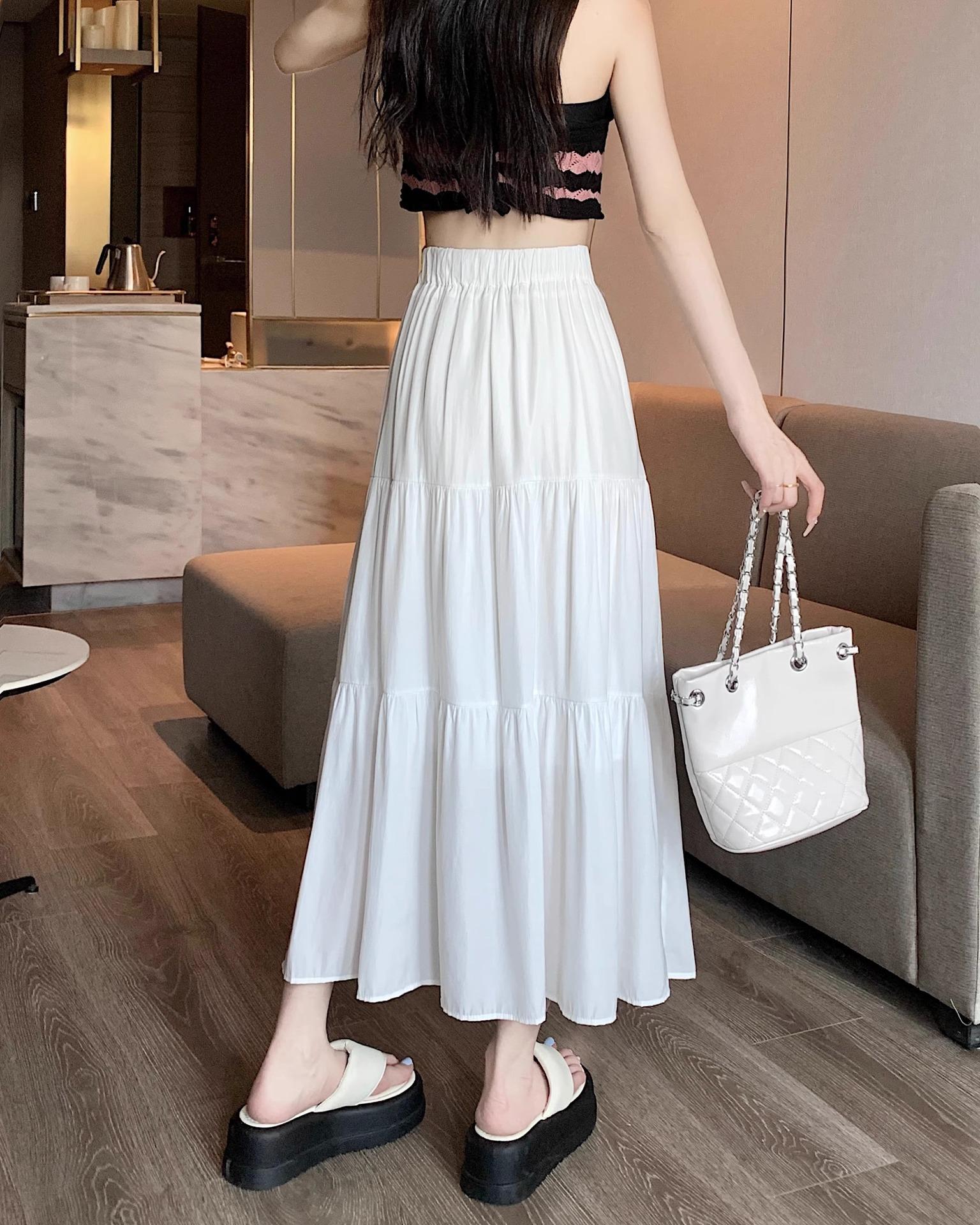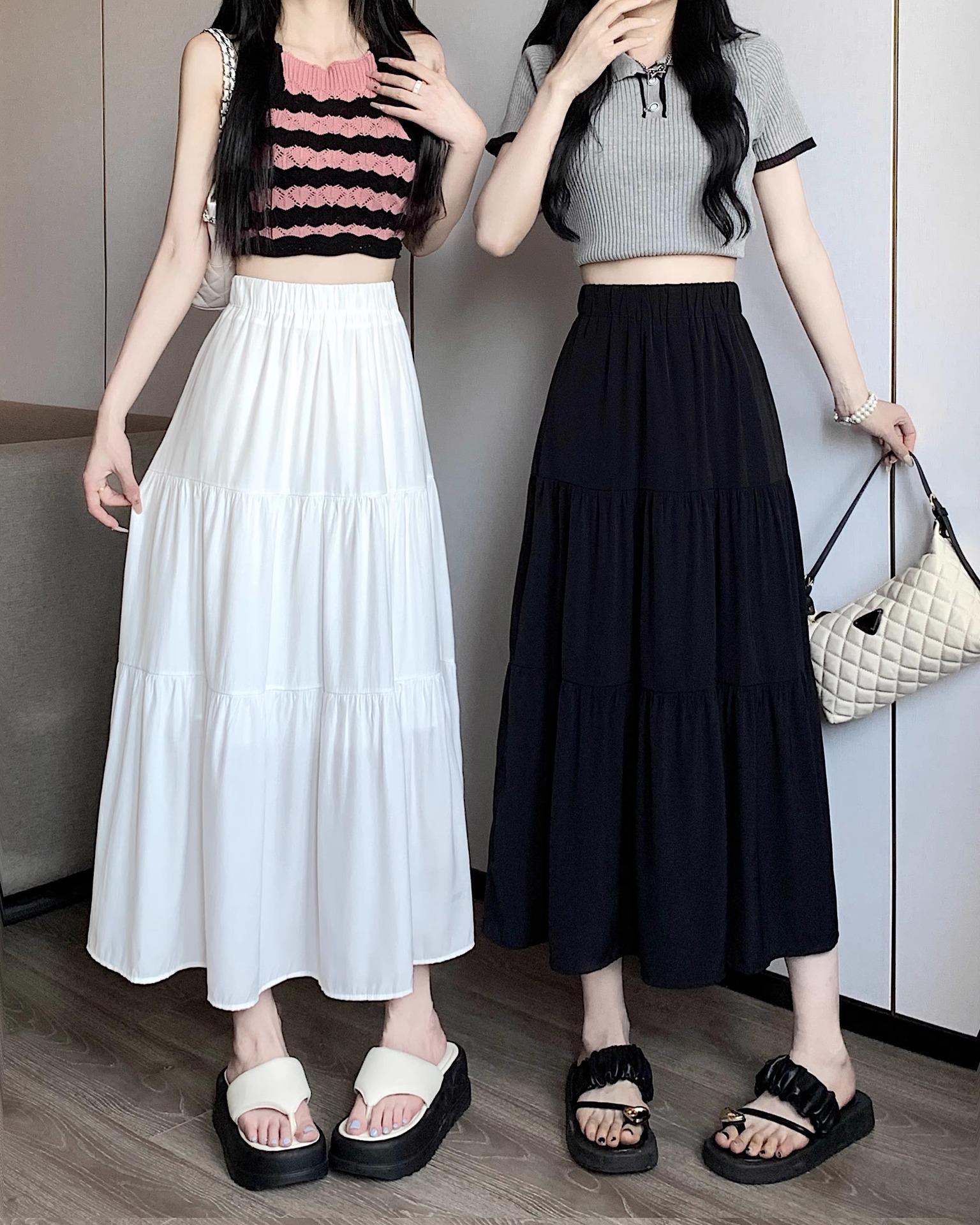 Falda midi negra acampanada falda midi mujer petite verano 2025 nuevo estilo drapeado falda midi cintura alta blanca falda línea A