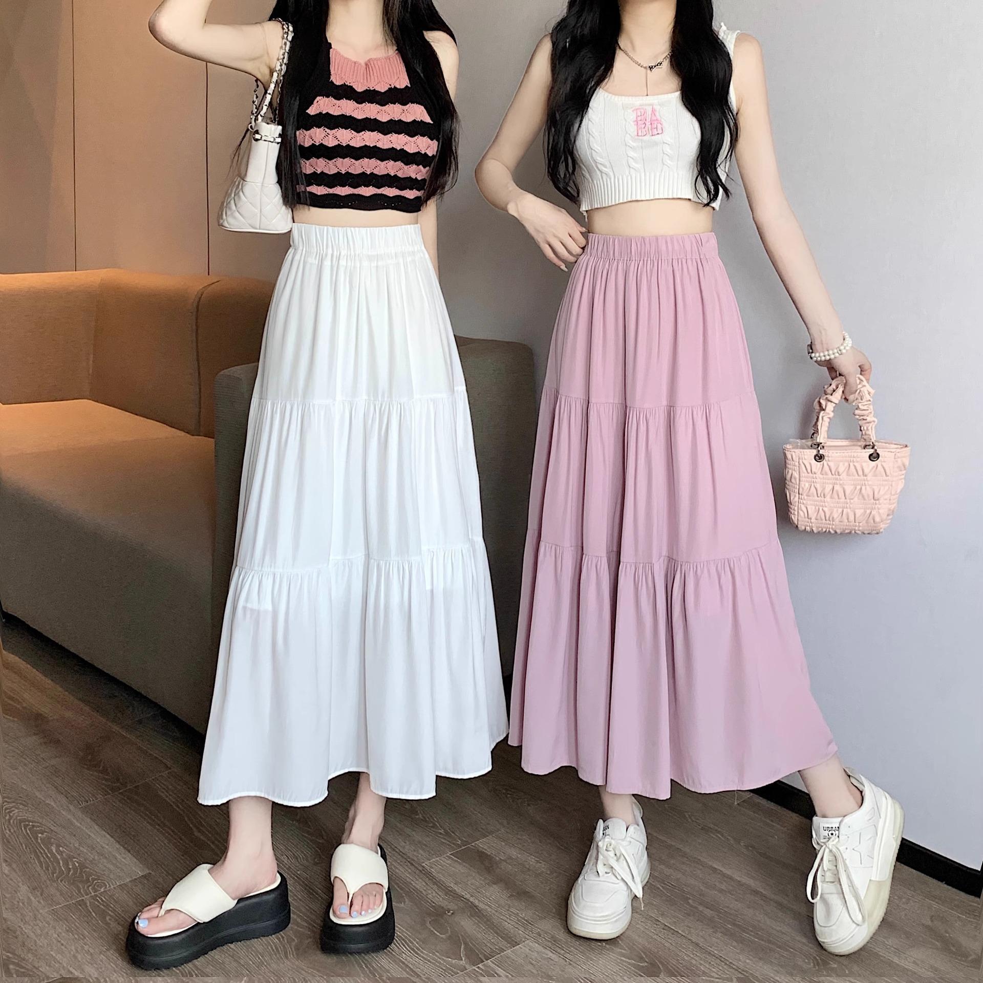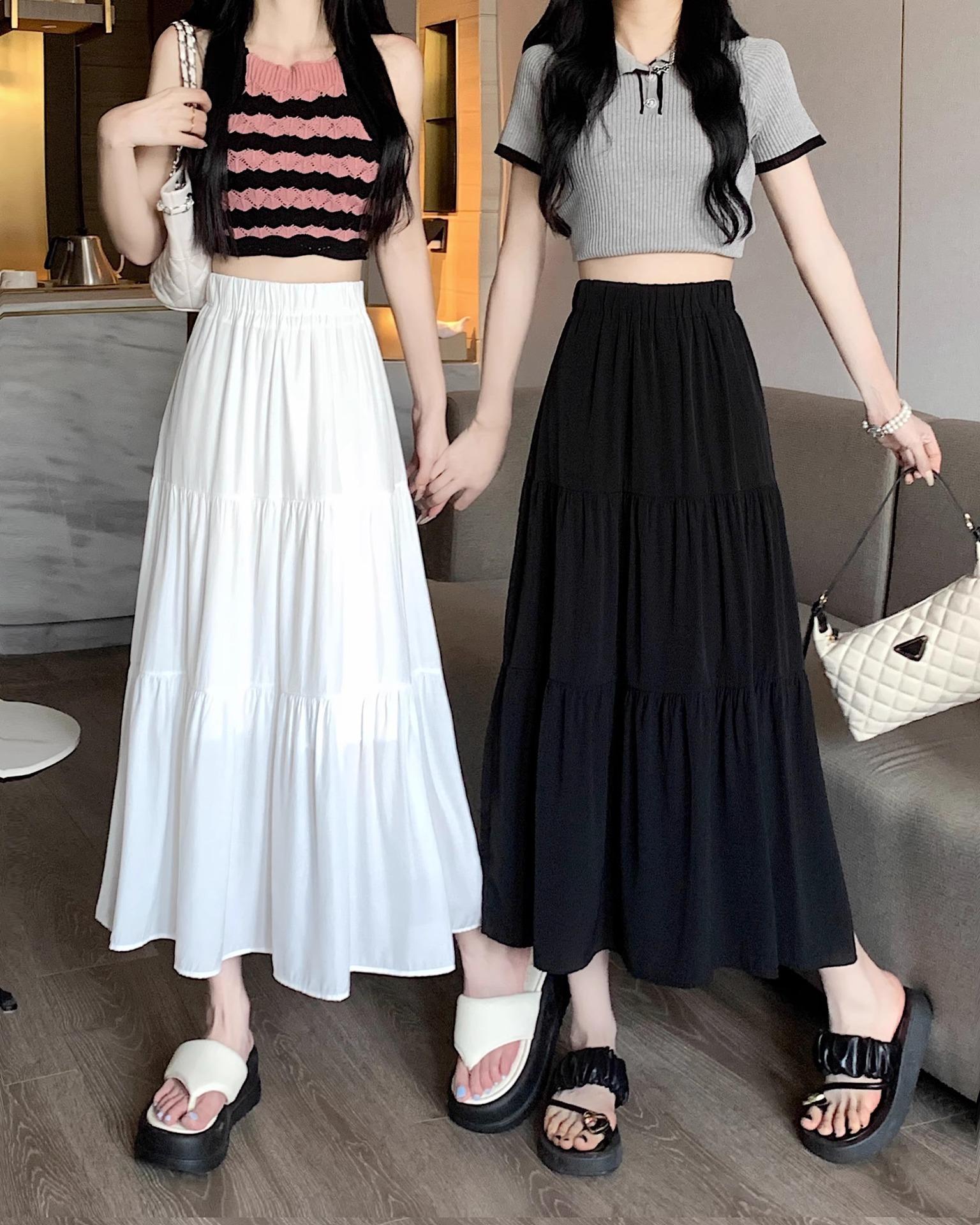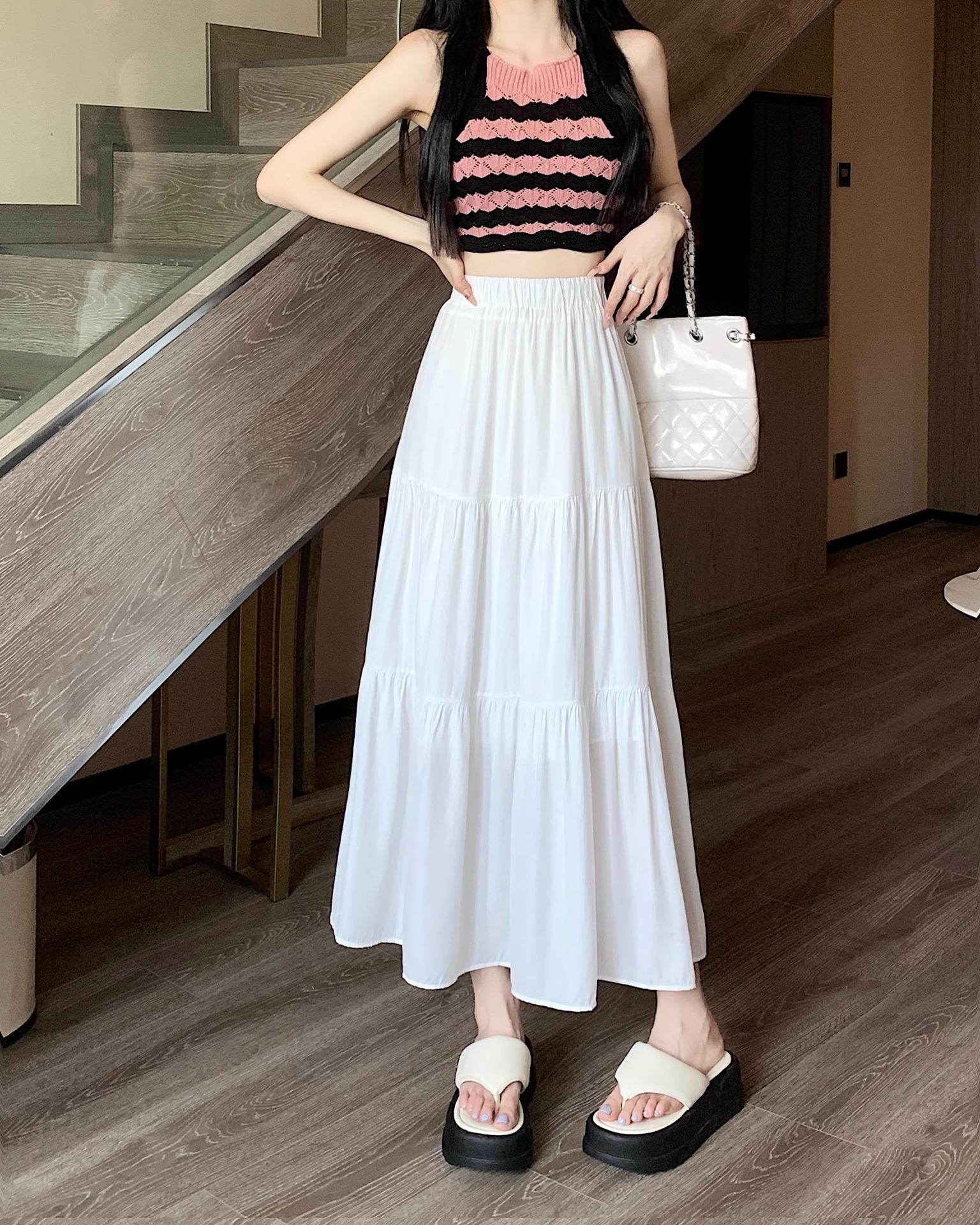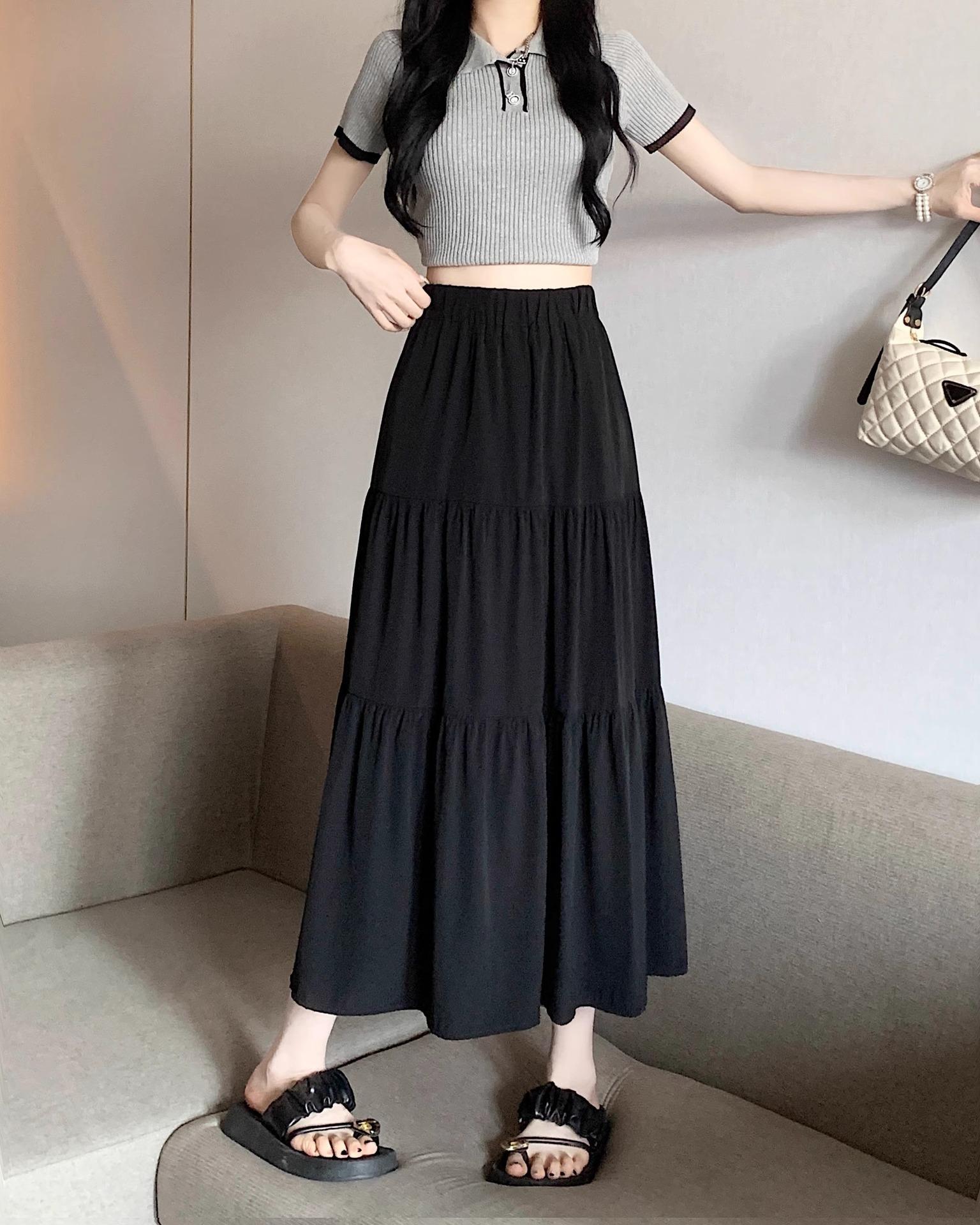 Falda midi negra acampanada falda midi mujer petite verano 2025 nuevo estilo drapeado falda midi cintura alta blanca falda línea A