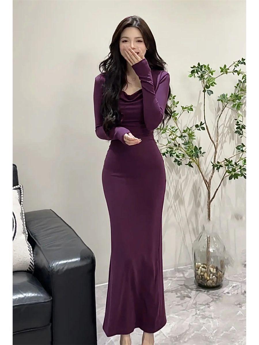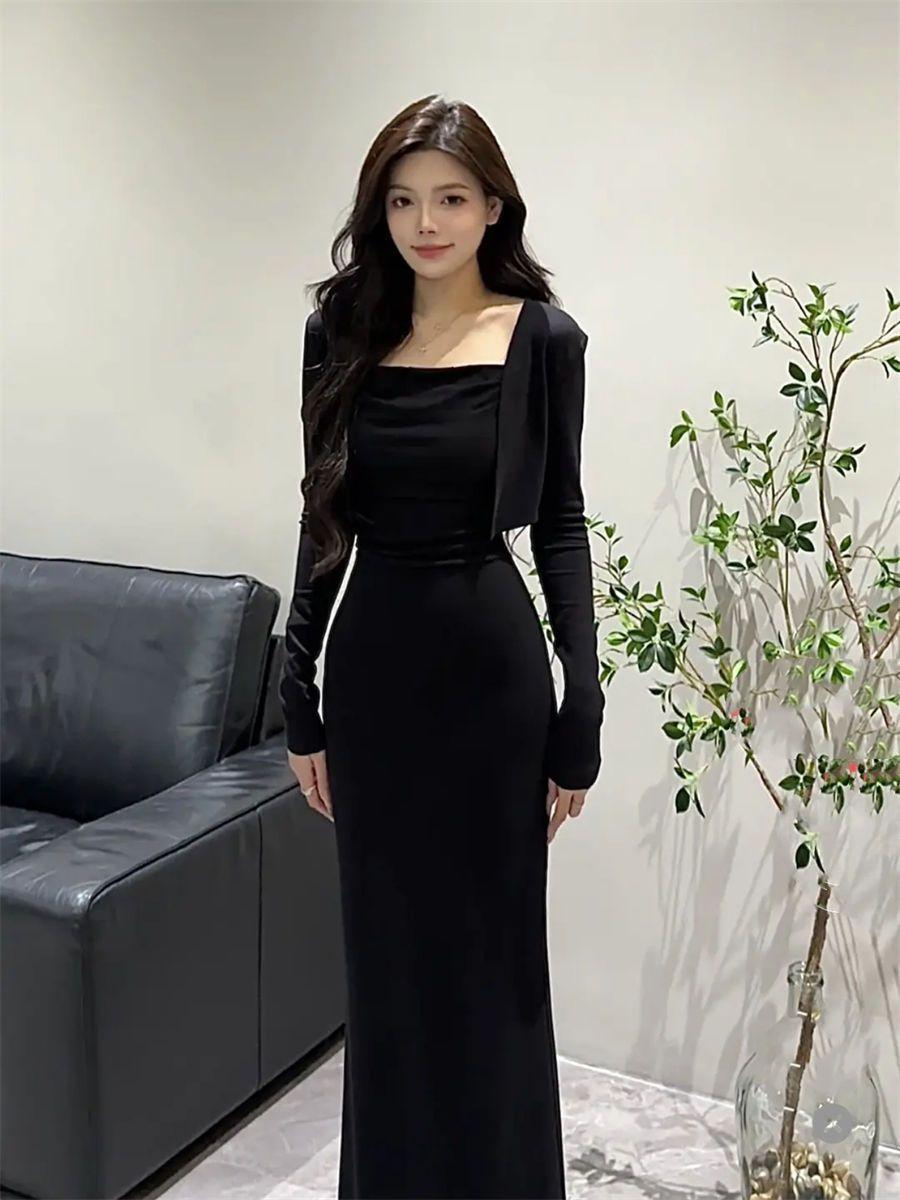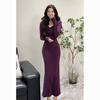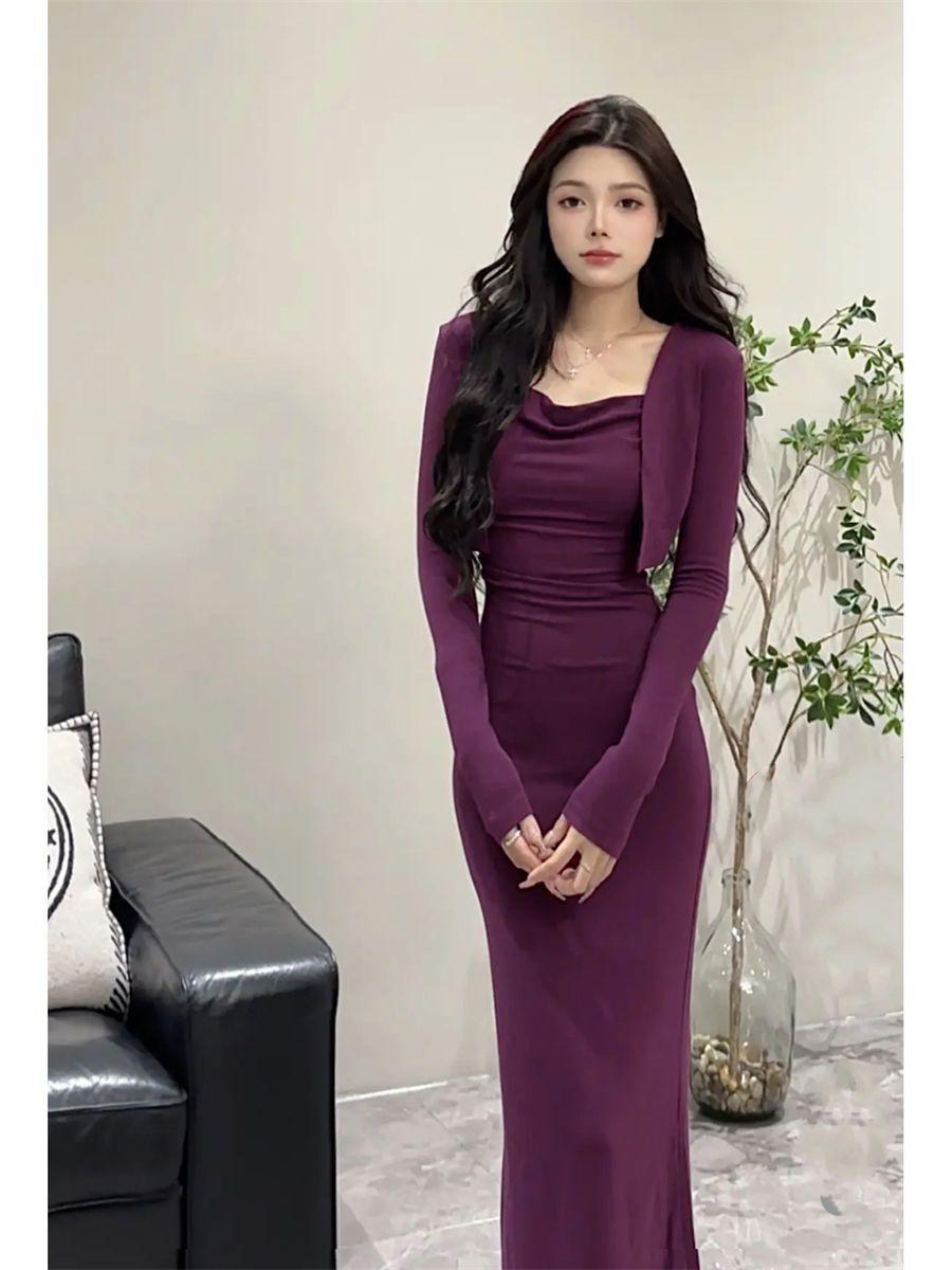 Conjunto de dos piezas de cárdigan y camisola para mujer madura atractiva, vestido largo de cola de pez adelgazante de verano nuevo 2025
