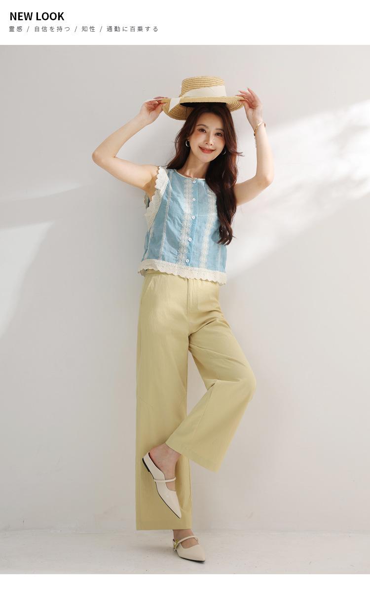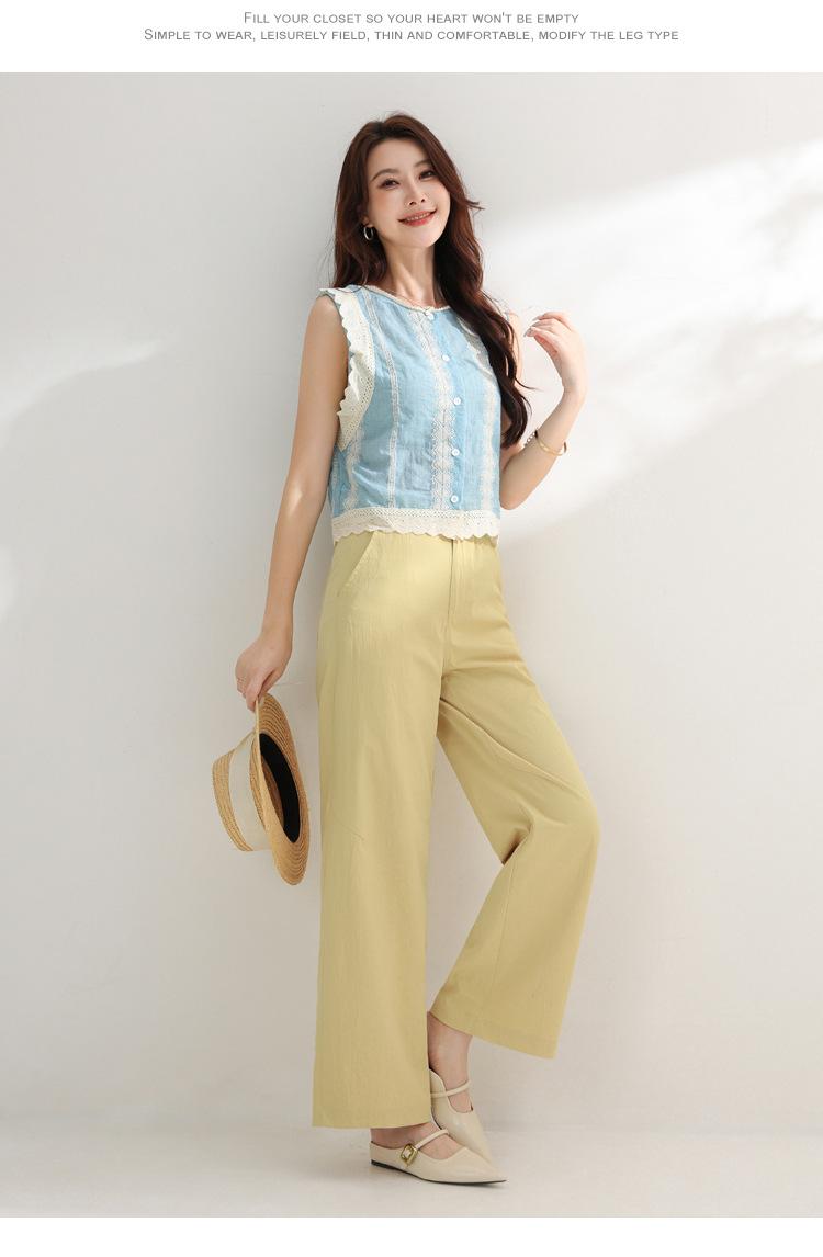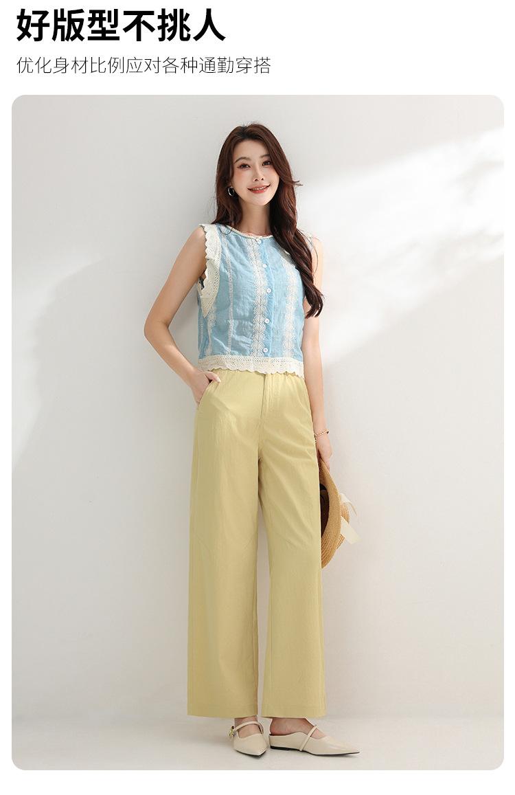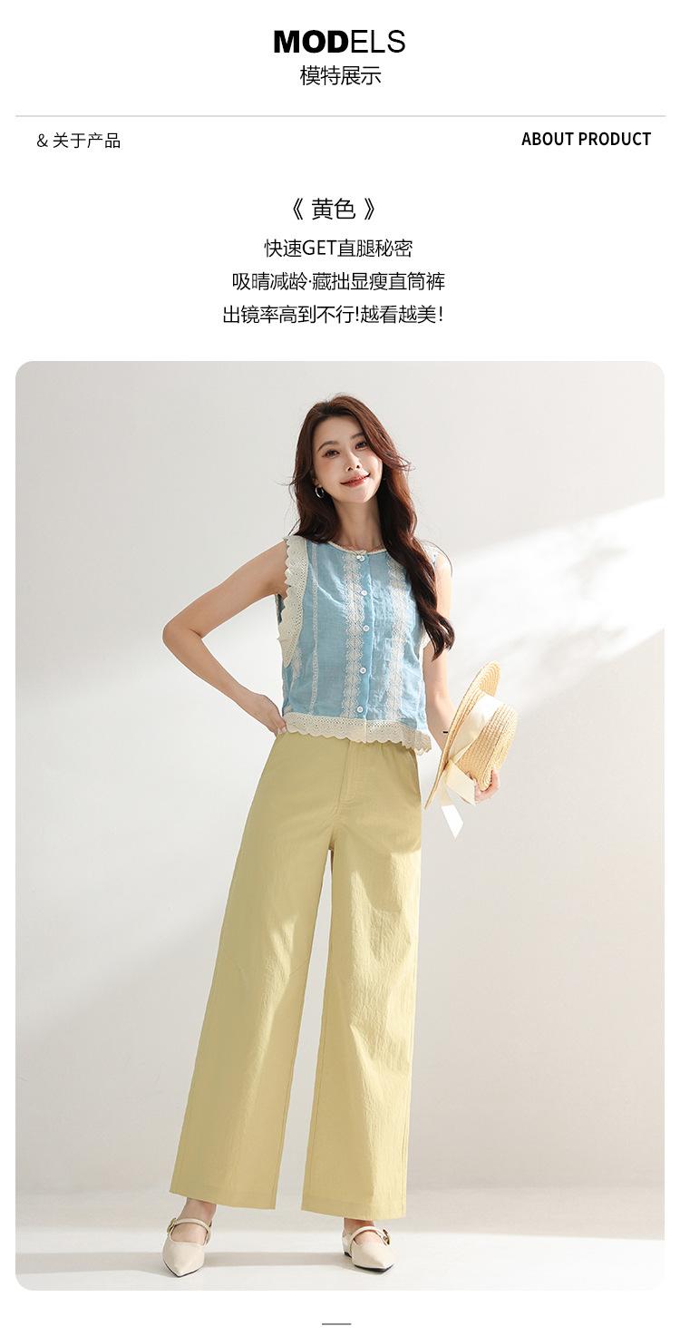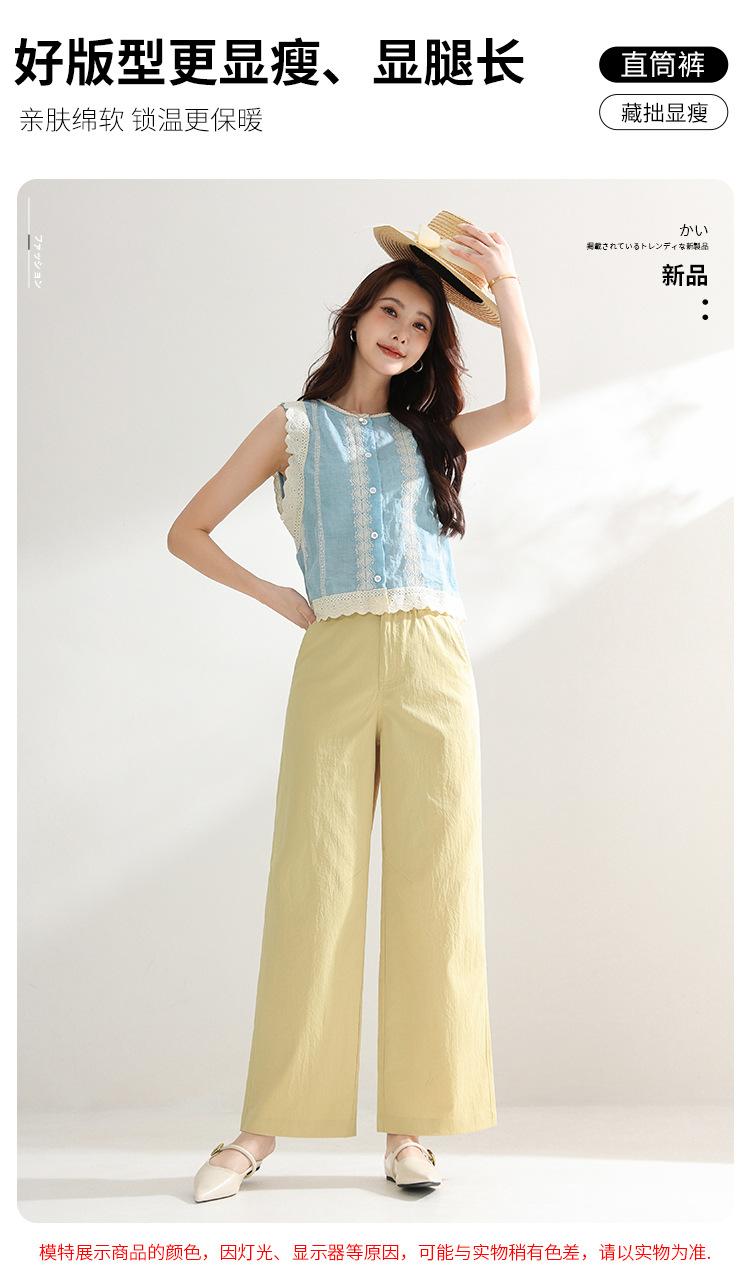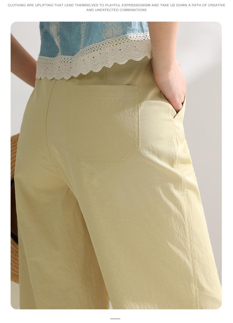 Sudu nuevos pantalones casuales de verano delgados de cintura elástica de color sueltos transpirables suaves rectos pantalones capri pantalones de pierna ancha