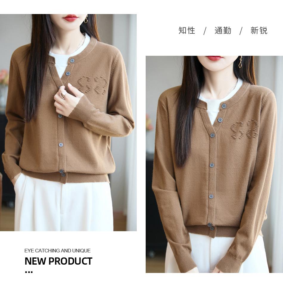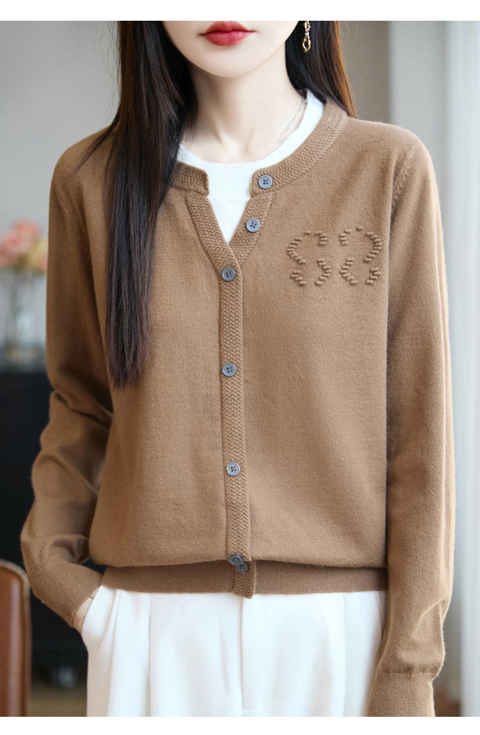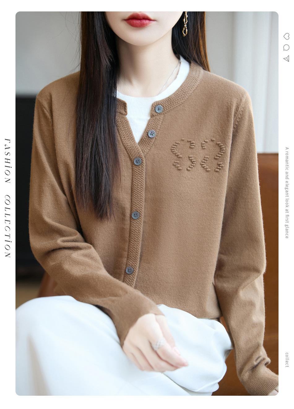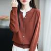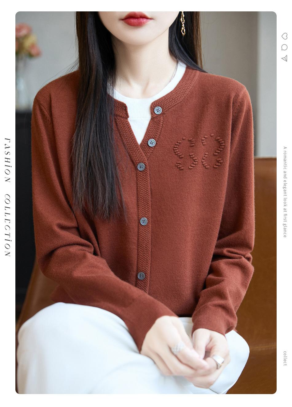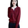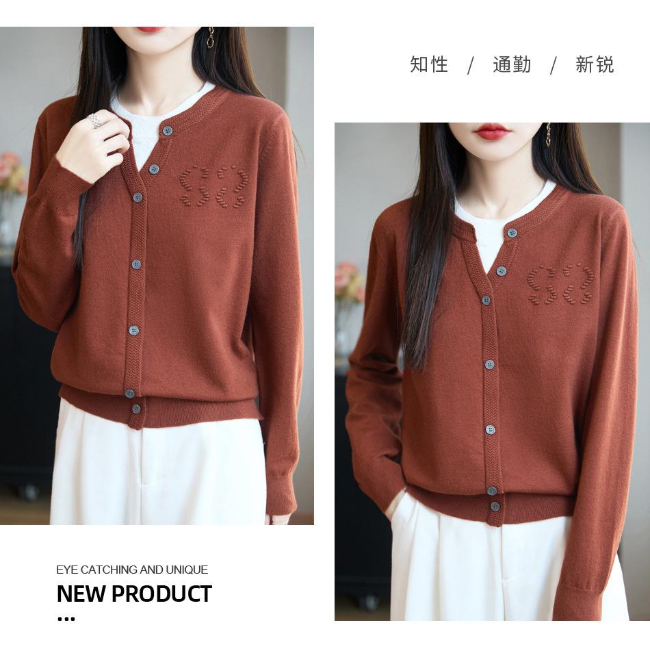 Suéter de Punto Nuevo Otoño/Invierno 2025 Sencillo Cuello Redondo Manga Larga Abrigo Cárdigan Suéter Socialité Cepillado