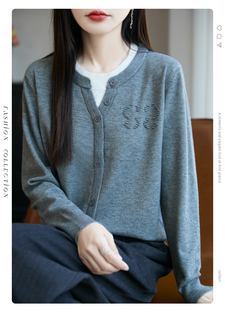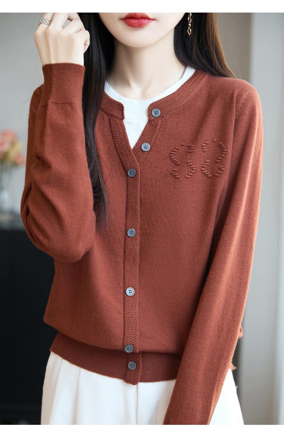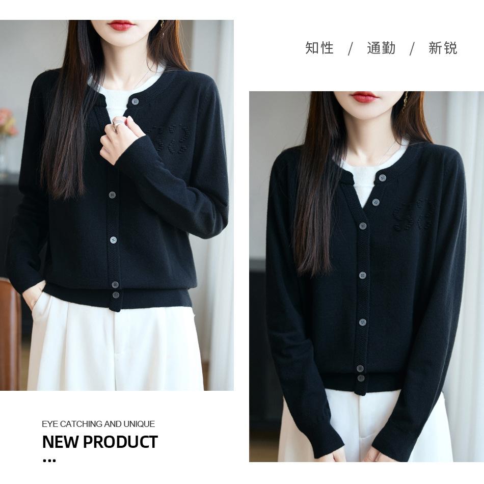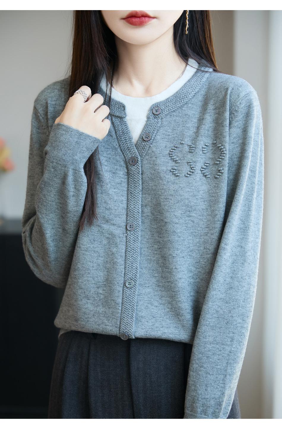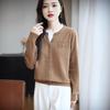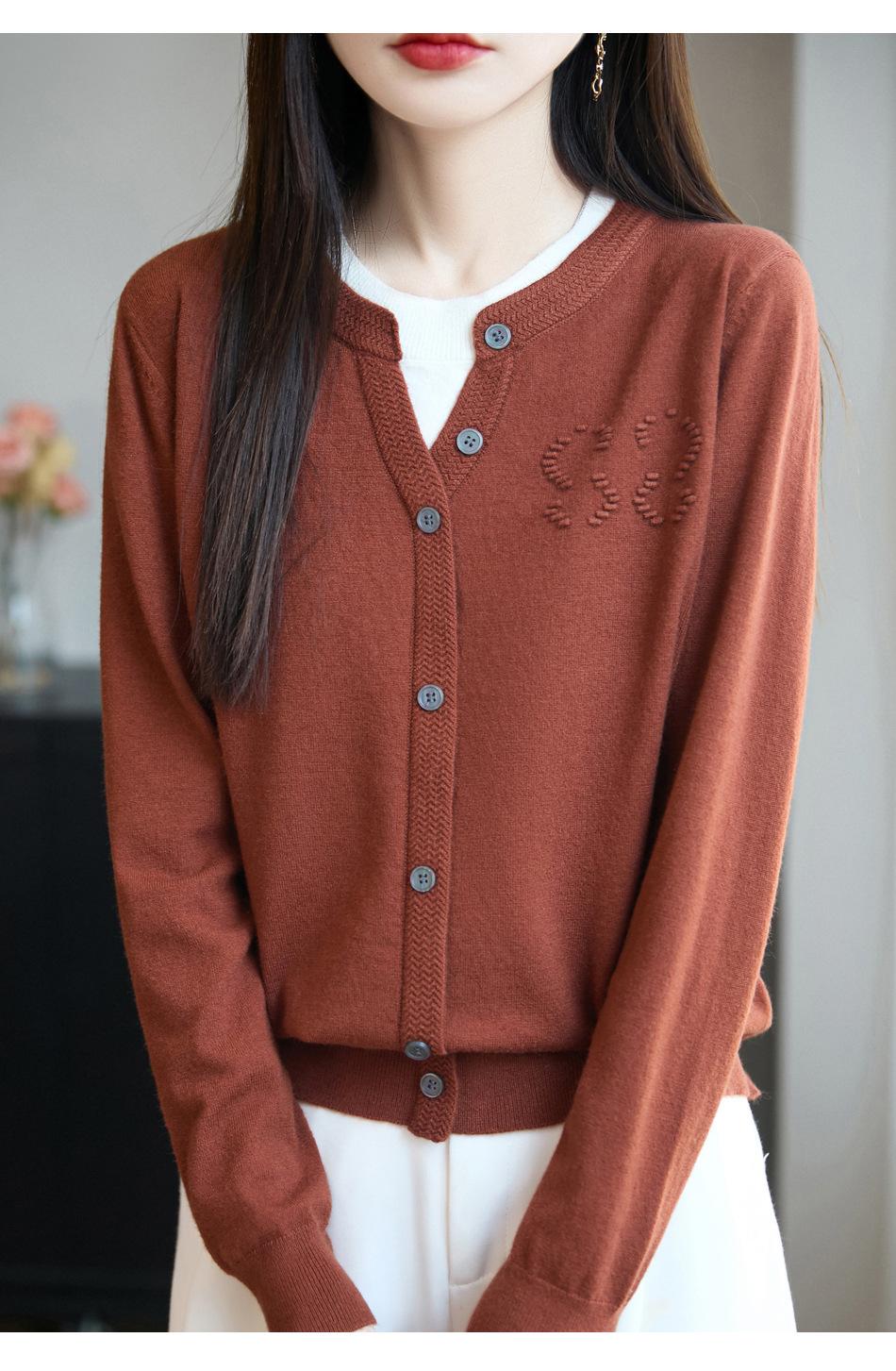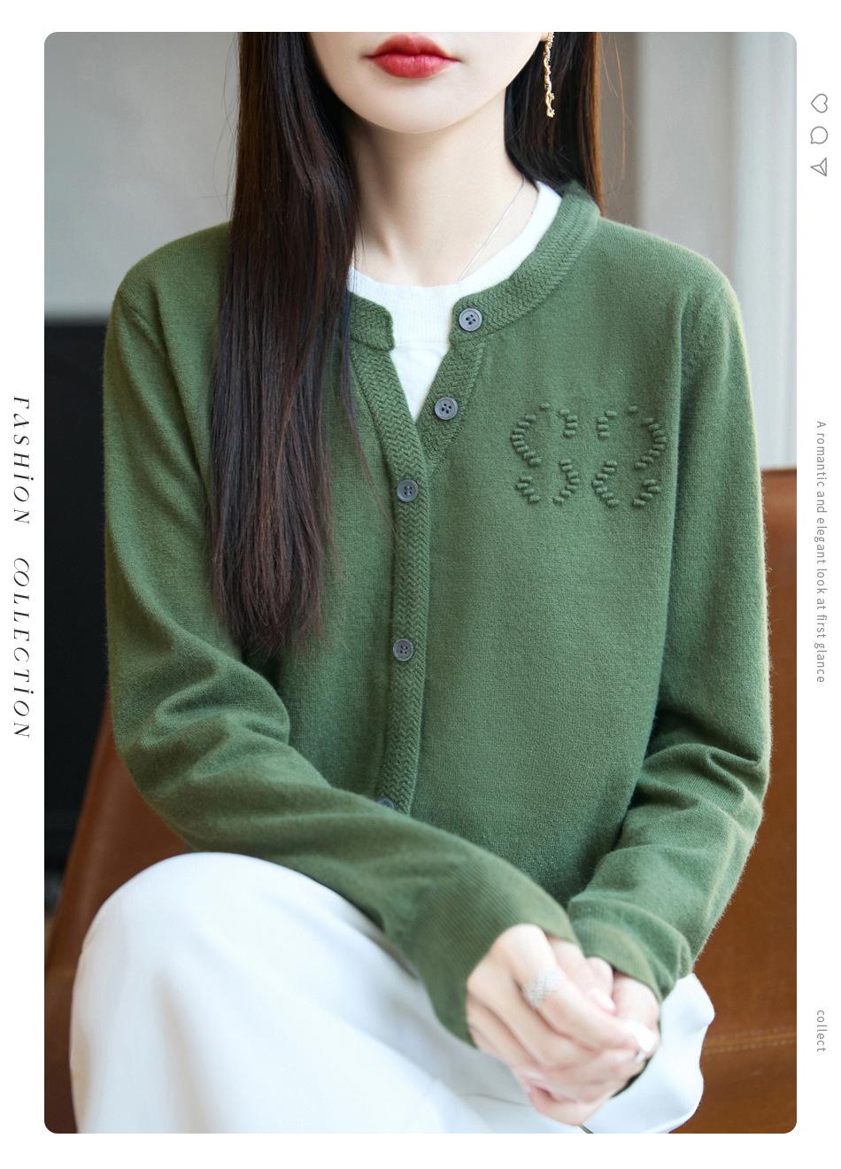 Suéter de Punto Nuevo Otoño/Invierno 2025 Sencillo Cuello Redondo Manga Larga Abrigo Cárdigan Suéter Socialité Cepillado