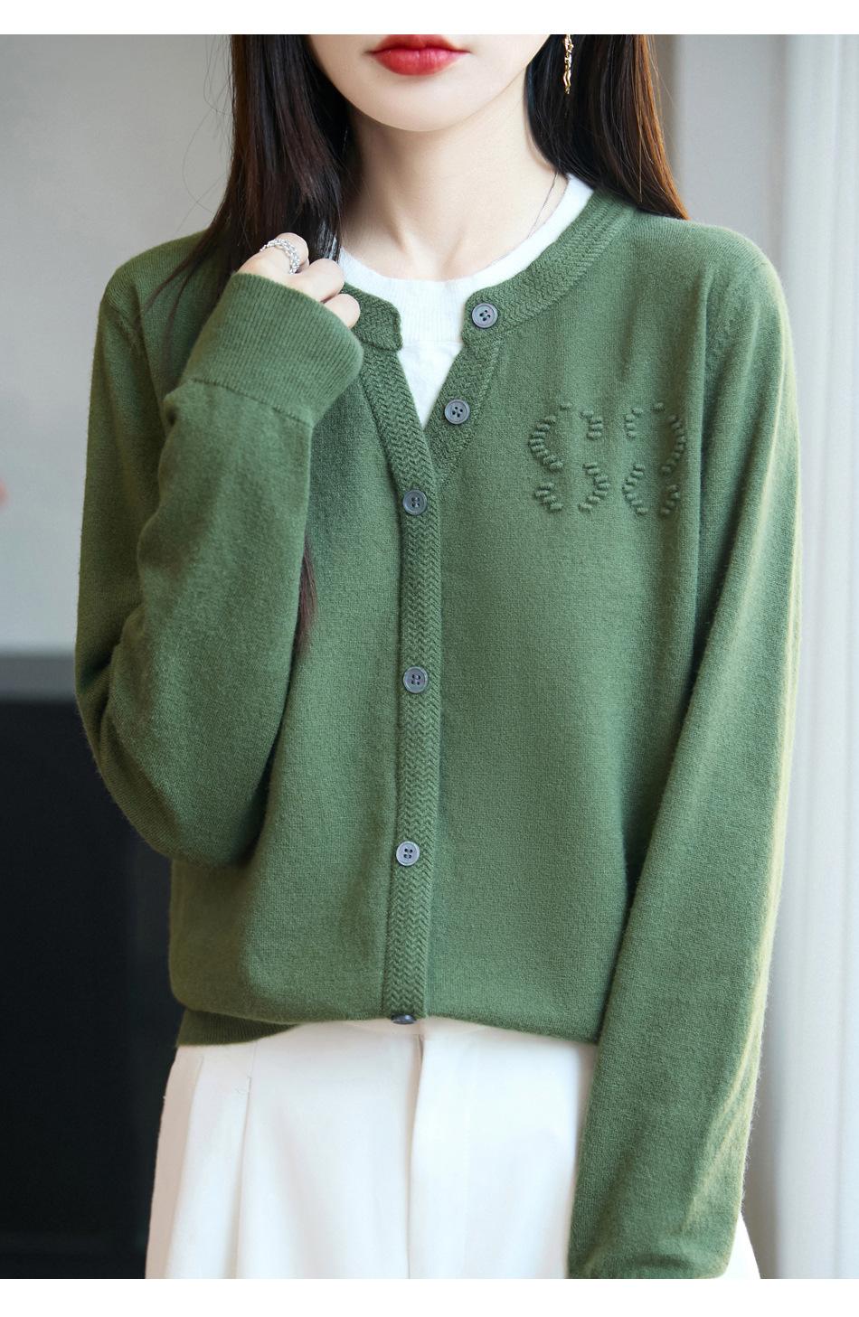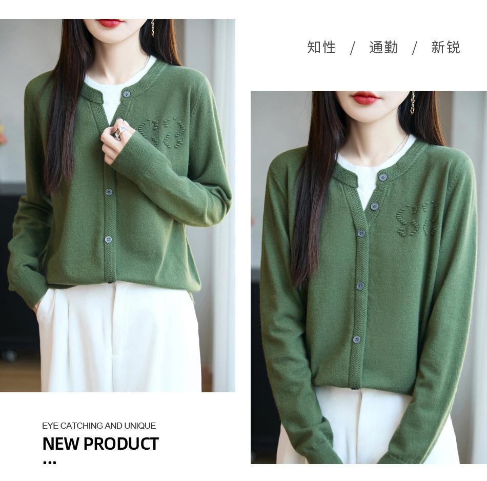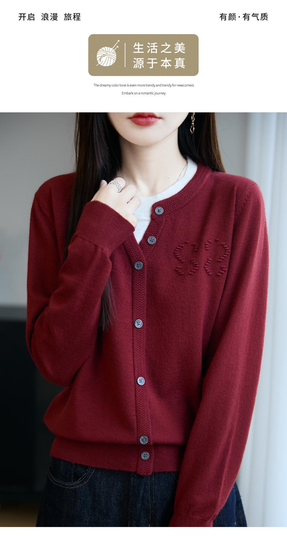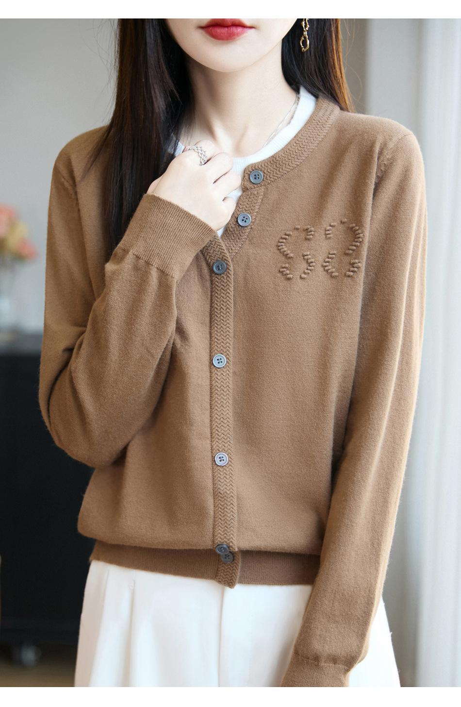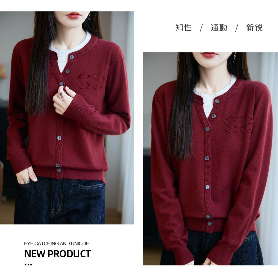 Suéter de Punto Nuevo Otoño/Invierno 2025 Sencillo Cuello Redondo Manga Larga Abrigo Cárdigan Suéter Socialité Cepillado