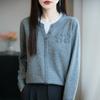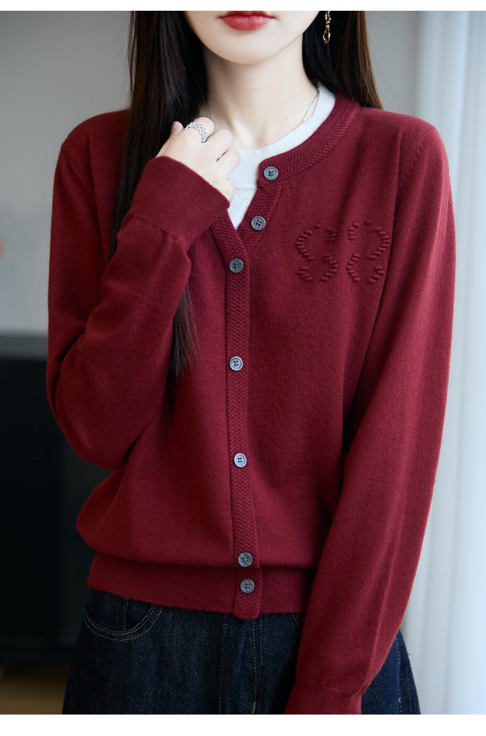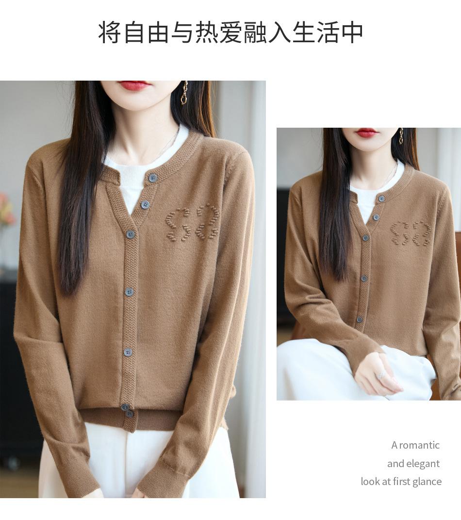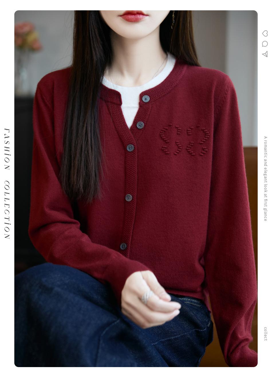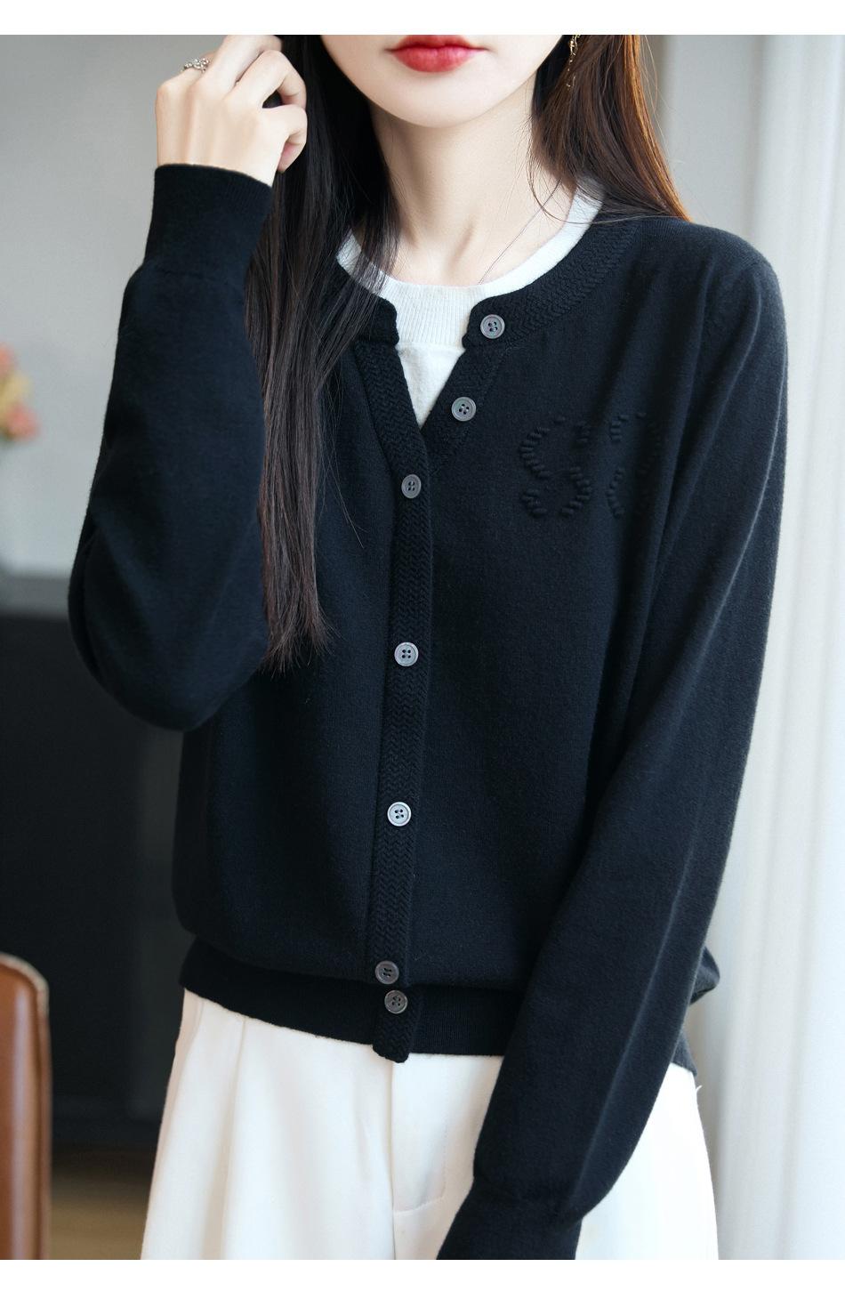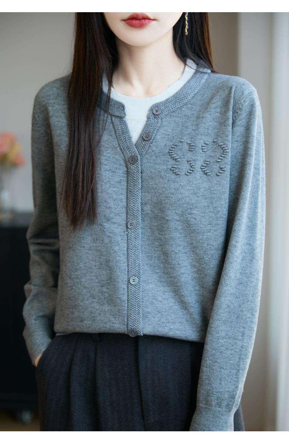 Suéter de Punto Nuevo Otoño/Invierno 2025 Sencillo Cuello Redondo Manga Larga Abrigo Cárdigan Suéter Socialité Cepillado