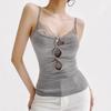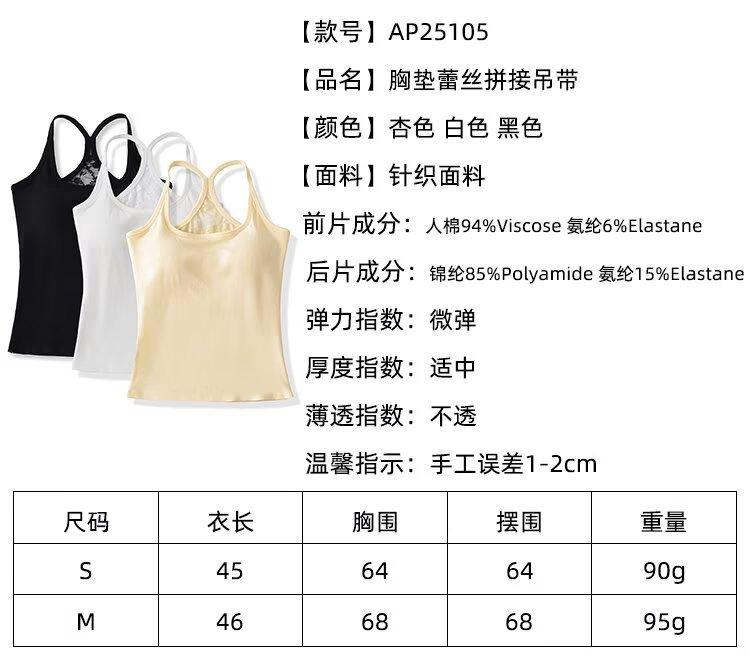 25 Primavera/Verano Nuevo Top Chaleco de Encaje Patchwork Puro Deseo para Mujer, Camisola Sexy y Favorecedora Capa Base
