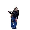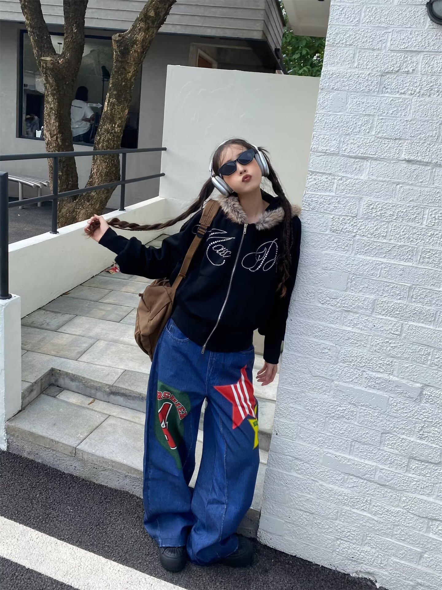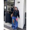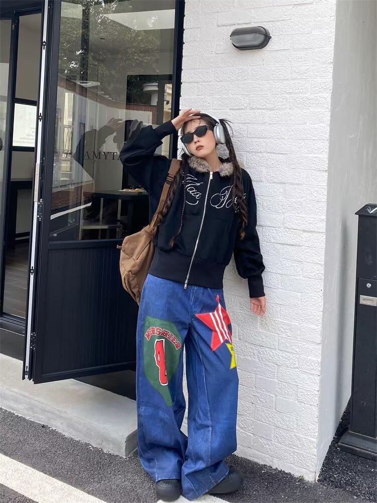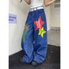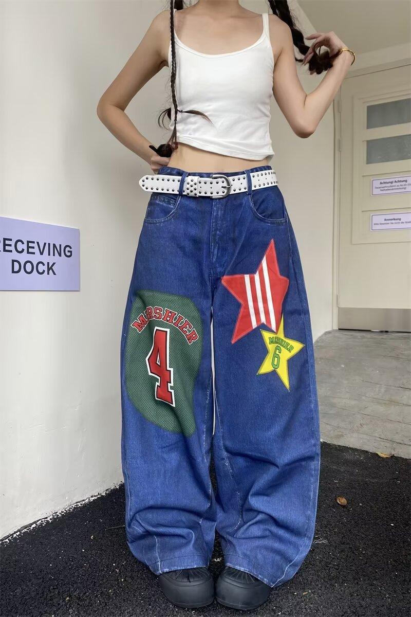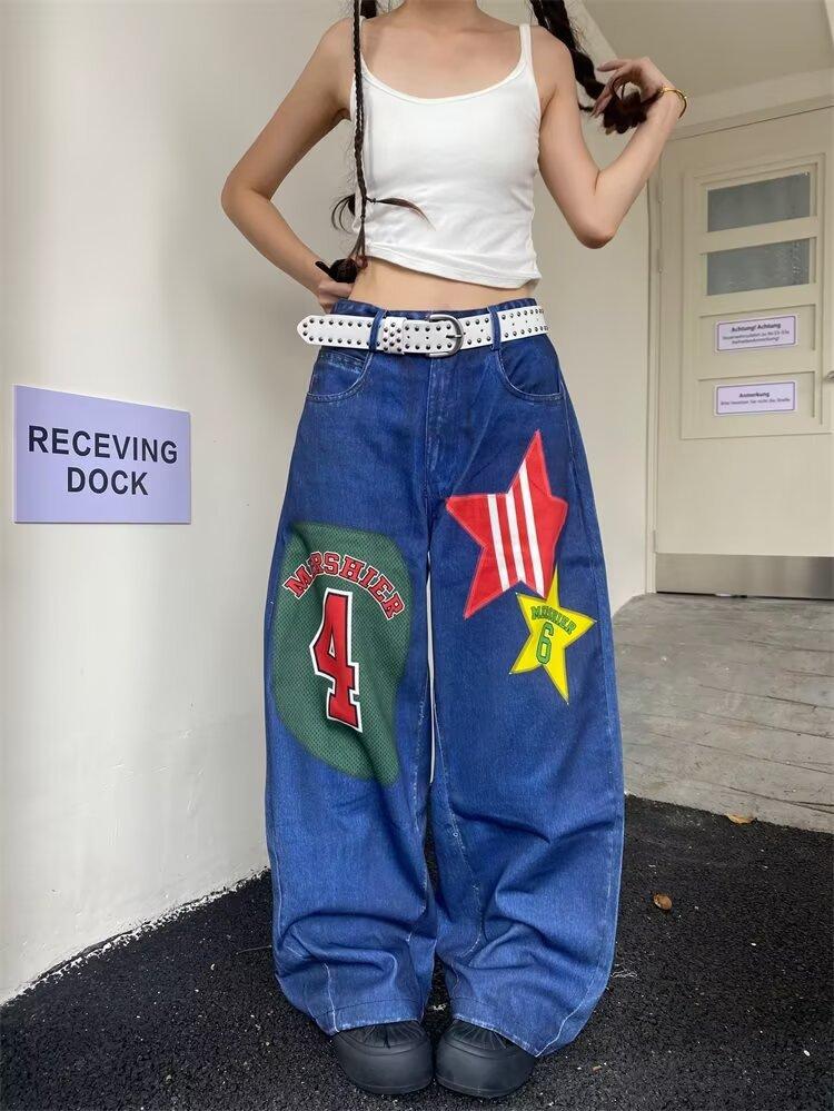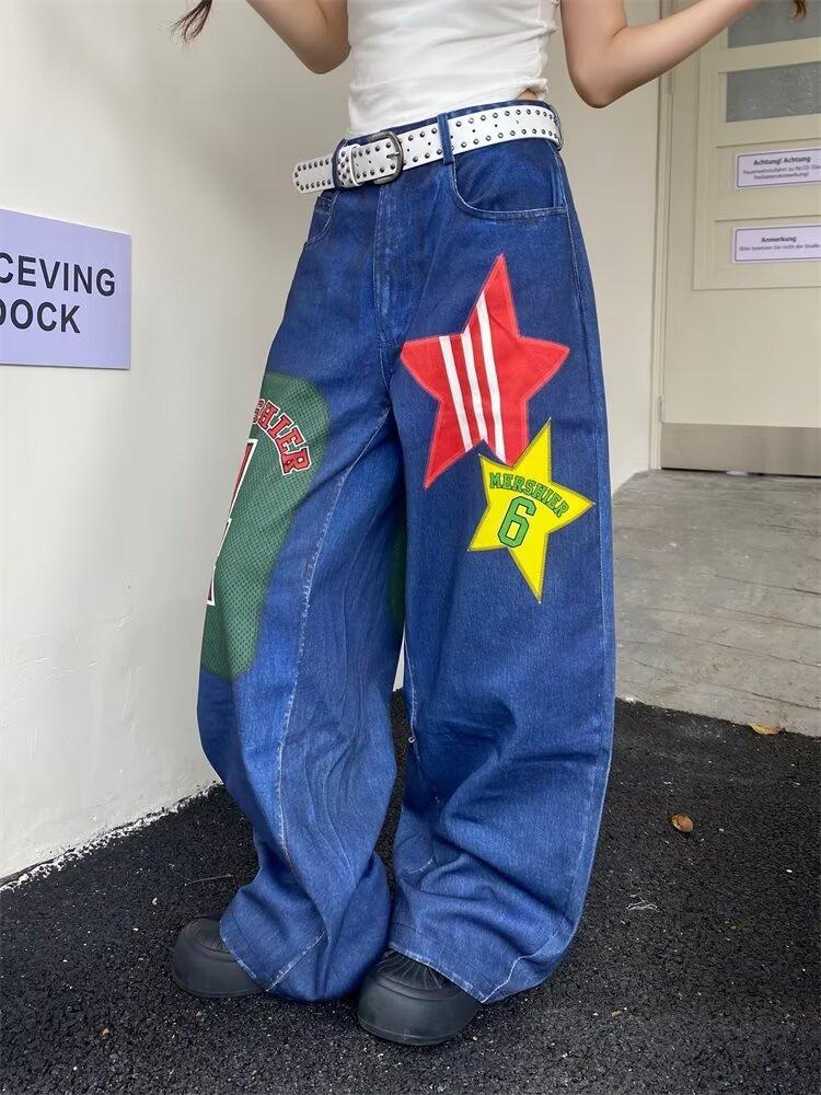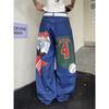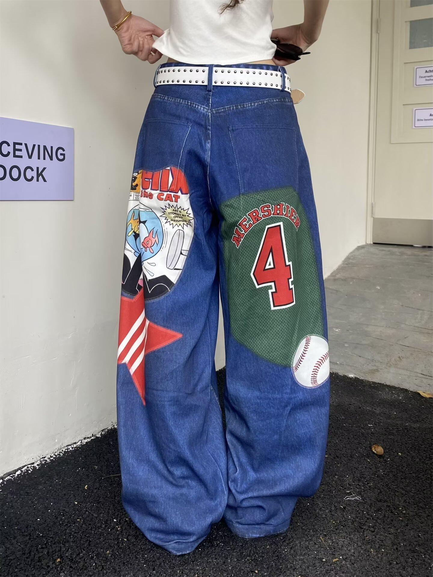 Jeans Cimitarra Estampado Retro Americano Transfronterizo Mujer Principios de Otoño Nuevo Pantalón Urbano Hip Hop Suelto Pierna Ancha Pantalón Largo