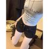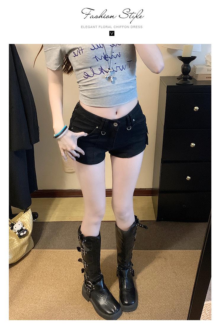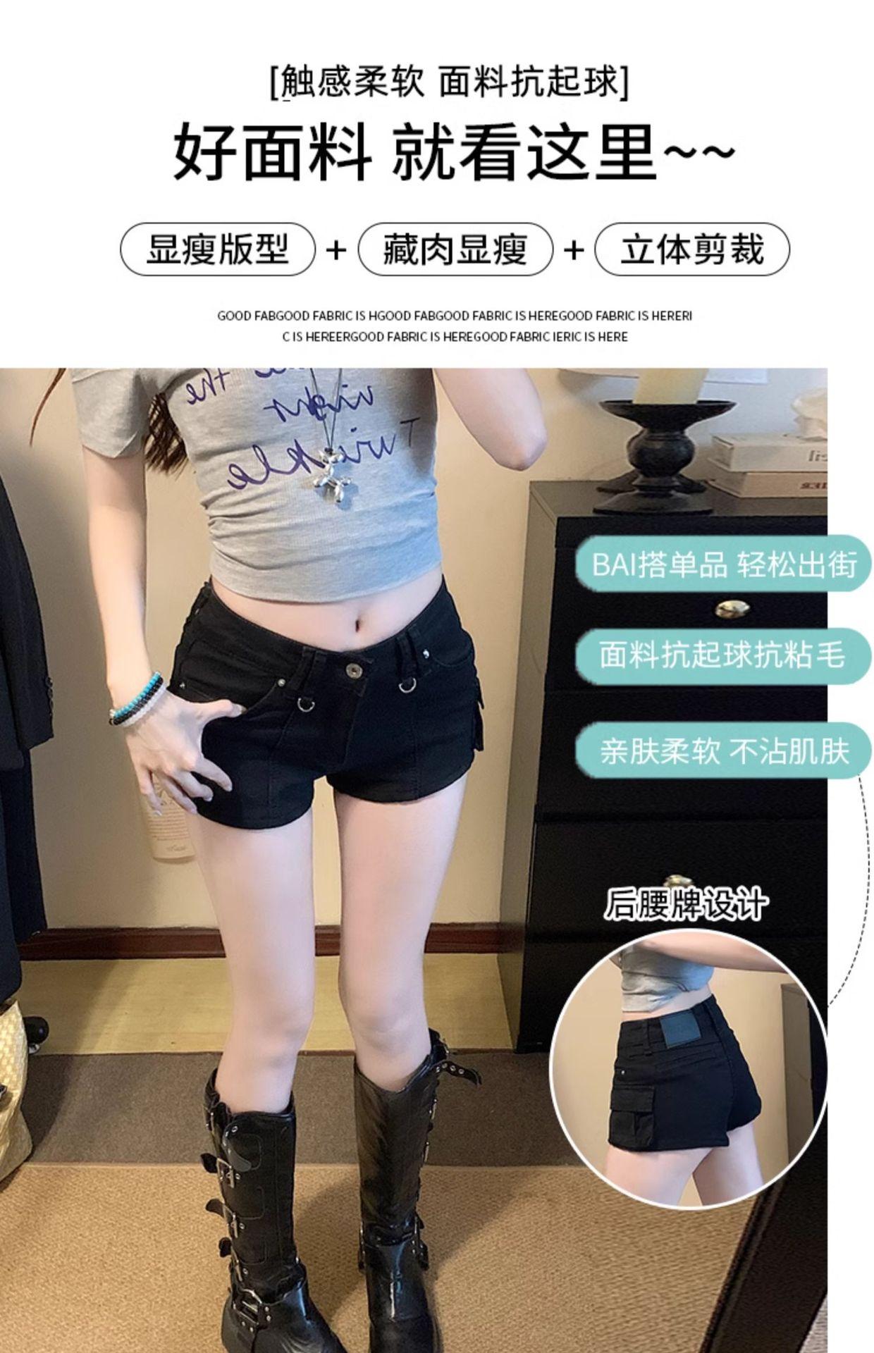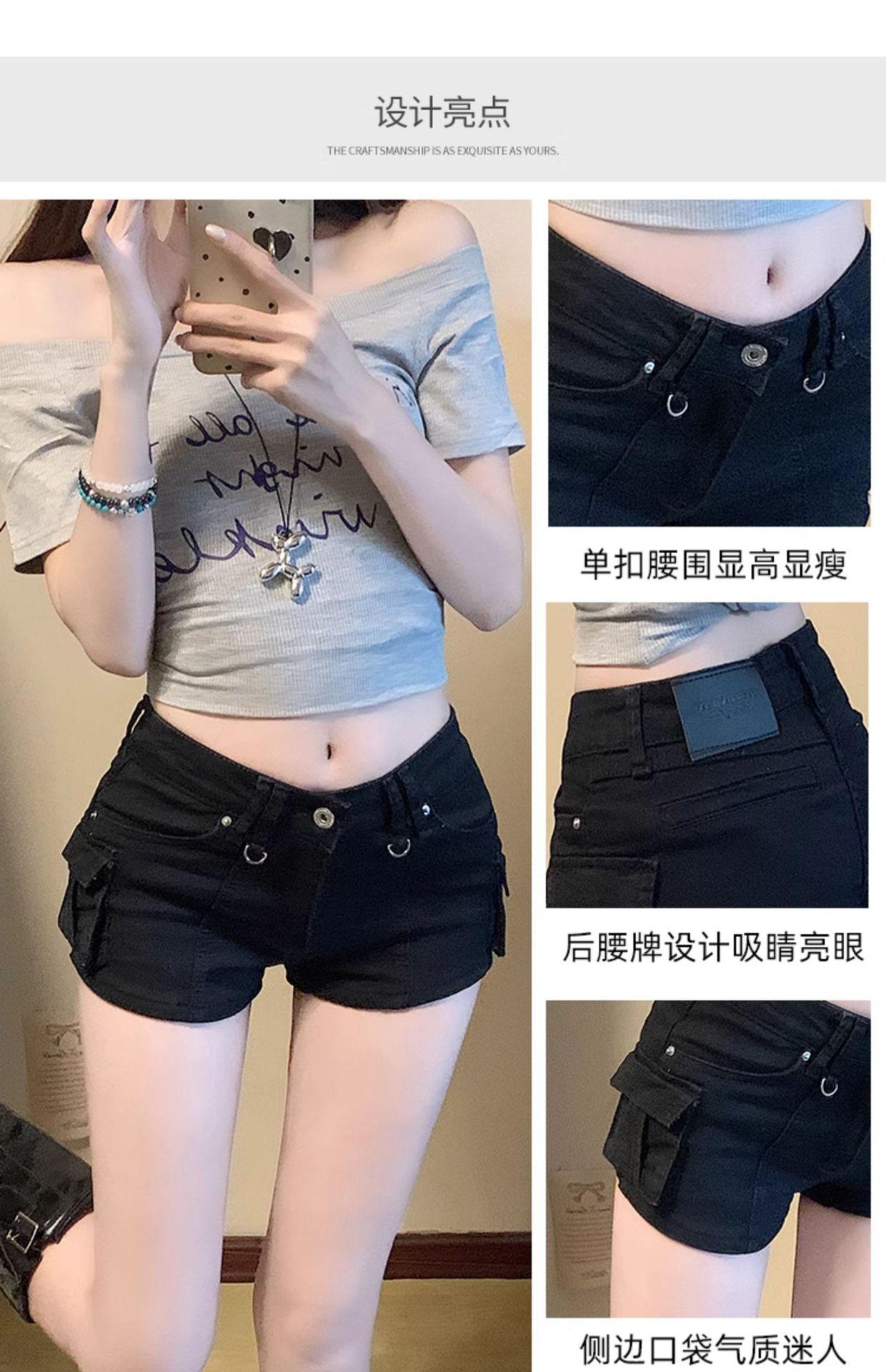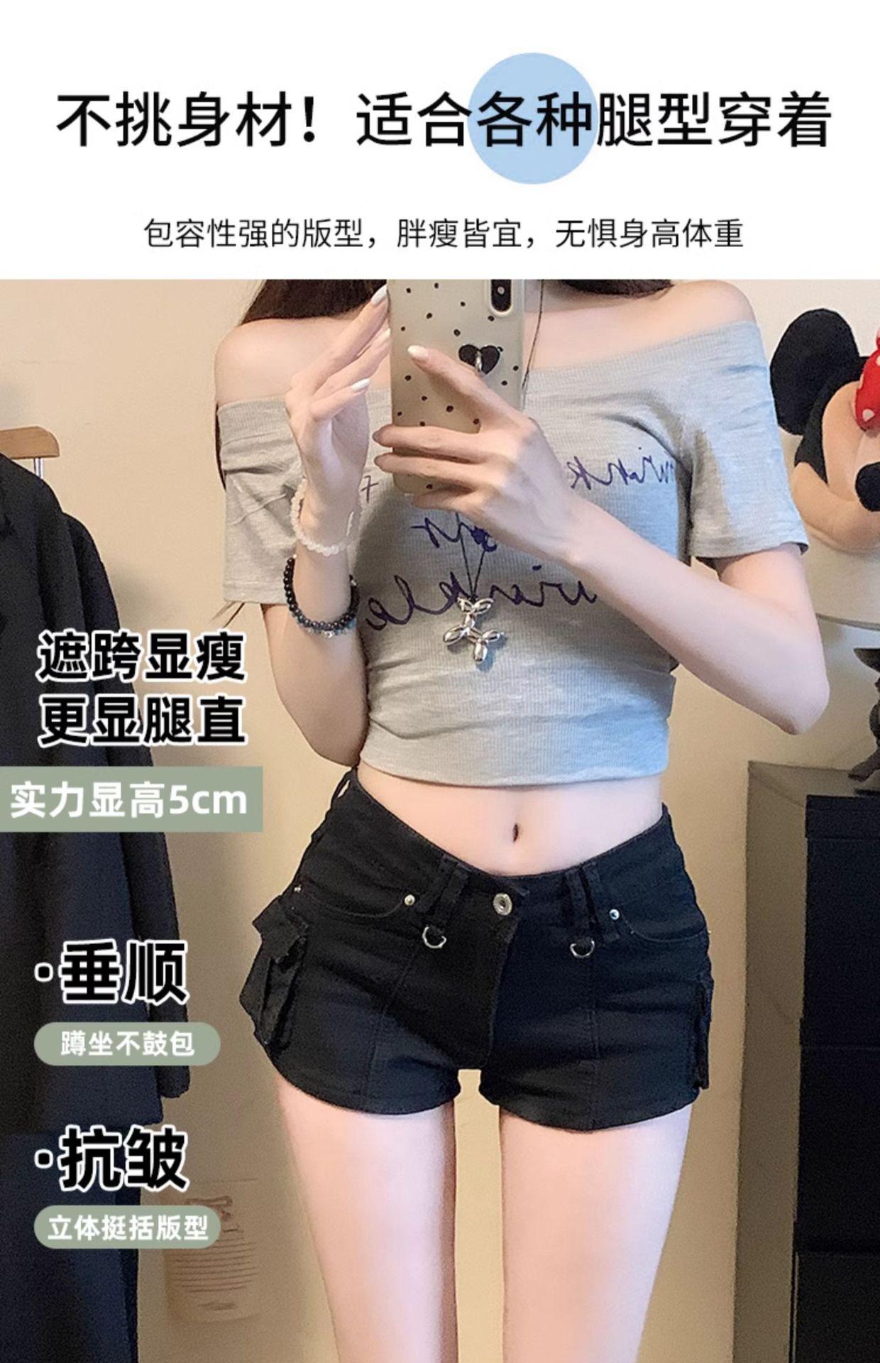 Talla Grande Estilo Americano Chica Picante Cintura Baja Shorts de Mezclilla Negros para Mujer Verano Gordo mm Ajustados Adelgazantes Versátiles Pantalones Cortos A-Line