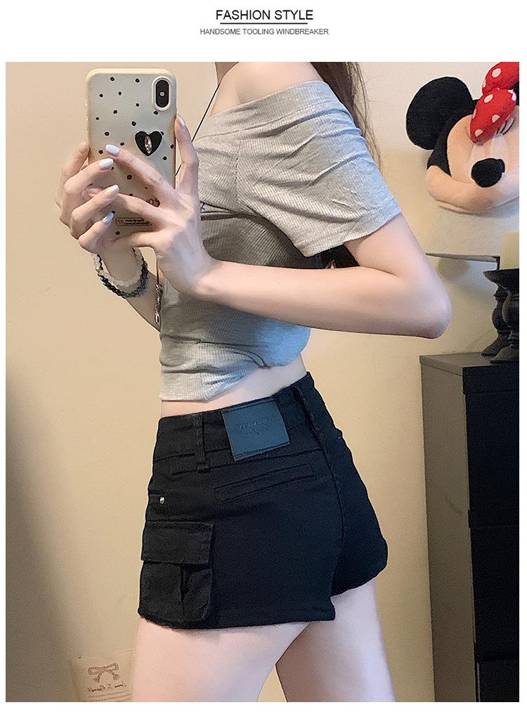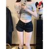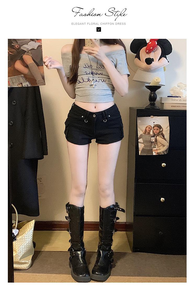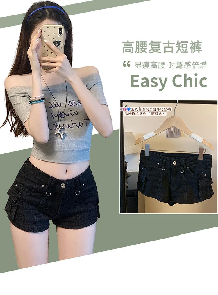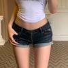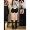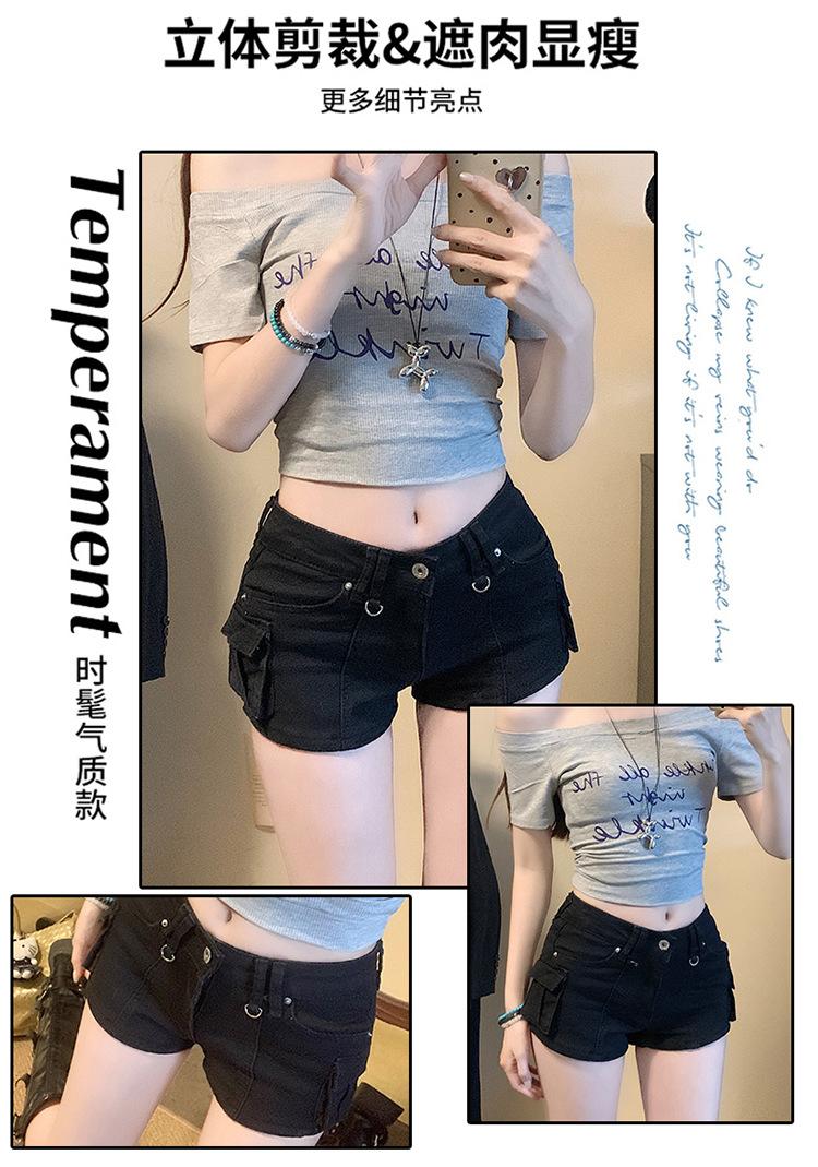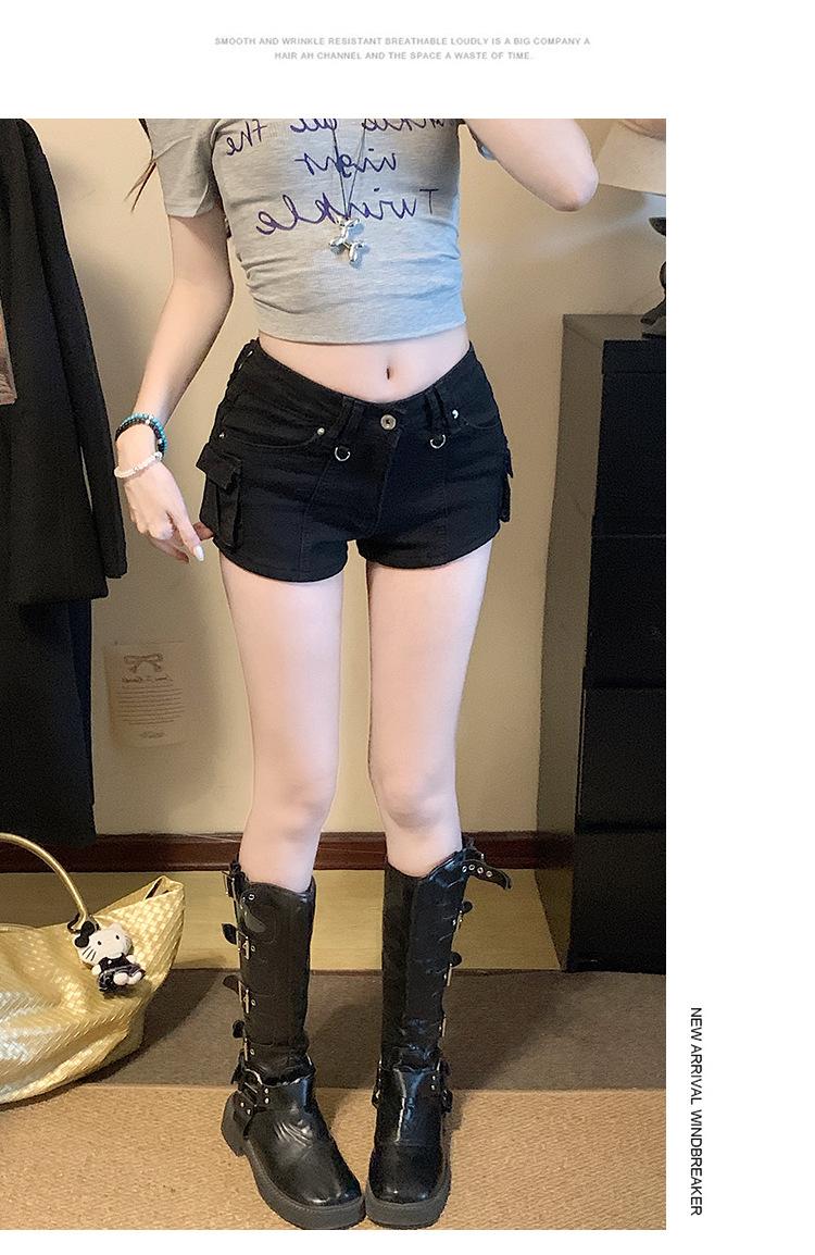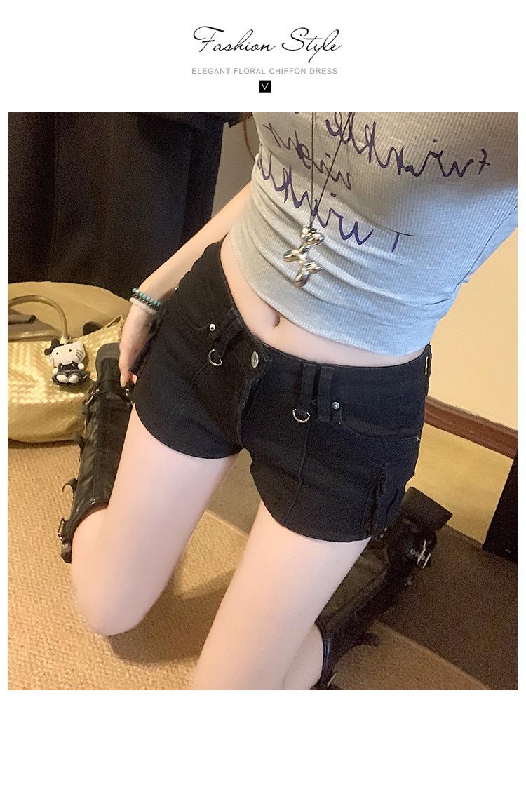 Talla Grande Estilo Americano Chica Picante Cintura Baja Shorts de Mezclilla Negros para Mujer Verano Gordo mm Ajustados Adelgazantes Versátiles Pantalones Cortos A-Line