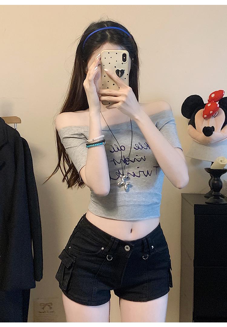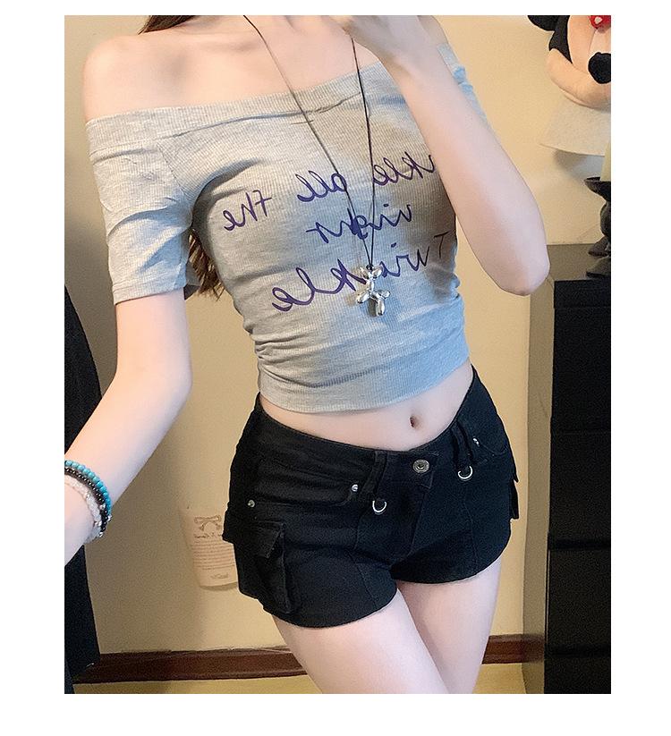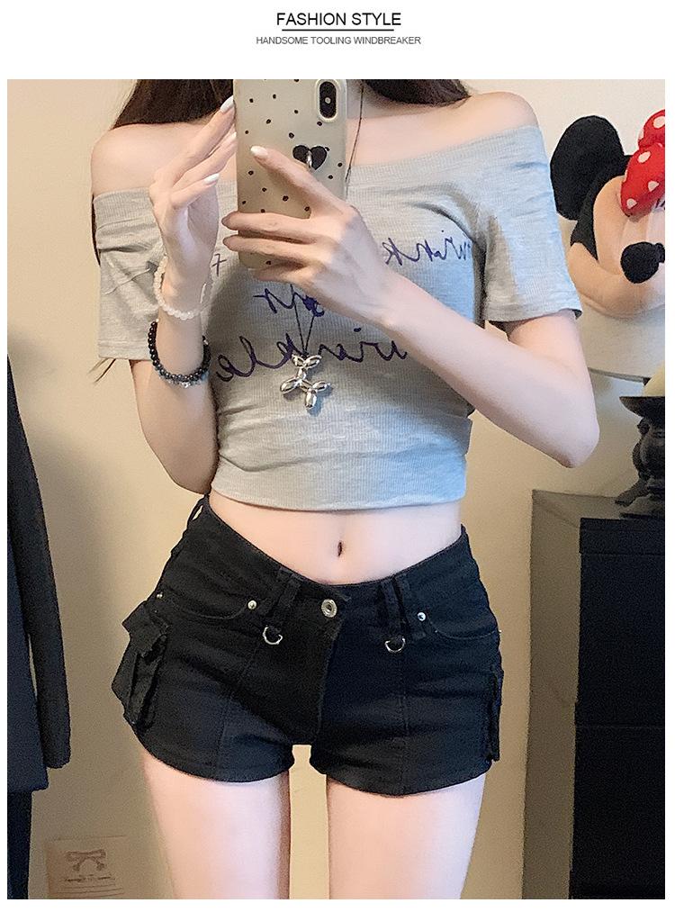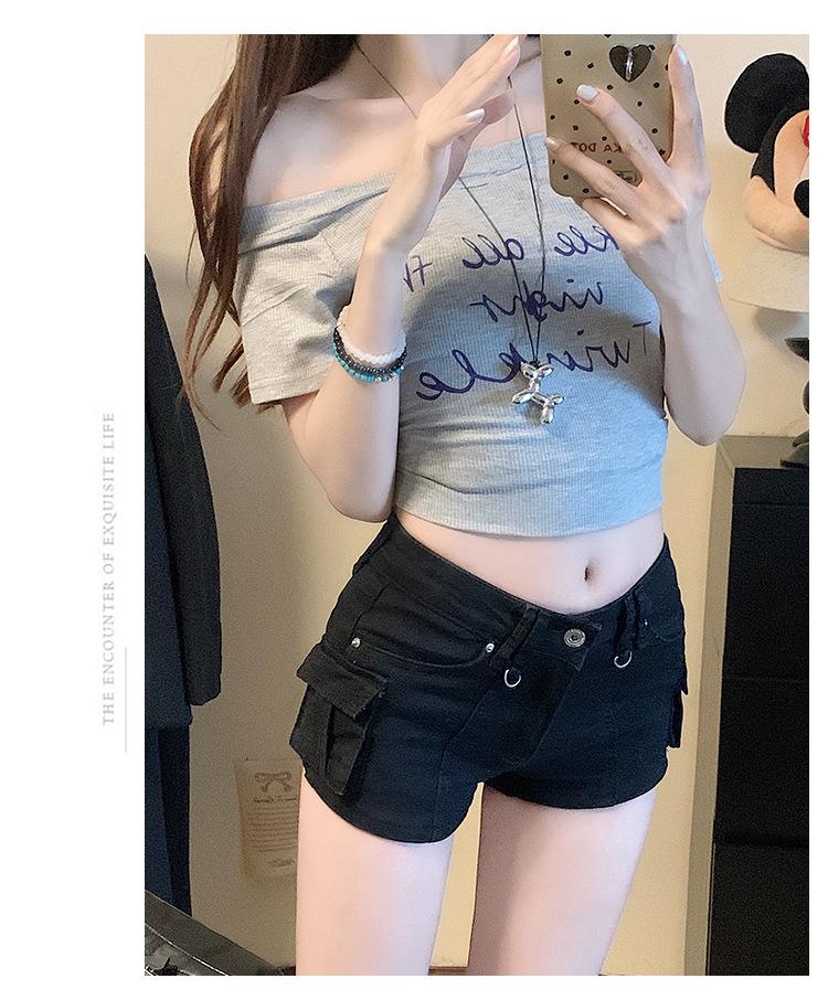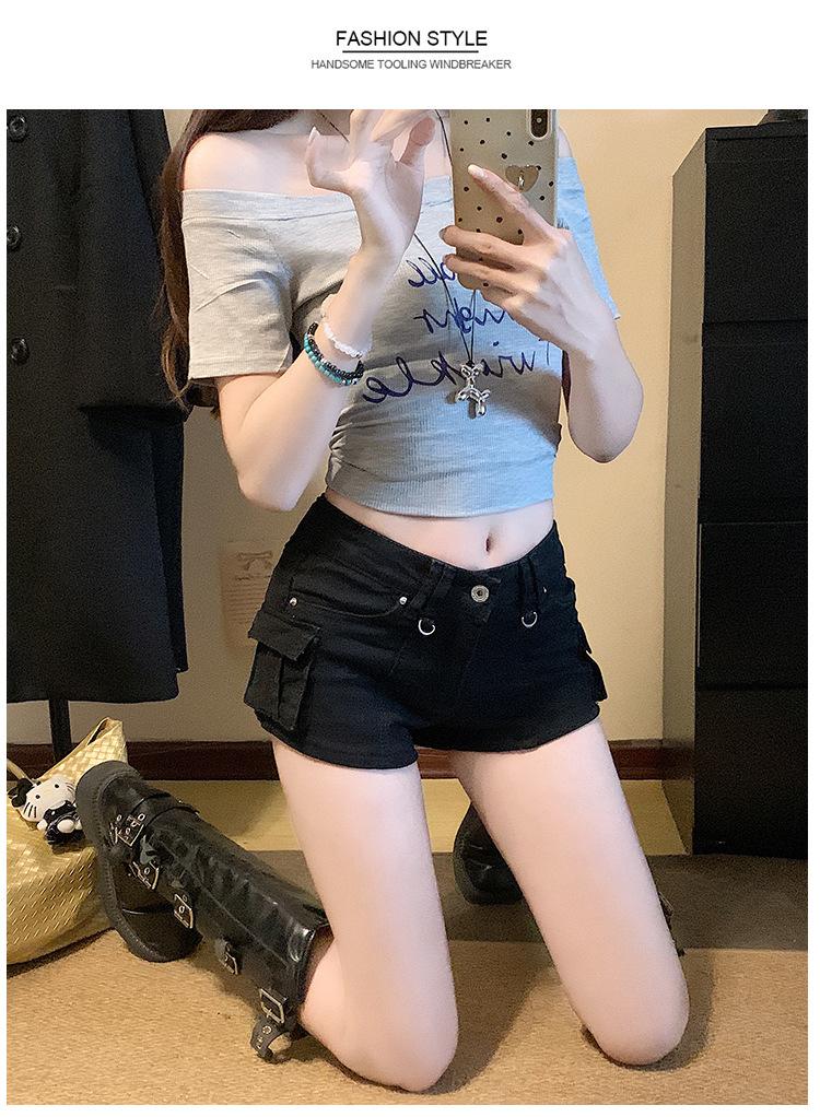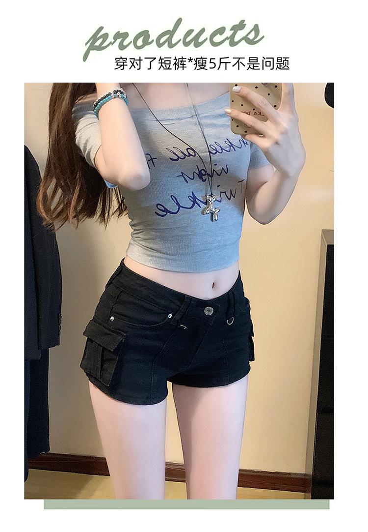 Talla Grande Estilo Americano Chica Picante Cintura Baja Shorts de Mezclilla Negros para Mujer Verano Gordo mm Ajustados Adelgazantes Versátiles Pantalones Cortos A-Line