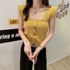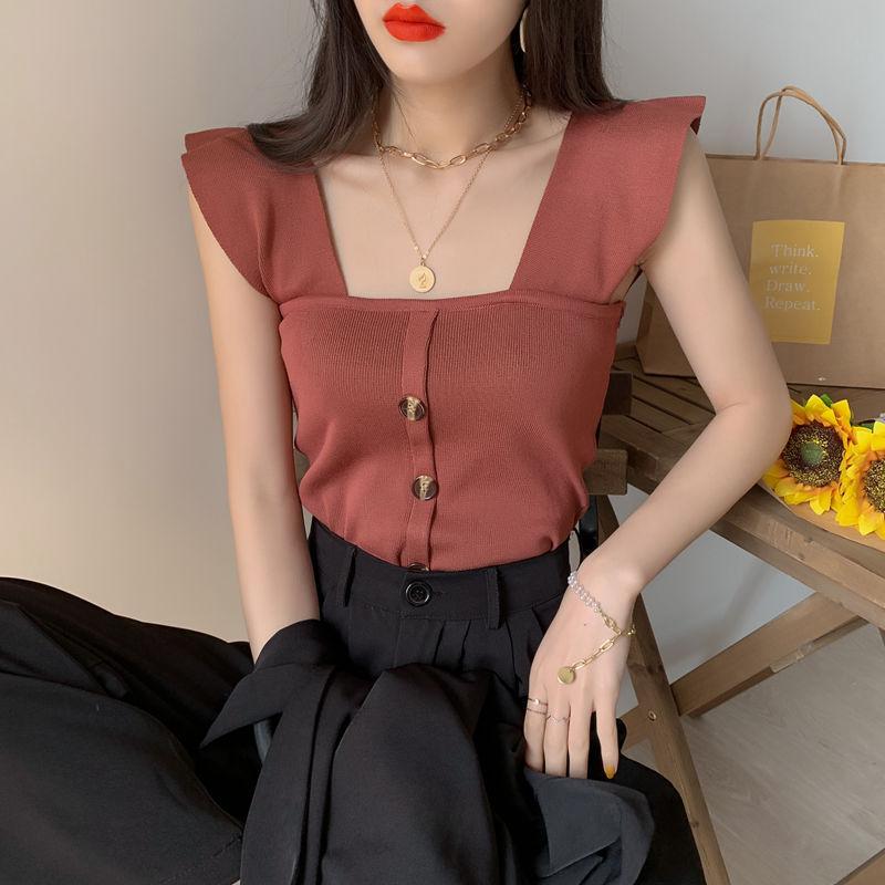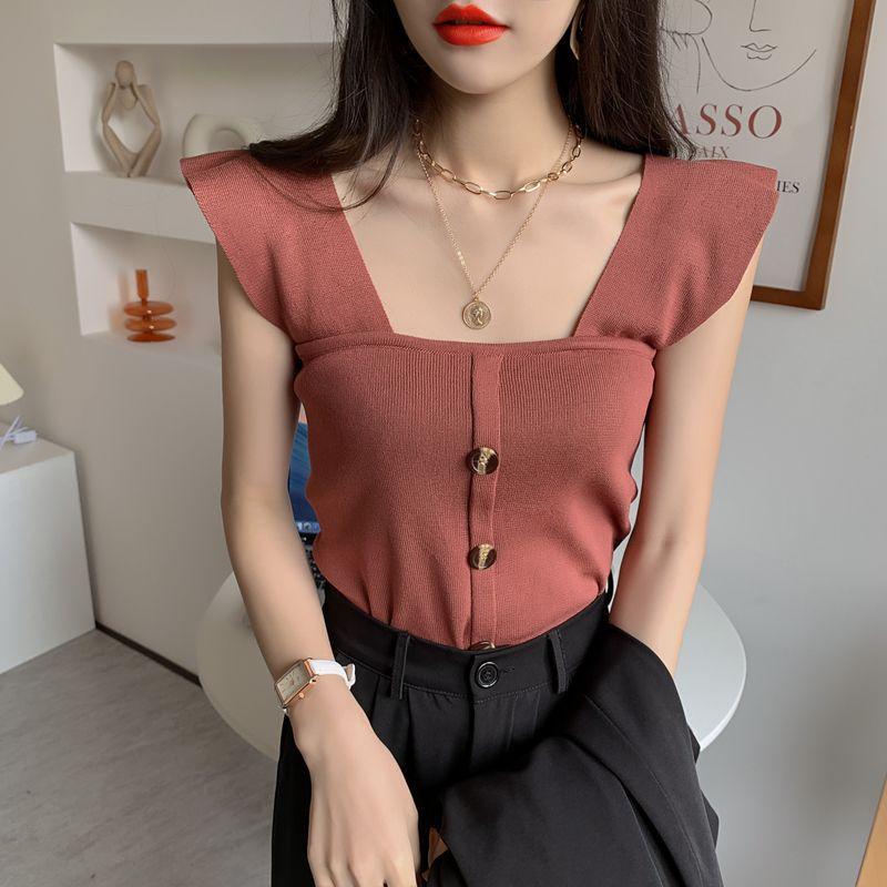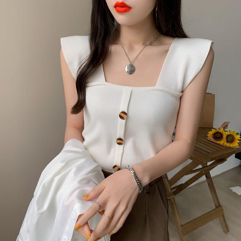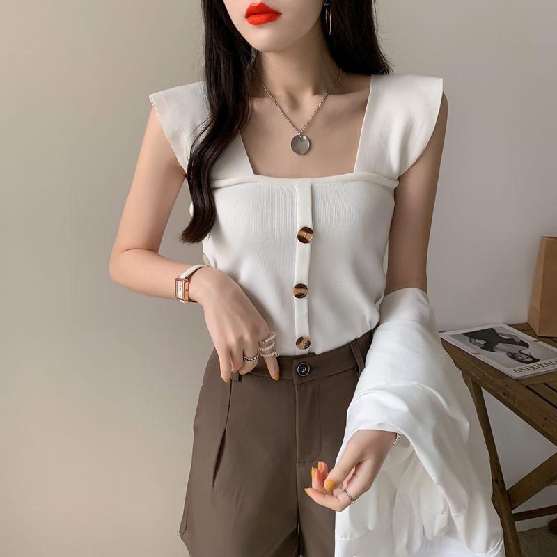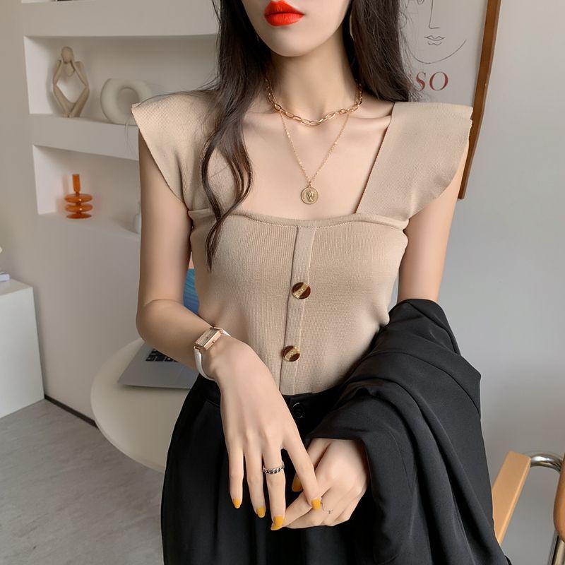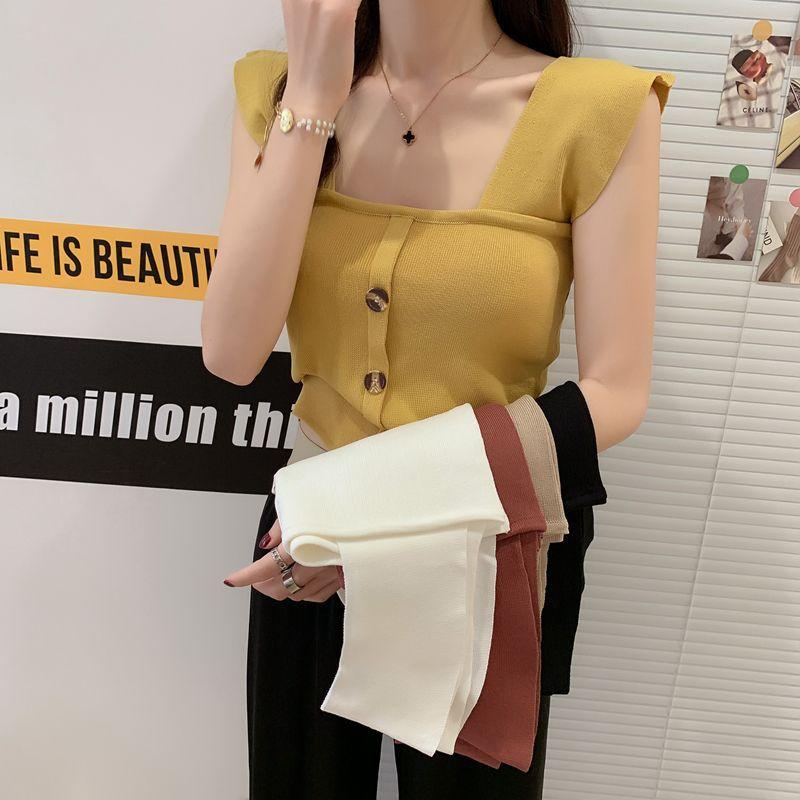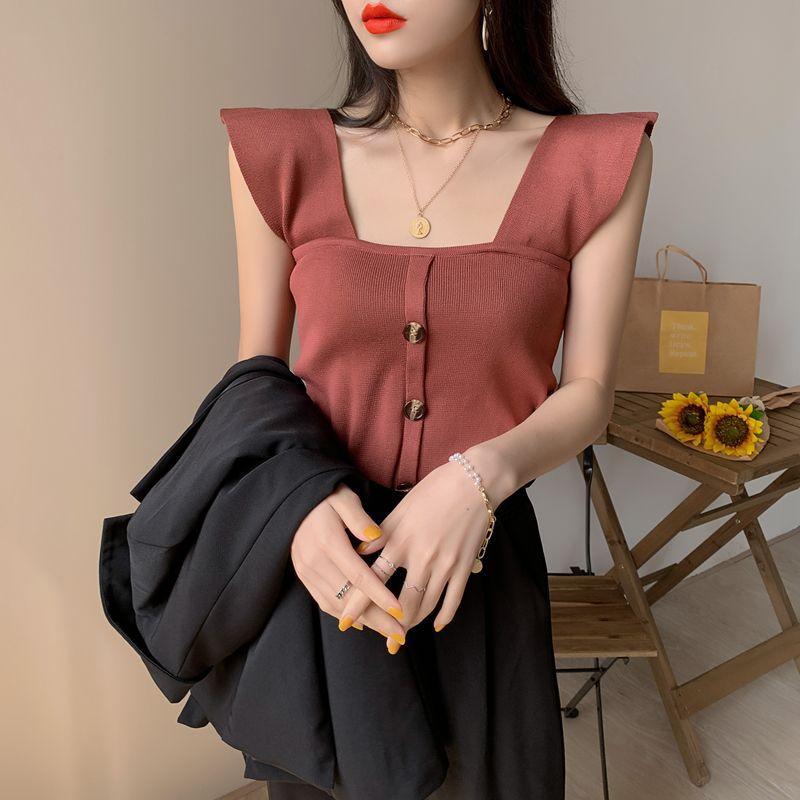 Estilo coreano diseño de punto fino base sin mangas ropa exterior sentir ropa exterior cuello cuadrado temporada top camisola chaleco mujeres verano