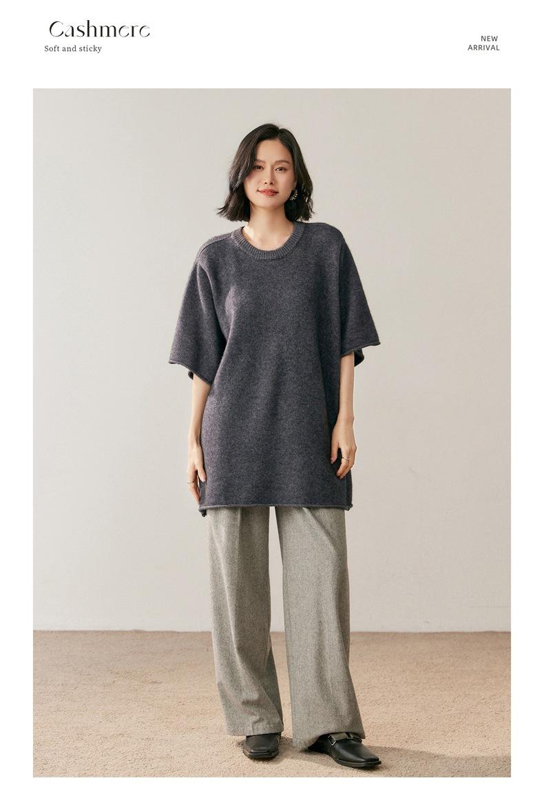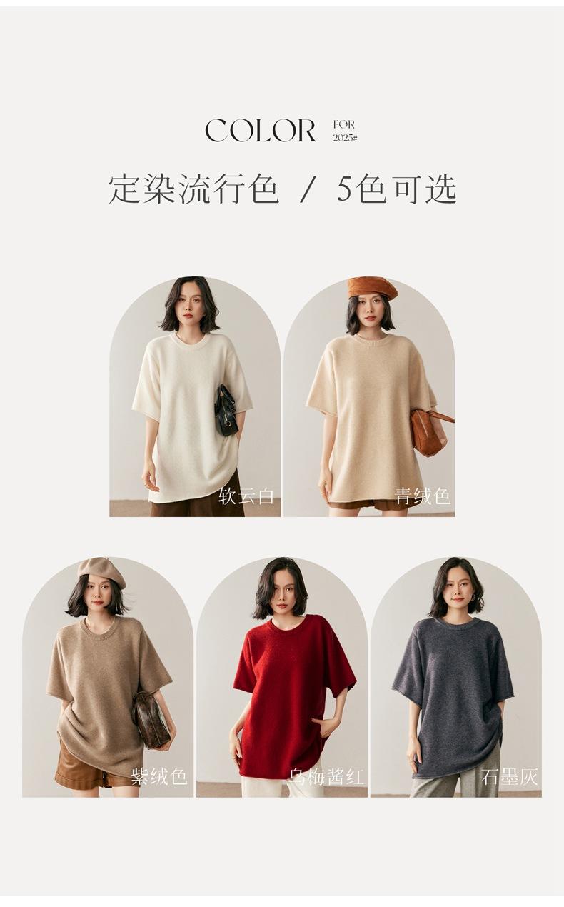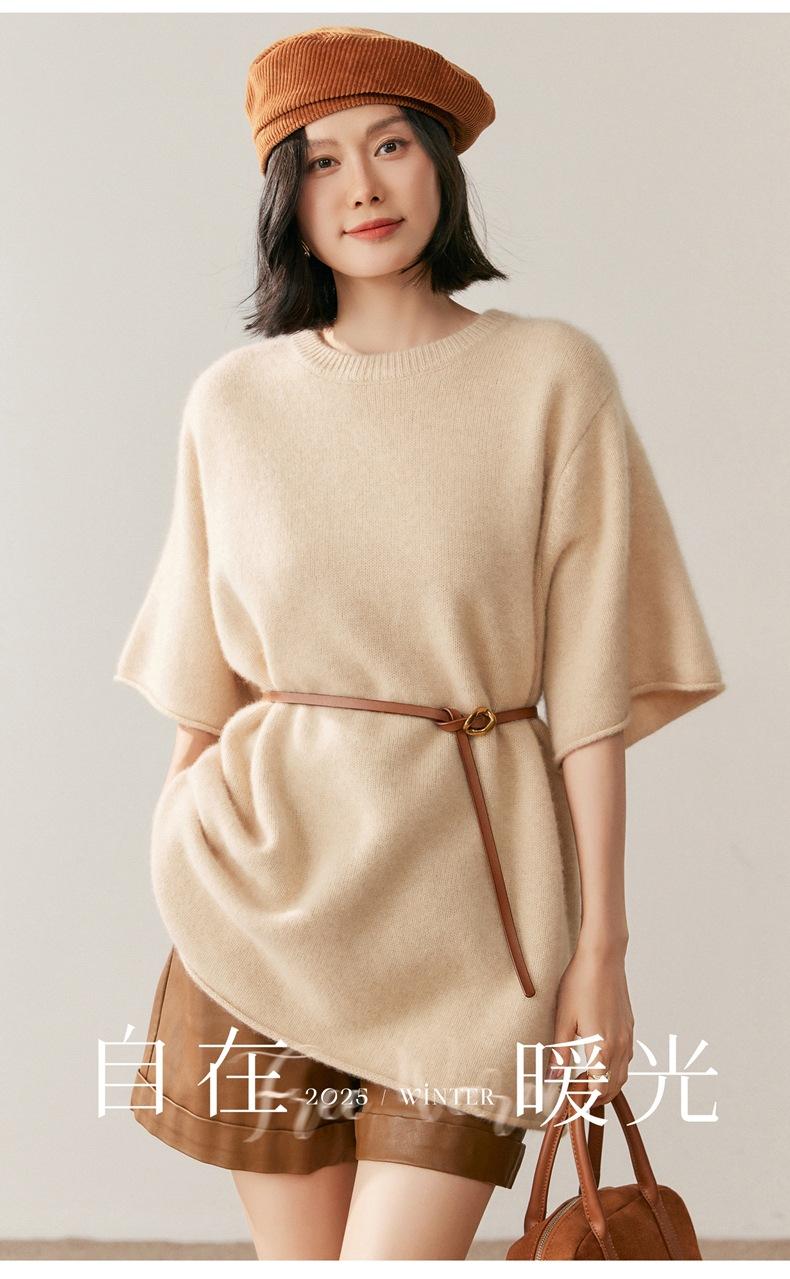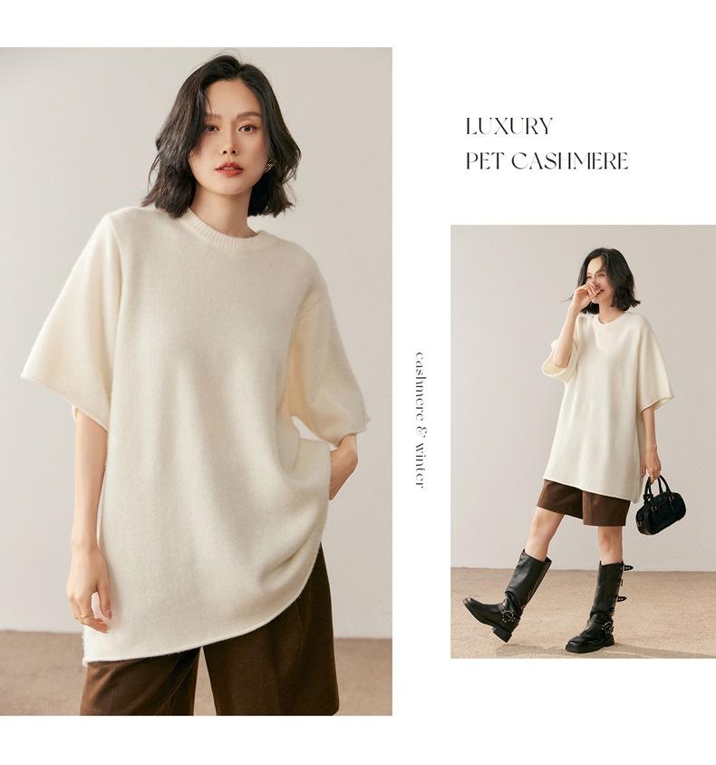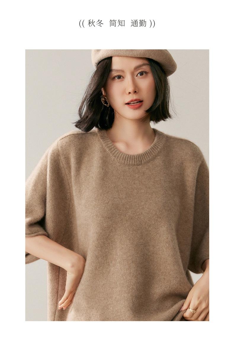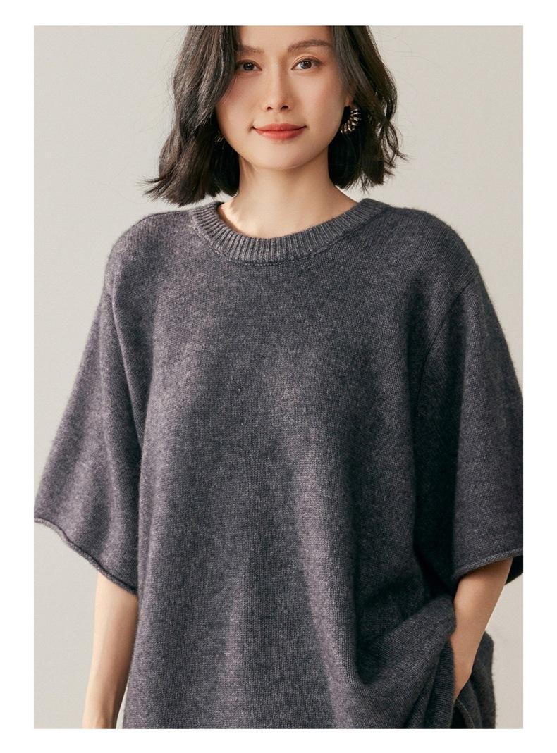 Suéter de cachemira de largo medio con manga cinco cuartos 2025 otoño e invierno nuevo suéter base de cuello redondo para mujer estilo elegante suéter de manga tres cuartos