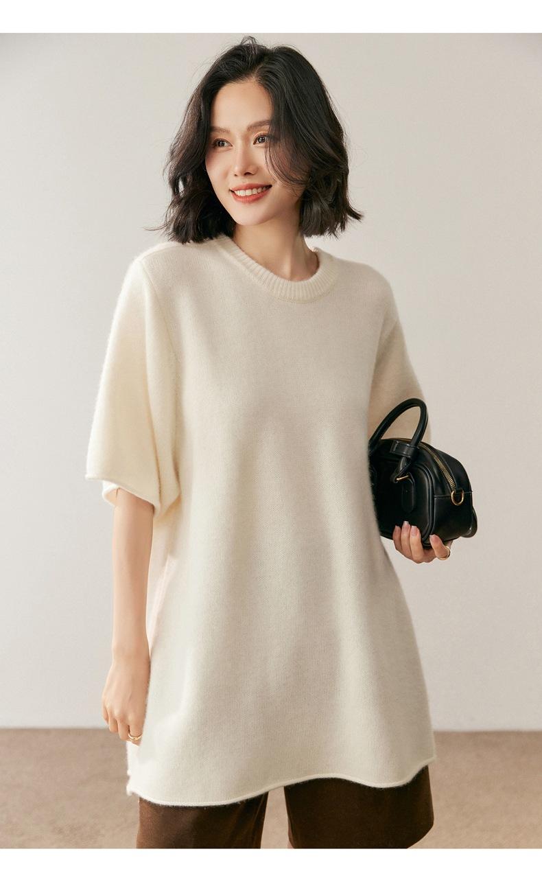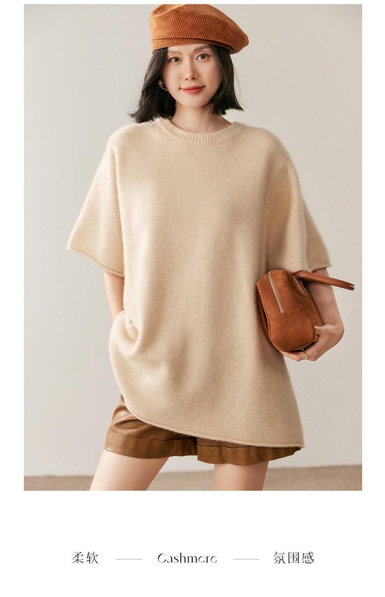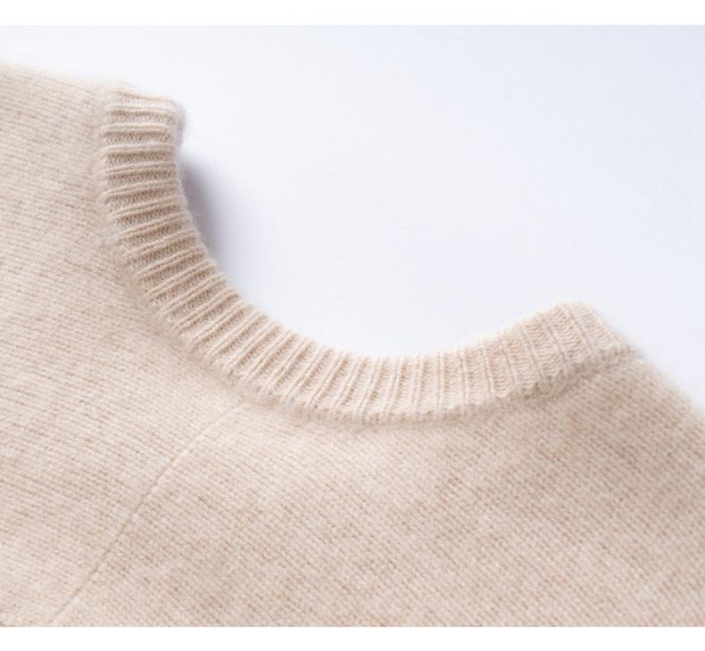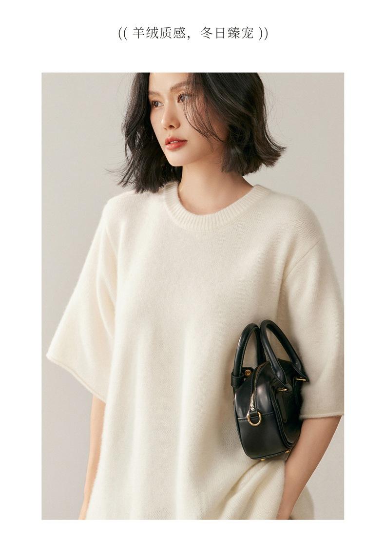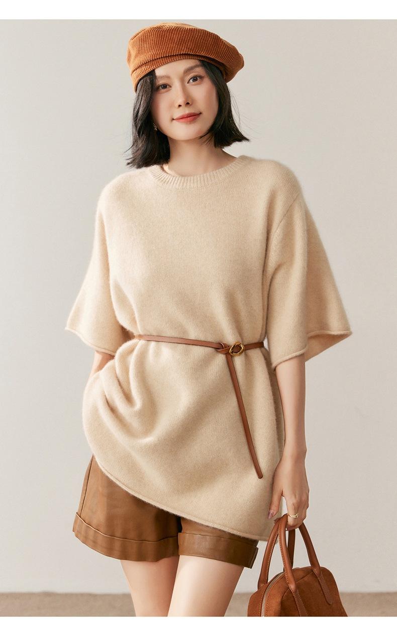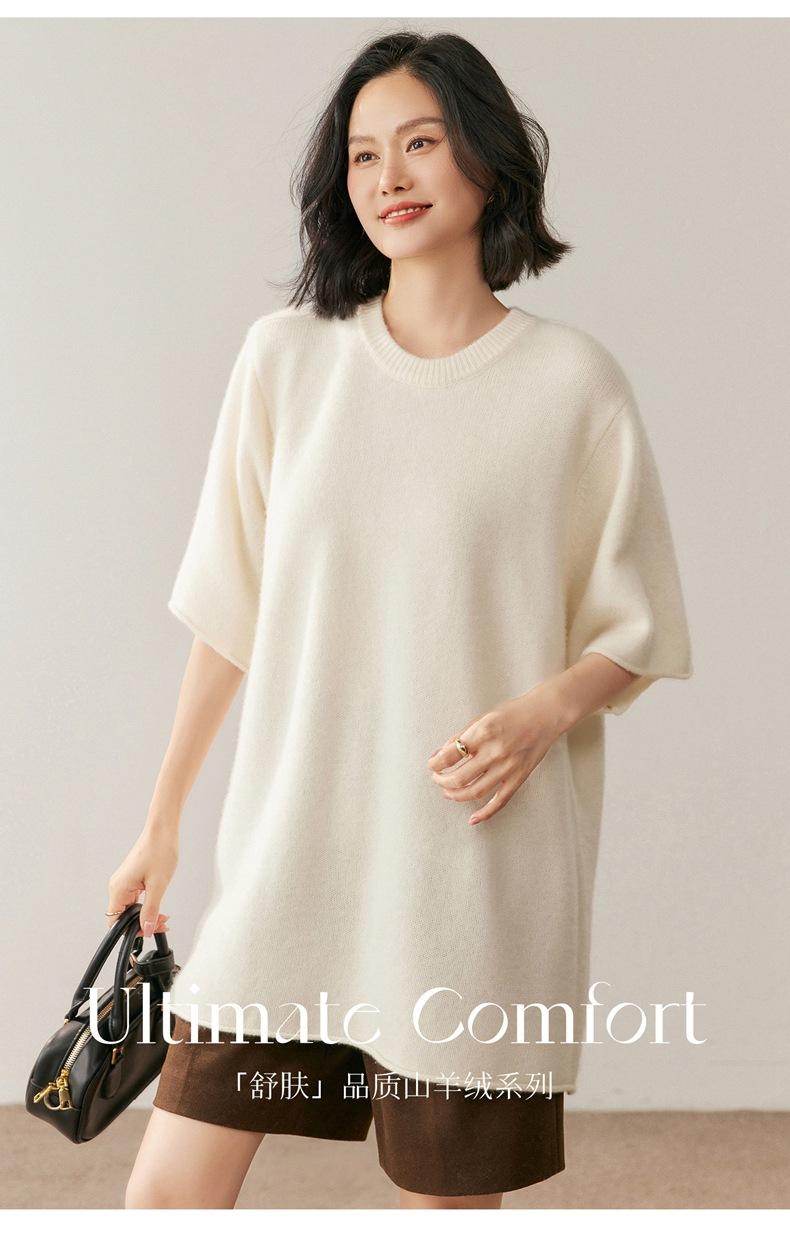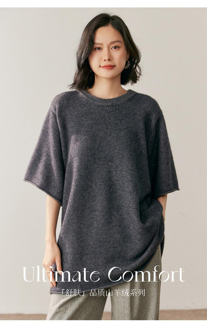 Suéter de cachemira de largo medio con manga cinco cuartos 2025 otoño e invierno nuevo suéter base de cuello redondo para mujer estilo elegante suéter de manga tres cuartos