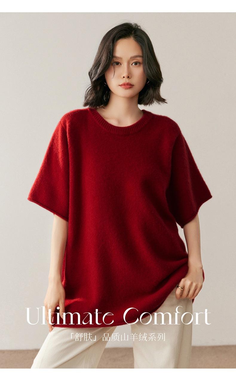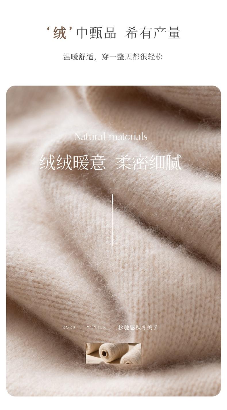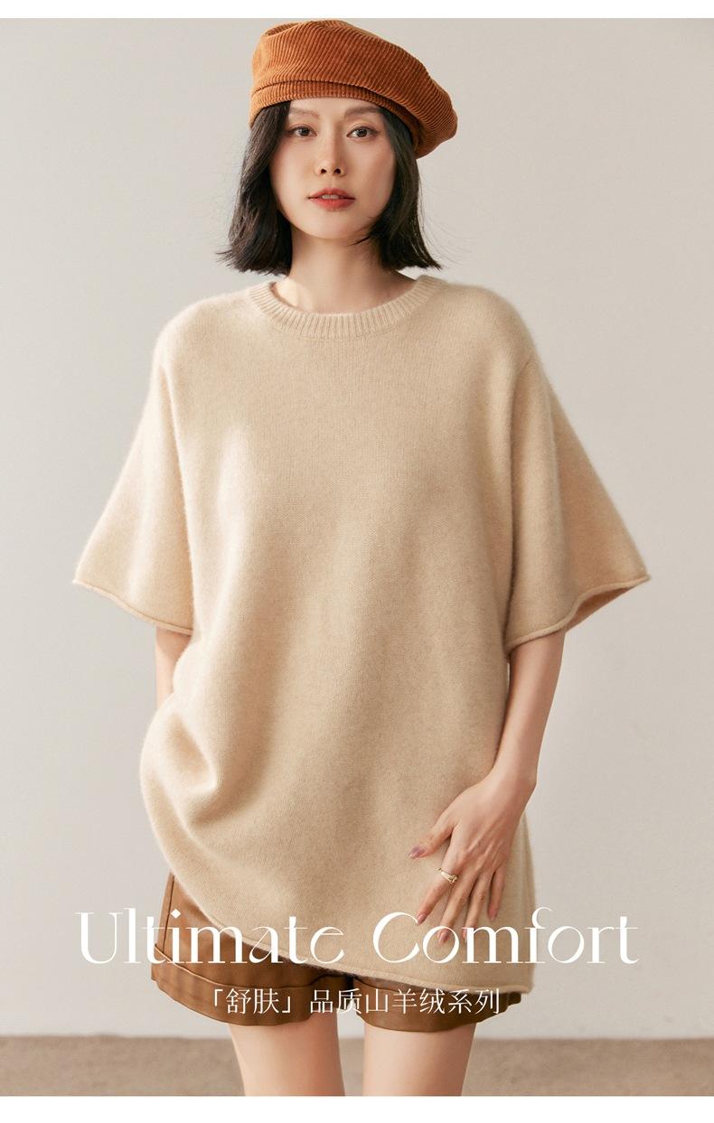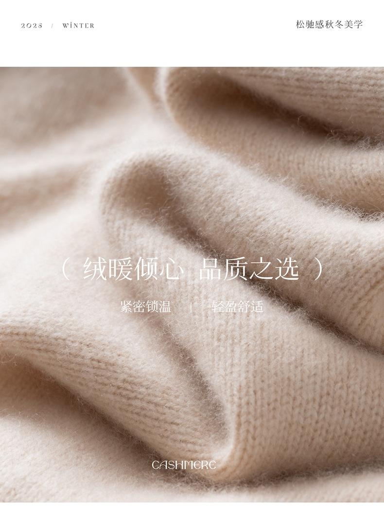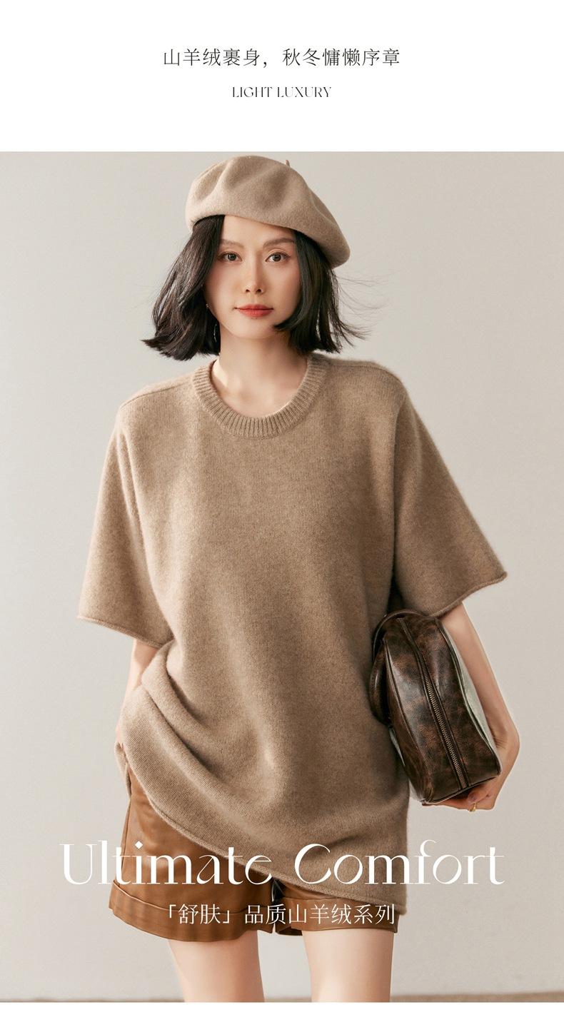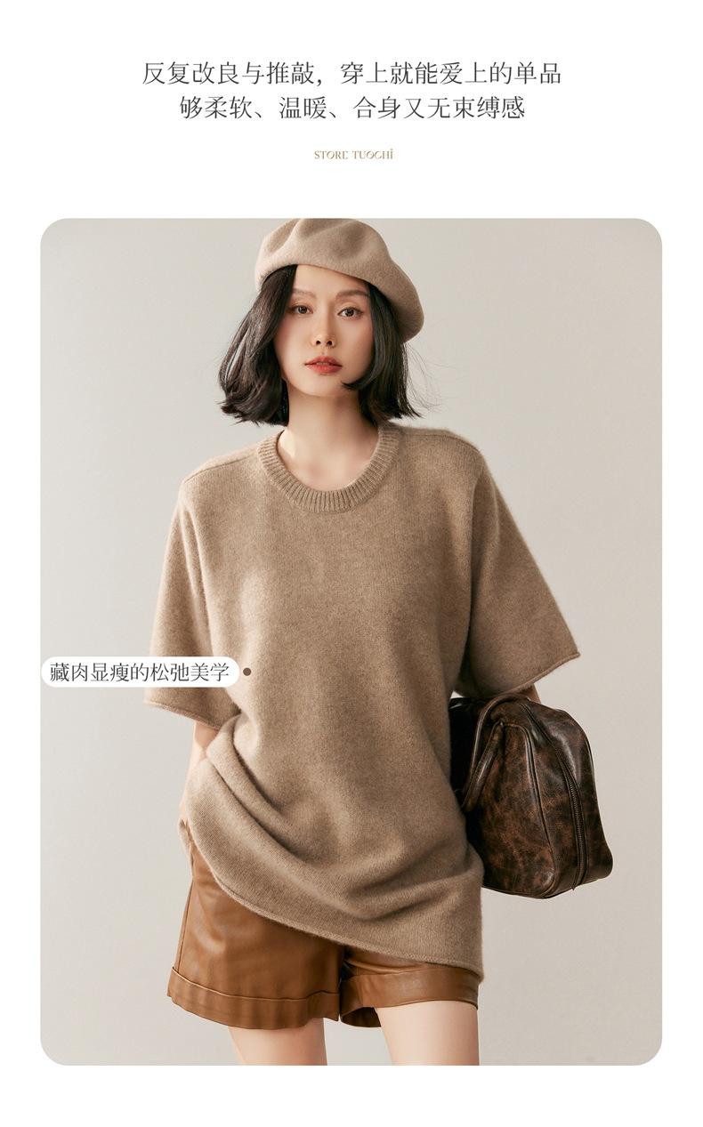 Suéter de cachemira de largo medio con manga cinco cuartos 2025 otoño e invierno nuevo suéter base de cuello redondo para mujer estilo elegante suéter de manga tres cuartos