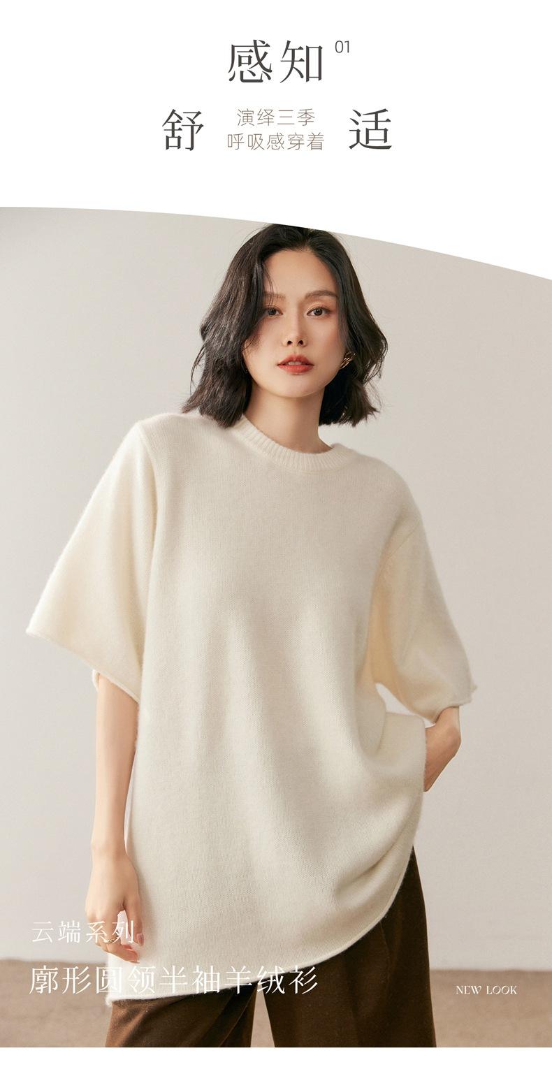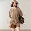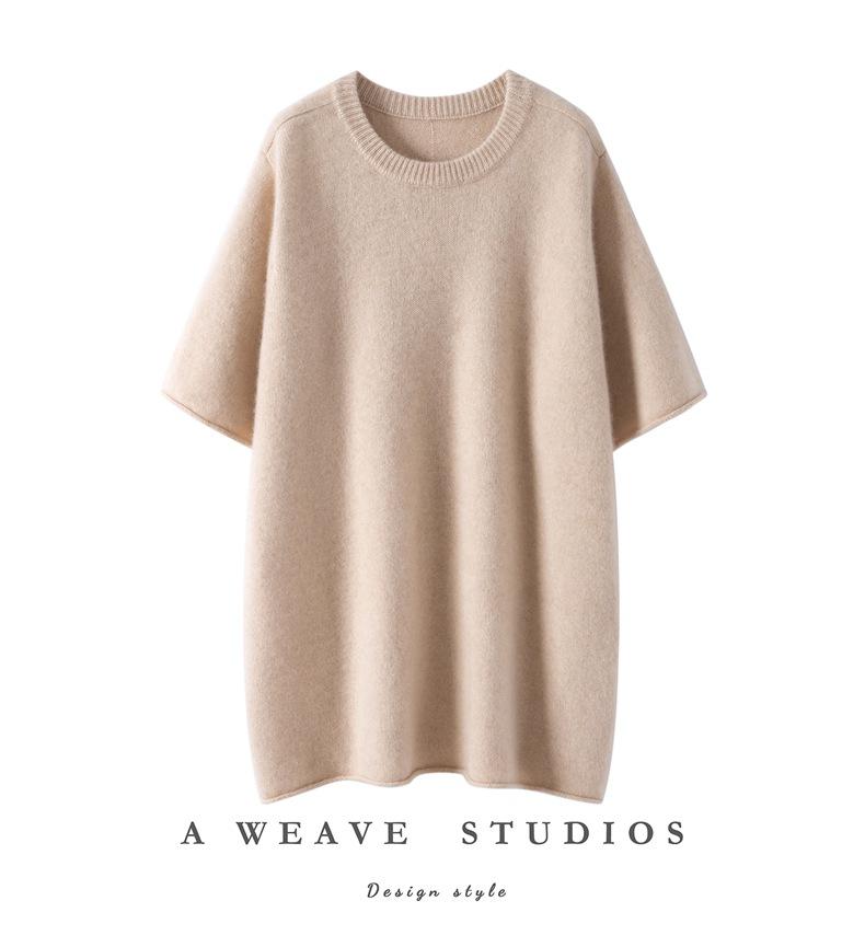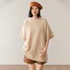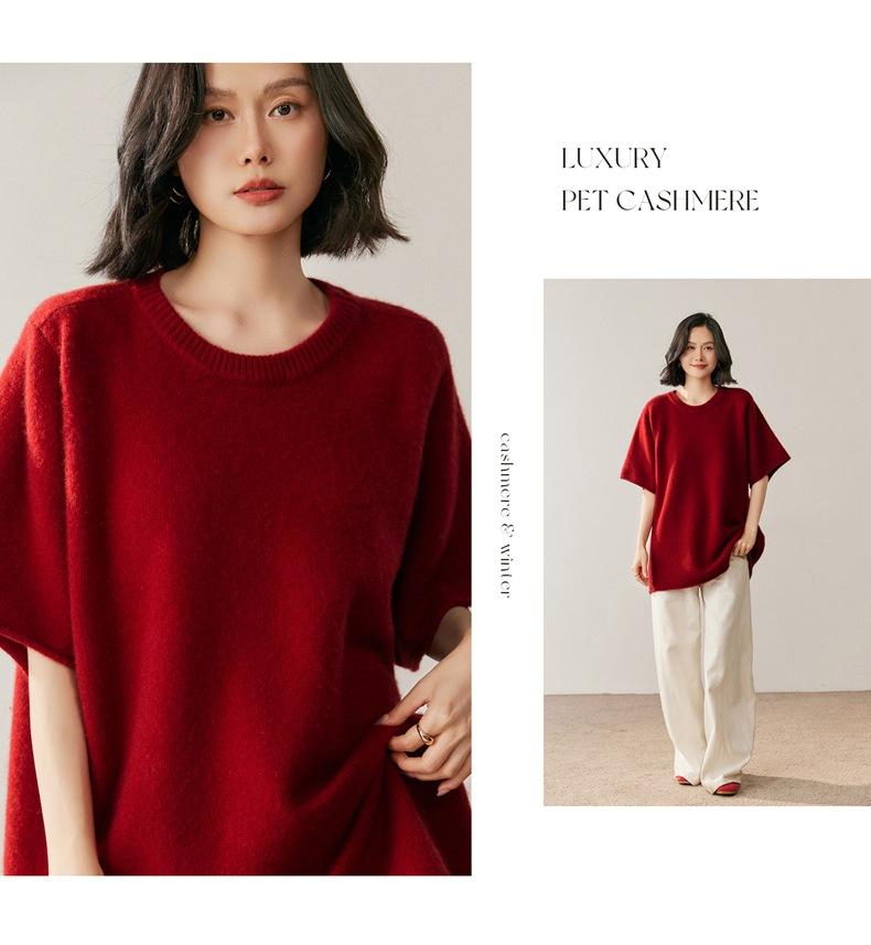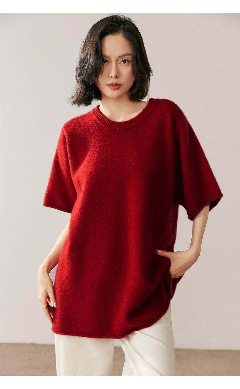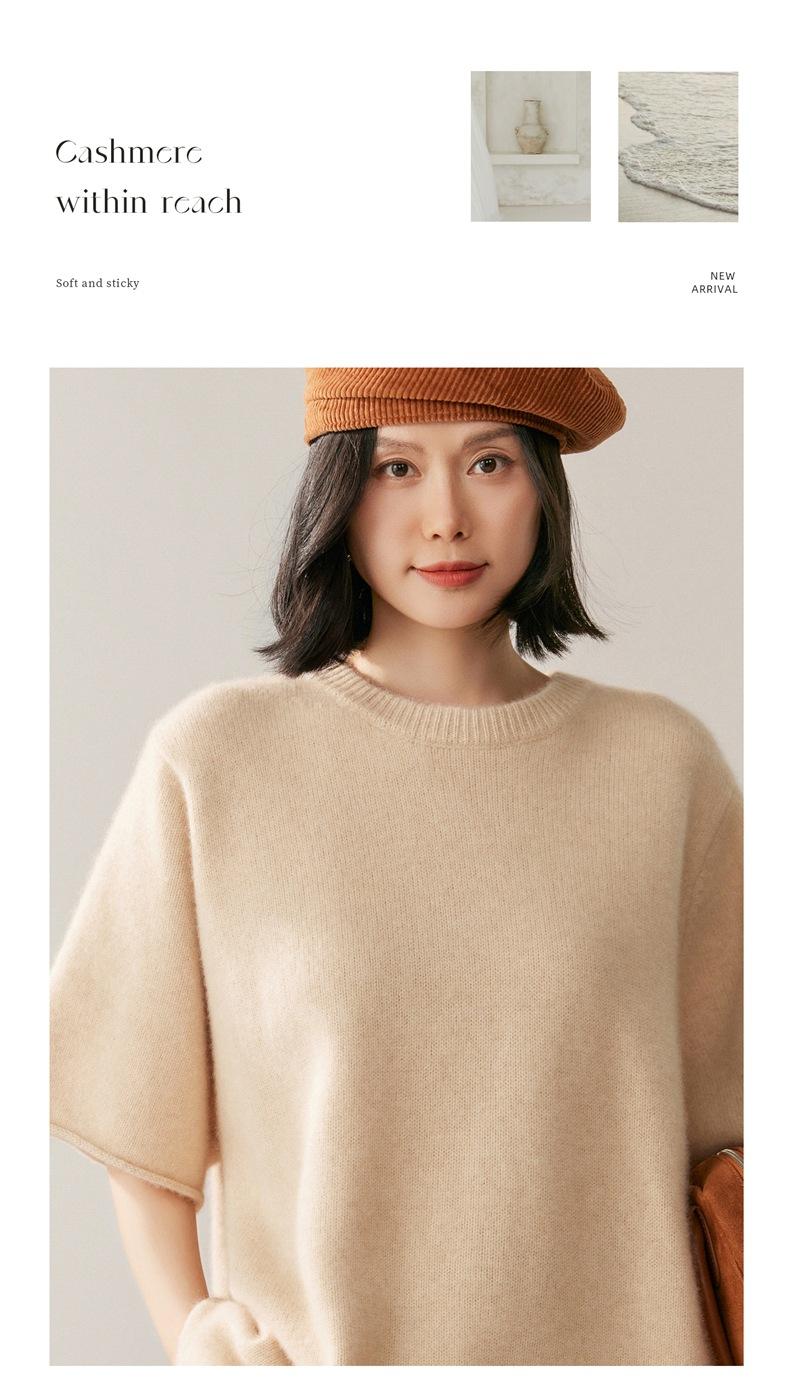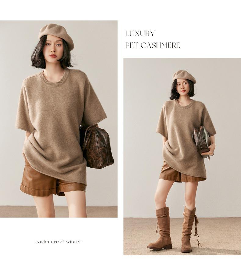 Suéter de cachemira de largo medio con manga cinco cuartos 2025 otoño e invierno nuevo suéter base de cuello redondo para mujer estilo elegante suéter de manga tres cuartos