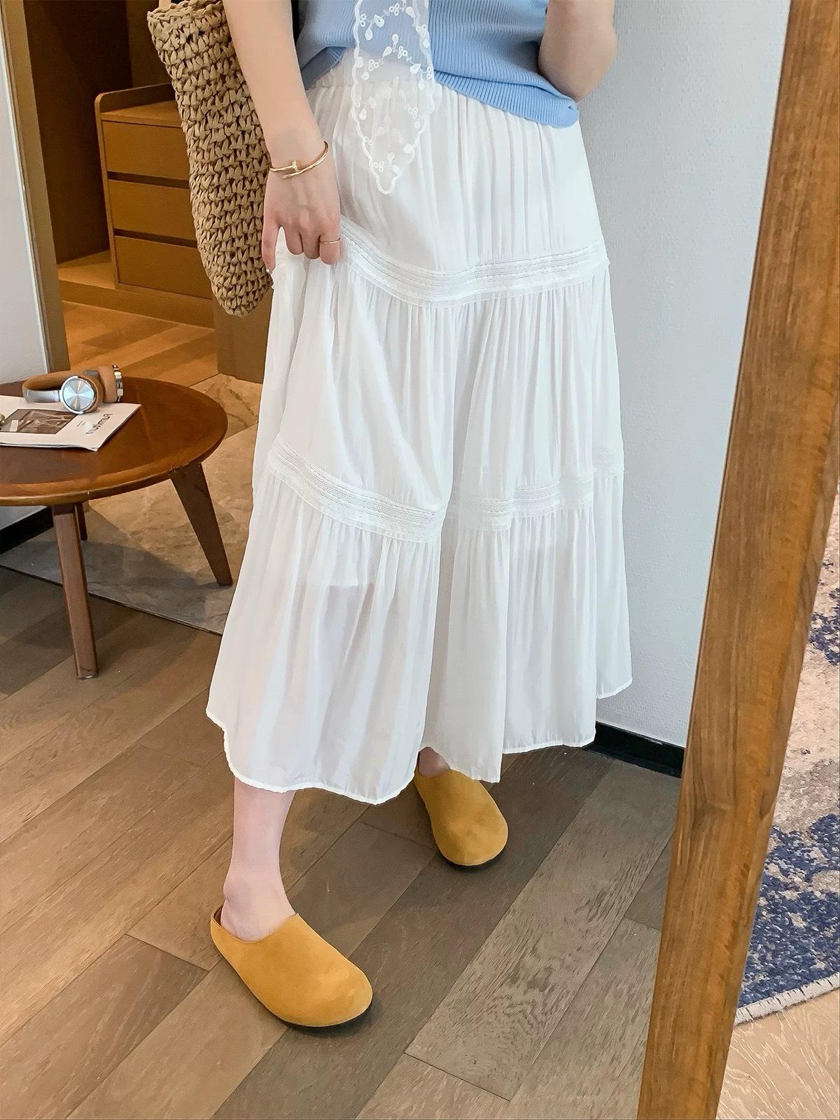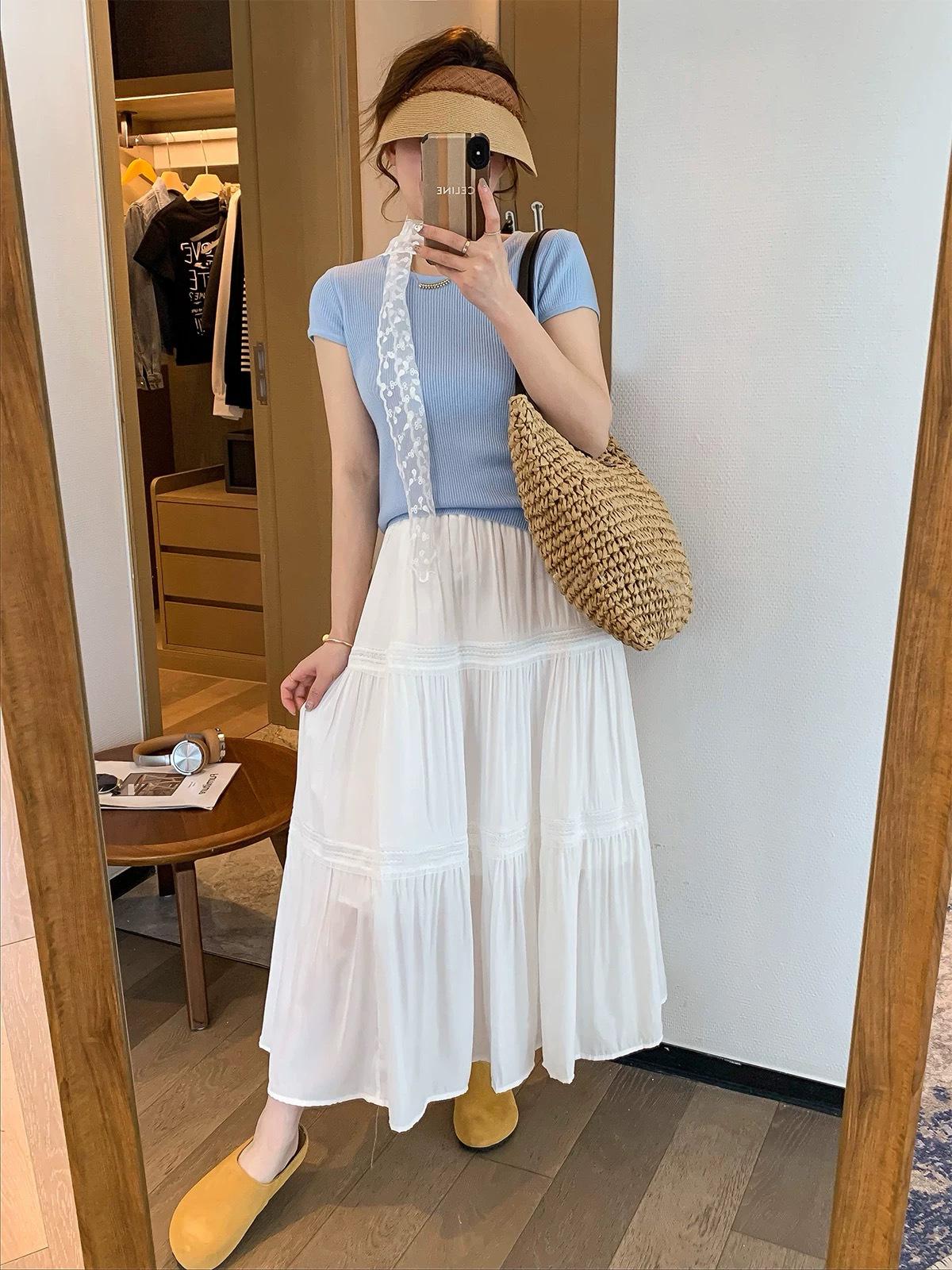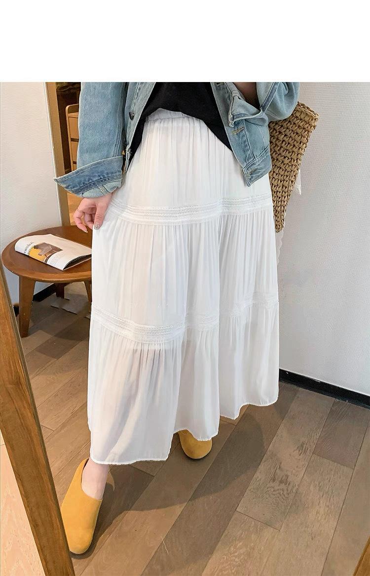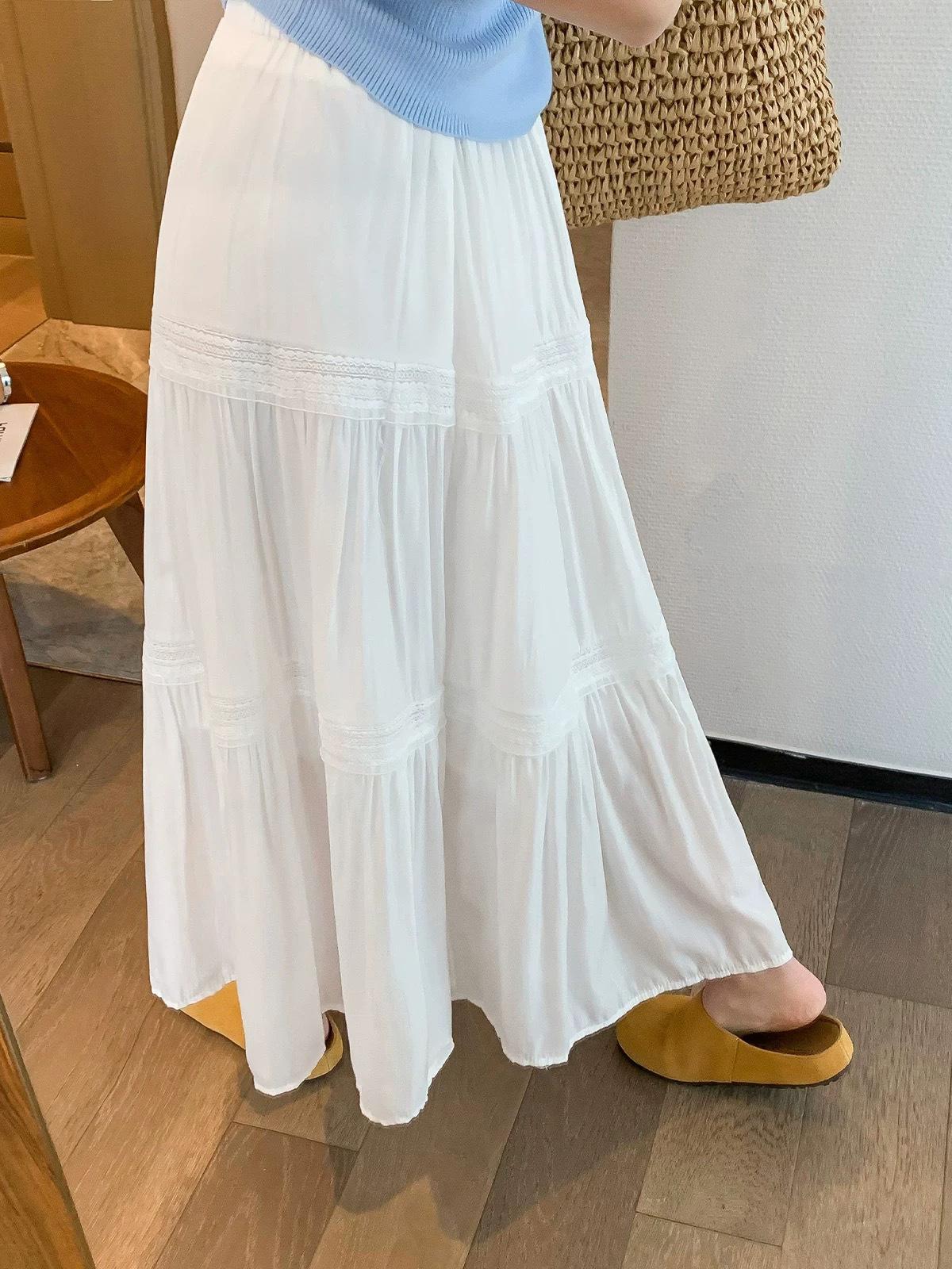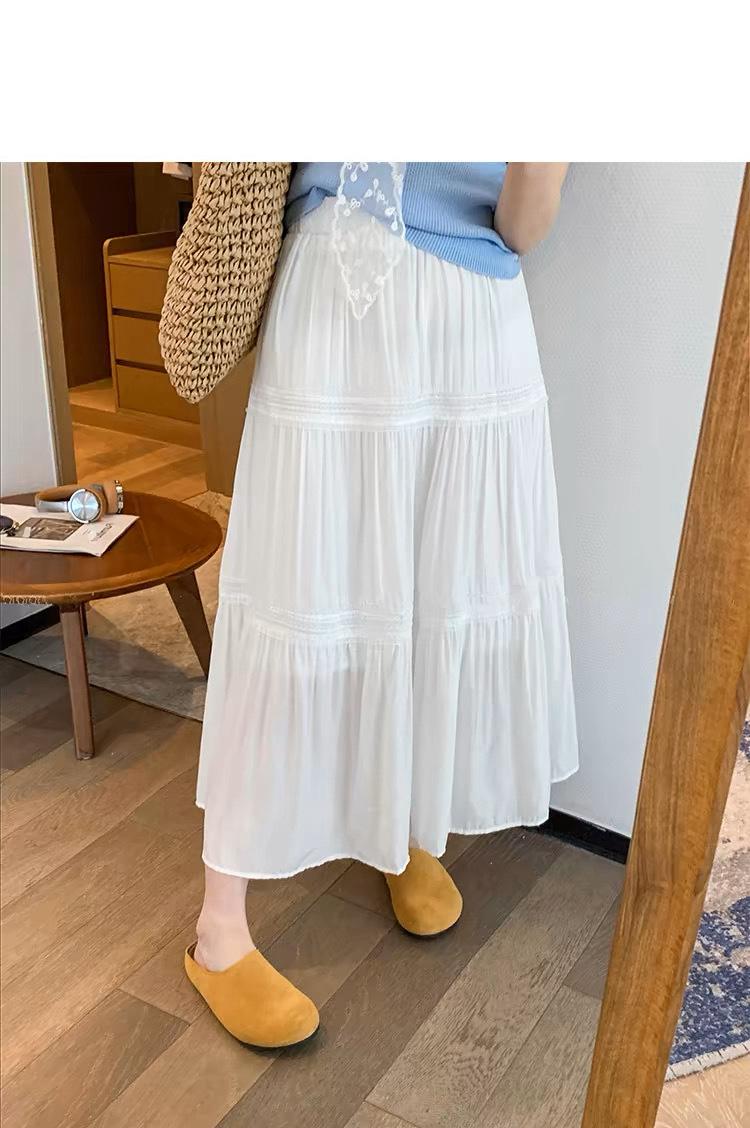 Falda Blanca Versátil Falda de Pastel Falda para Mujer 2025 Verano Nueva Cintura Alta Adelgazante A-line Falda Larga