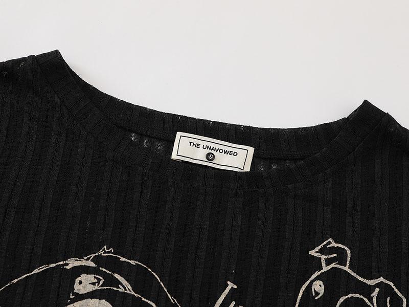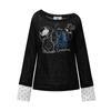 TKPA Camiseta de Manga Larga con Estampado de Cachorro Retro Americano para Mujer, Versátil, Adelgazante, Protección Solar, Tendencia Superior 2025