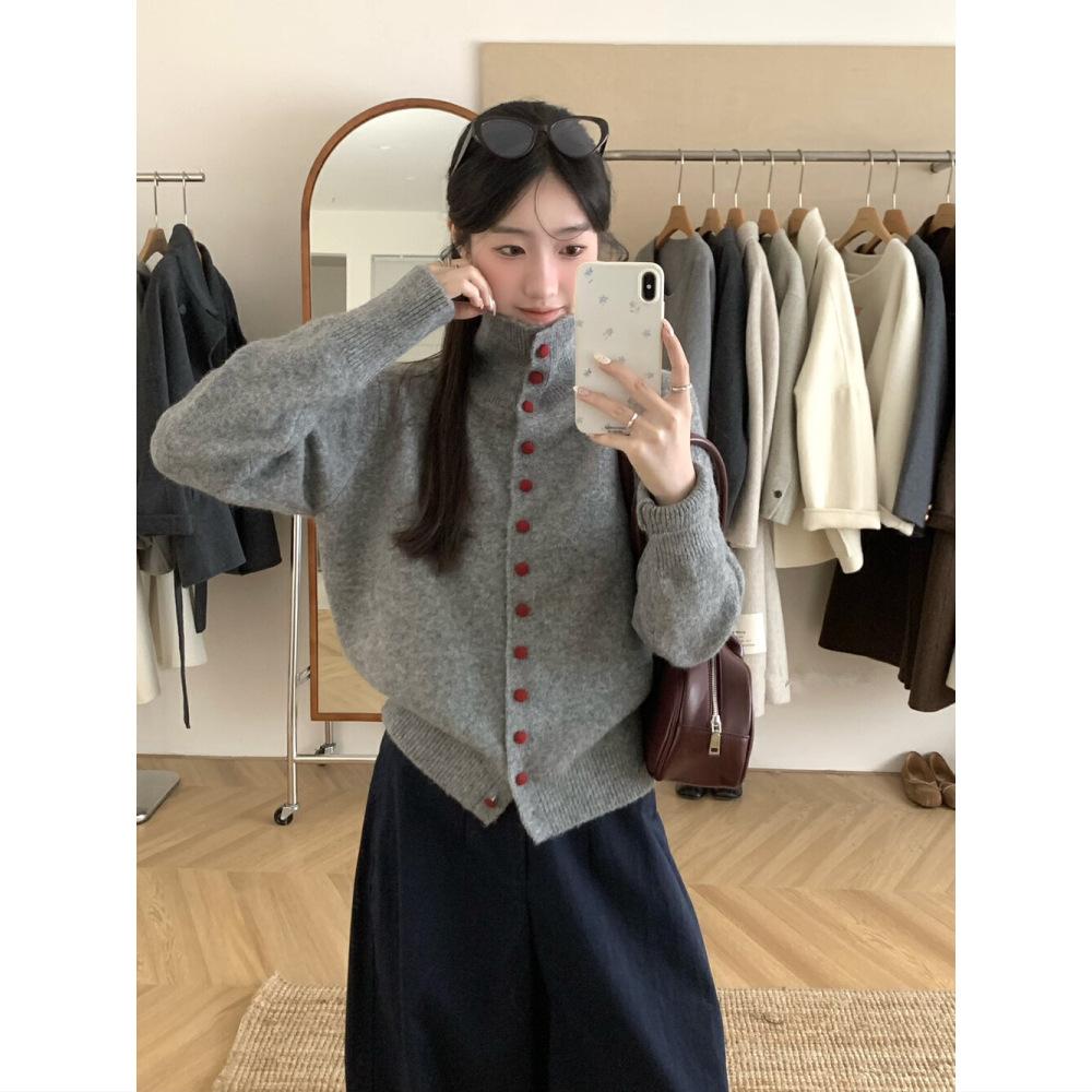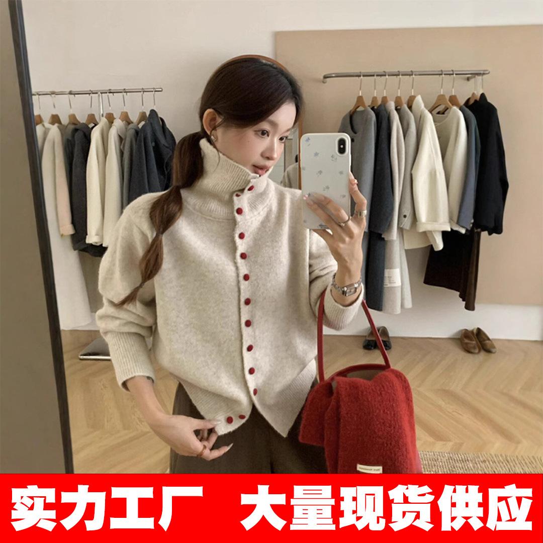 Cárdigan de punto de manga larga con cuello alto de tela de terciopelo Andy, nuevo suéter holgado corto para otoño/invierno 2025