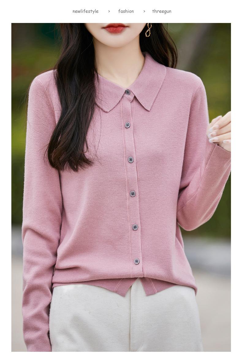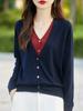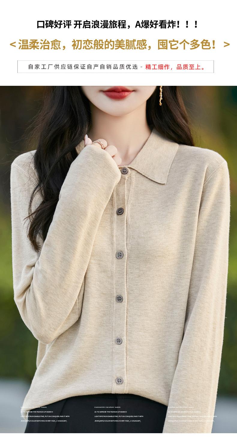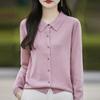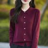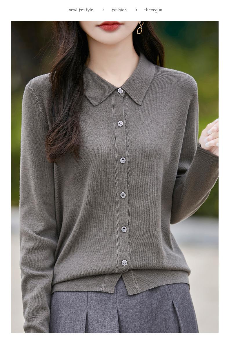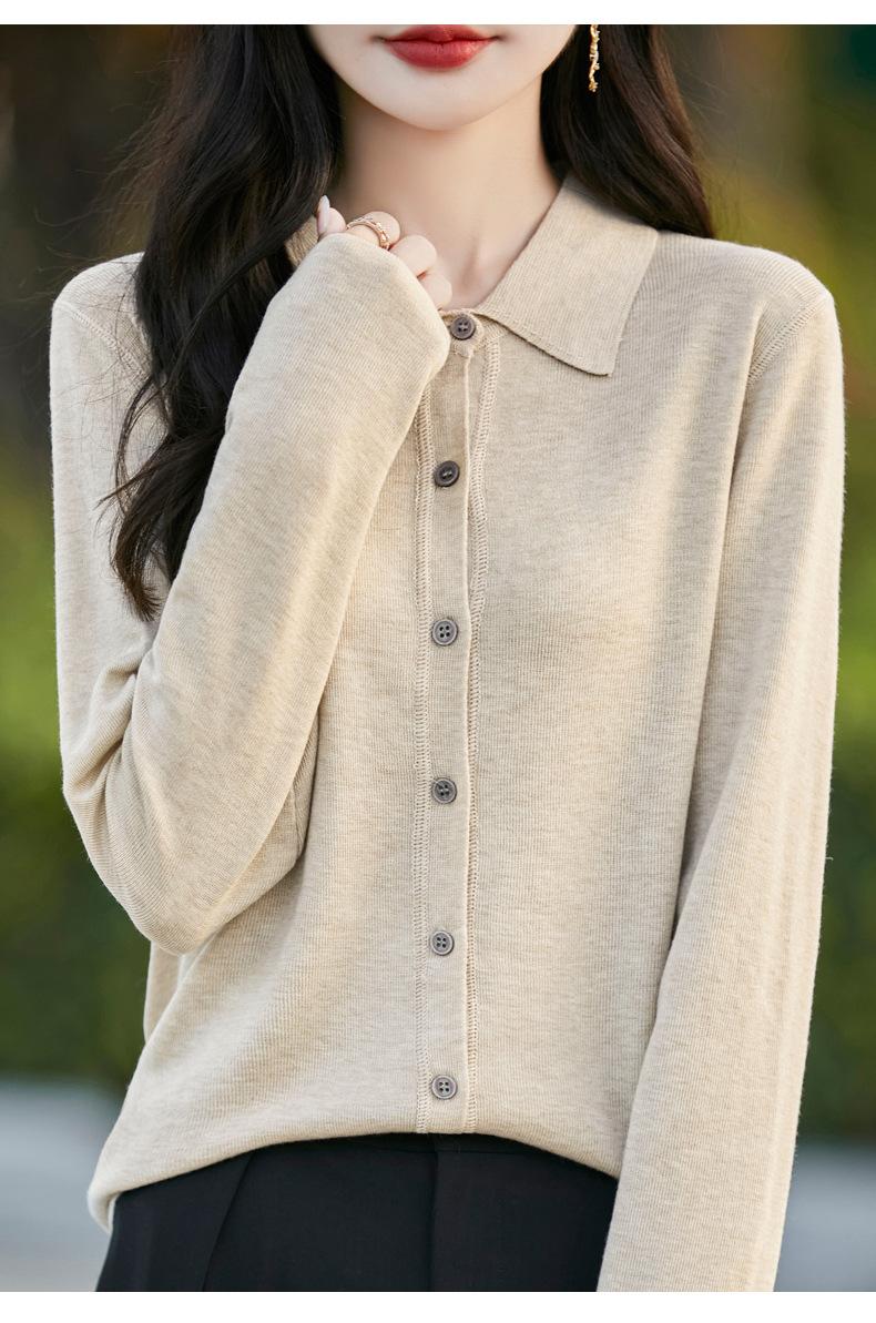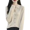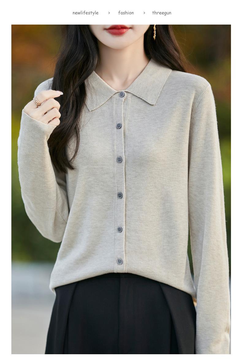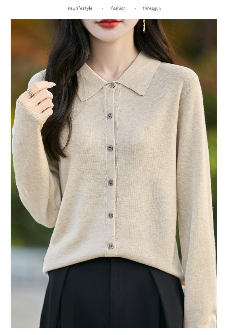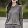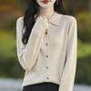 Cárdigan de Punto de Lana Merino Fina Nuevo Otoño/Invierno 2025 para Mujer Cuello Vuelto Color Sólido Abotonado Capa Interior Prenda Exterior Suéter