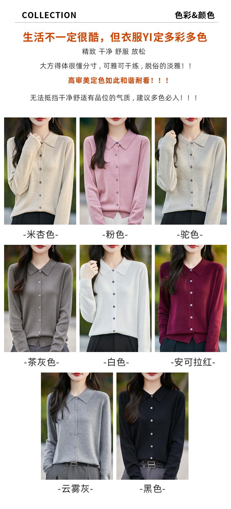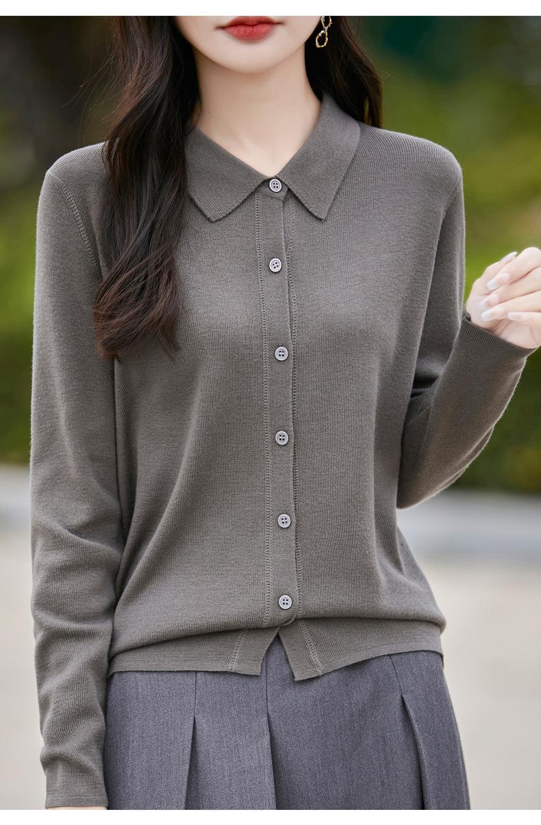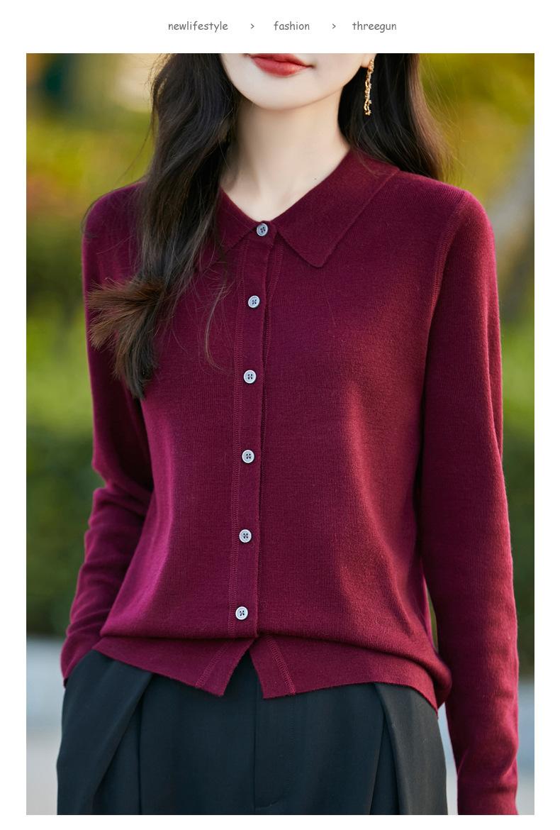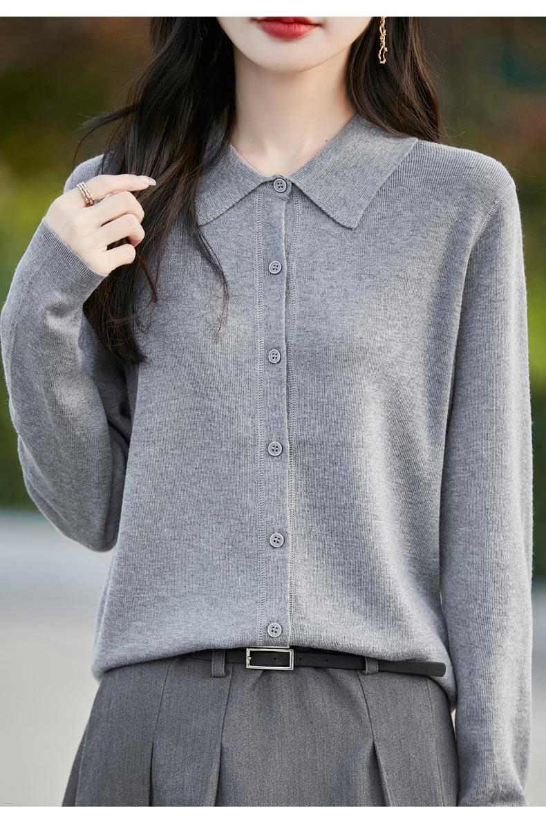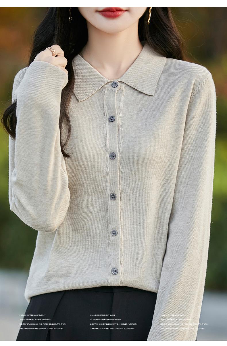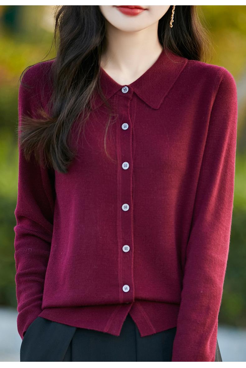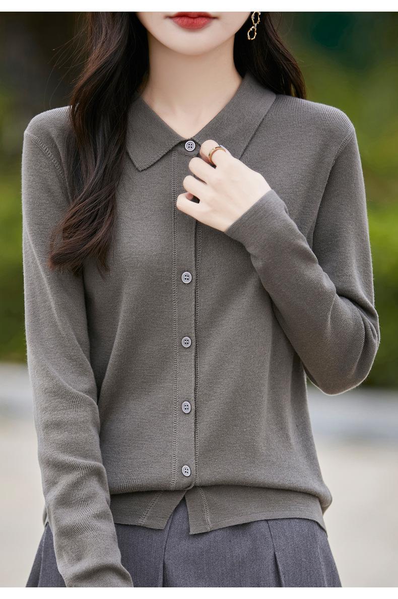 Cárdigan de Punto de Lana Merino Fina Nuevo Otoño/Invierno 2025 para Mujer Cuello Vuelto Color Sólido Abotonado Capa Interior Prenda Exterior Suéter