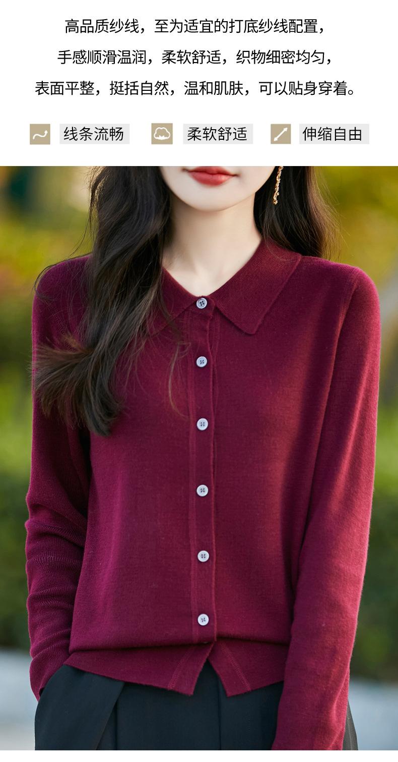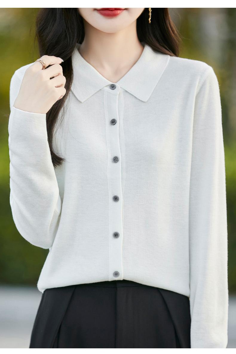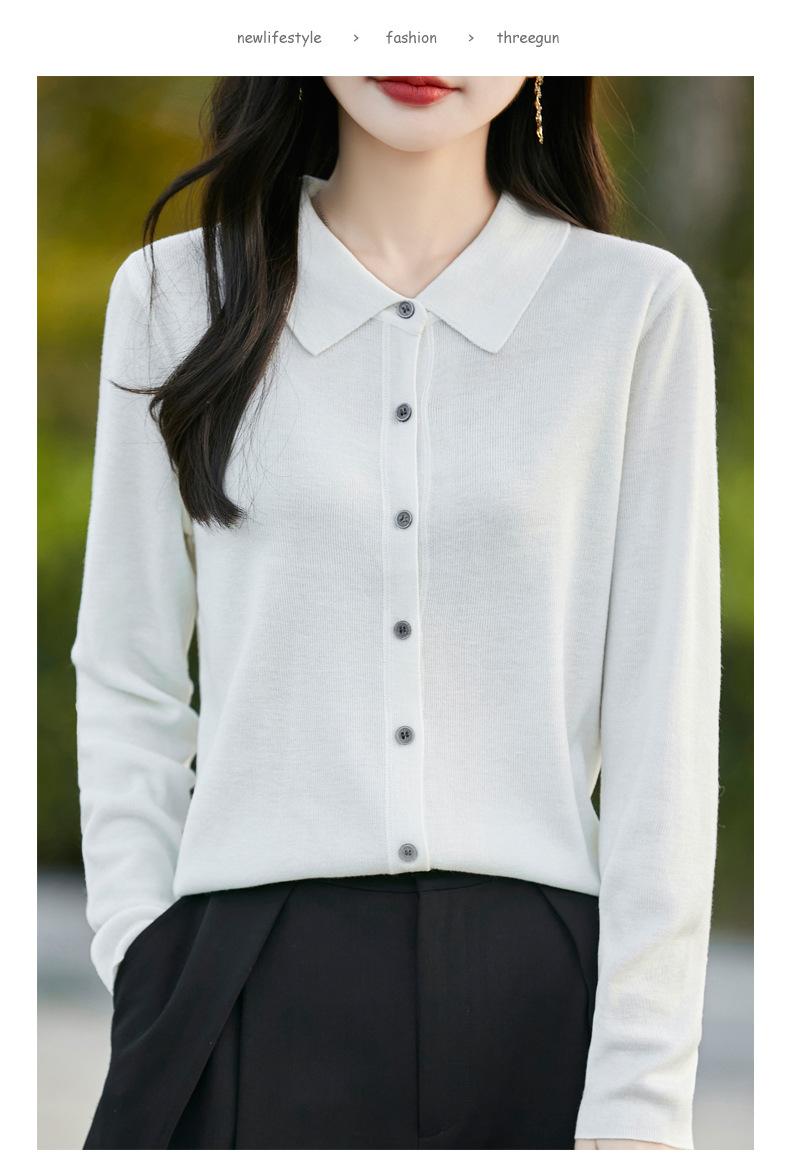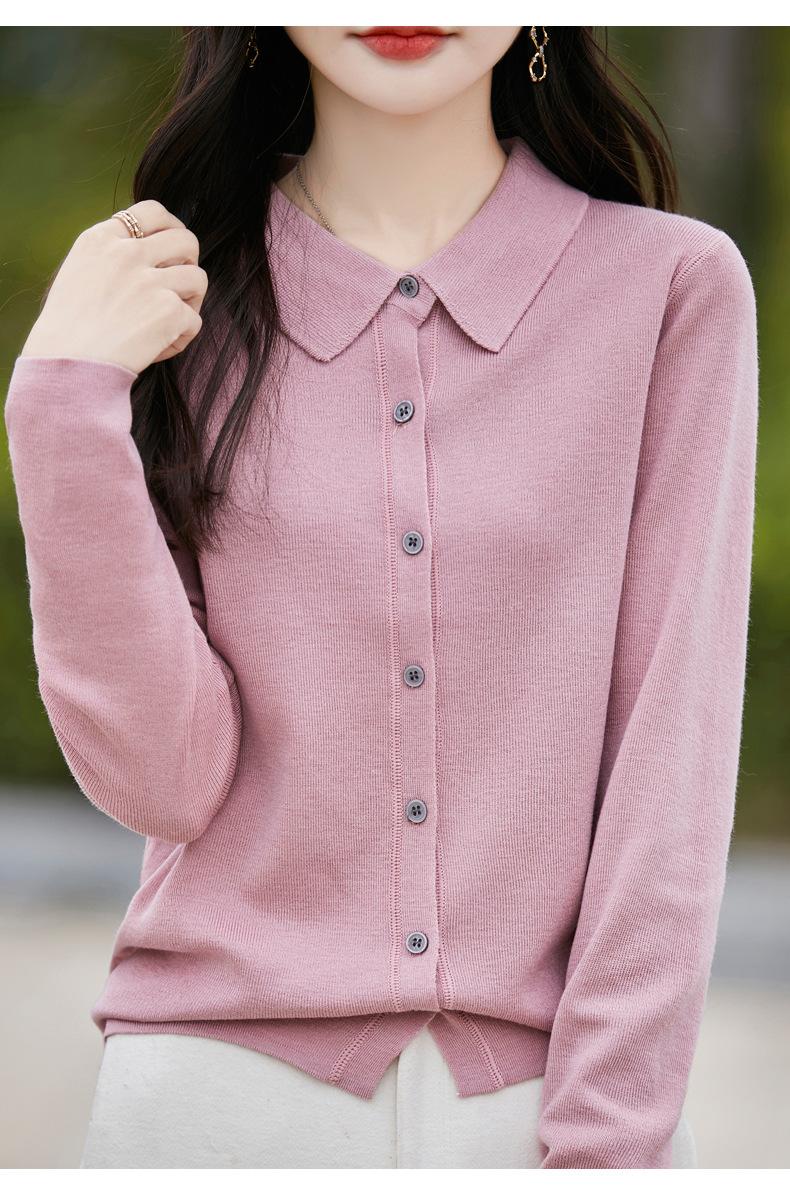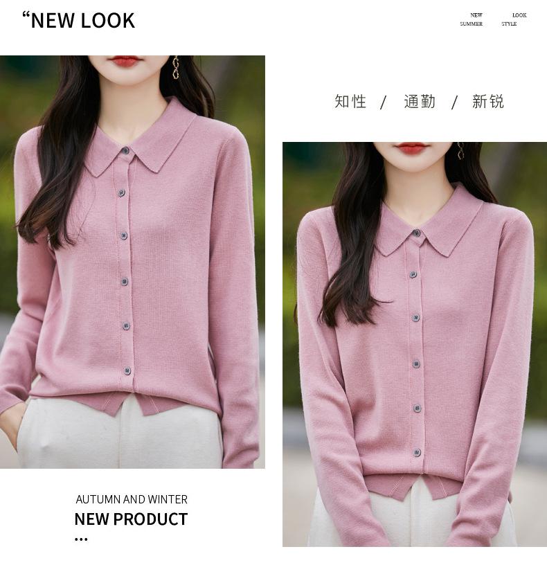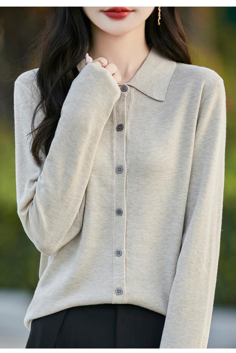 Cárdigan de Punto de Lana Merino Fina Nuevo Otoño/Invierno 2025 para Mujer Cuello Vuelto Color Sólido Abotonado Capa Interior Prenda Exterior Suéter
