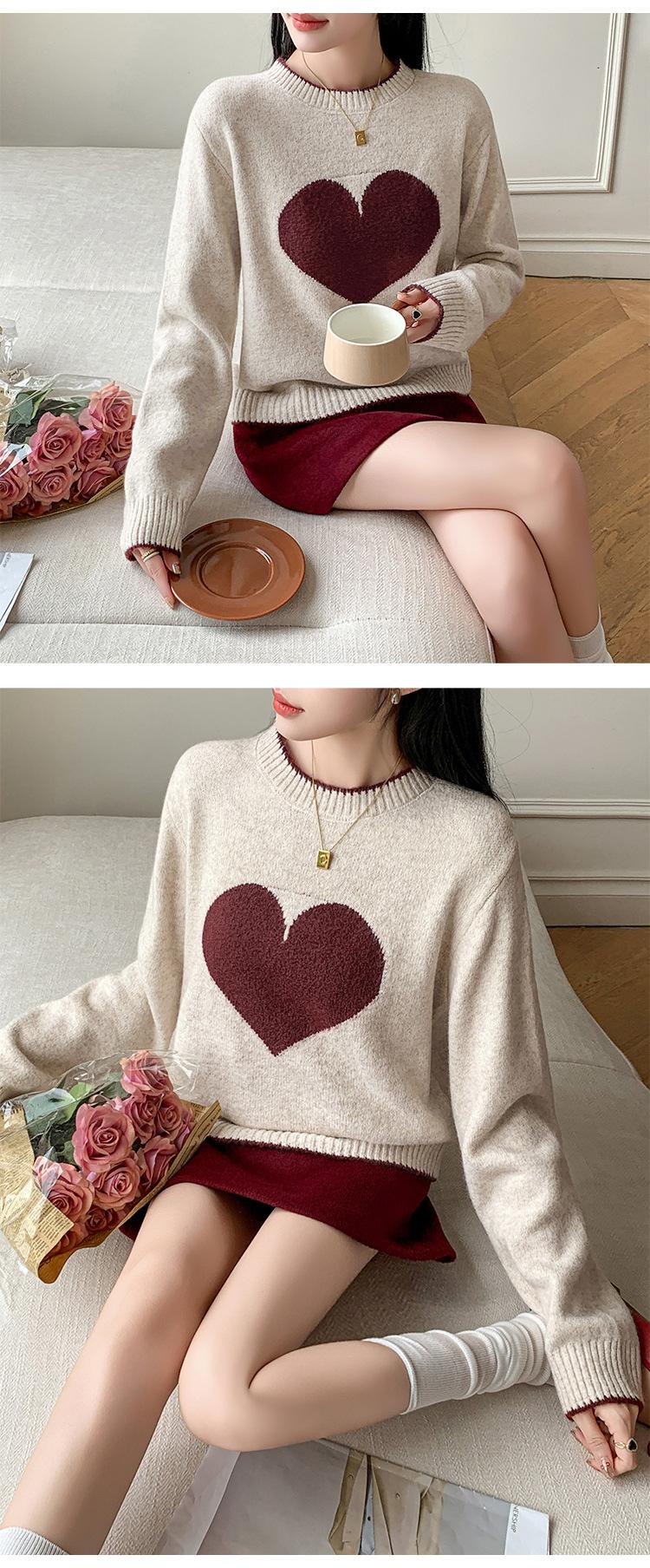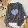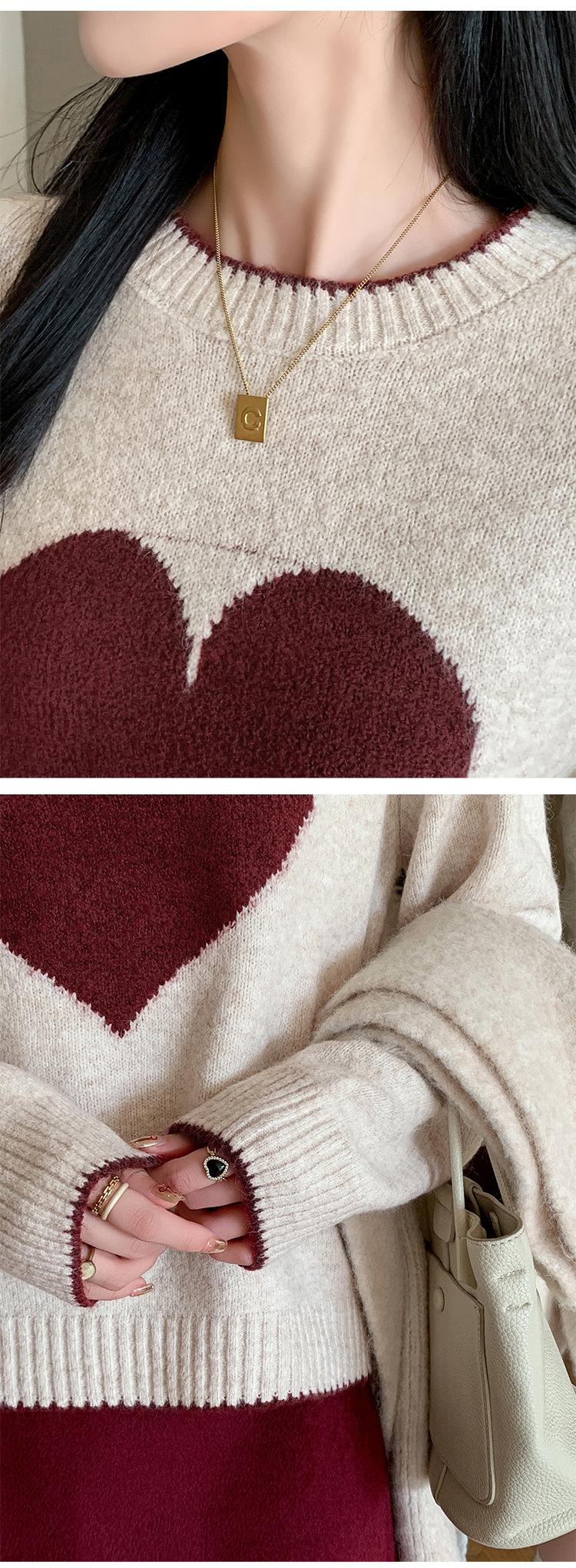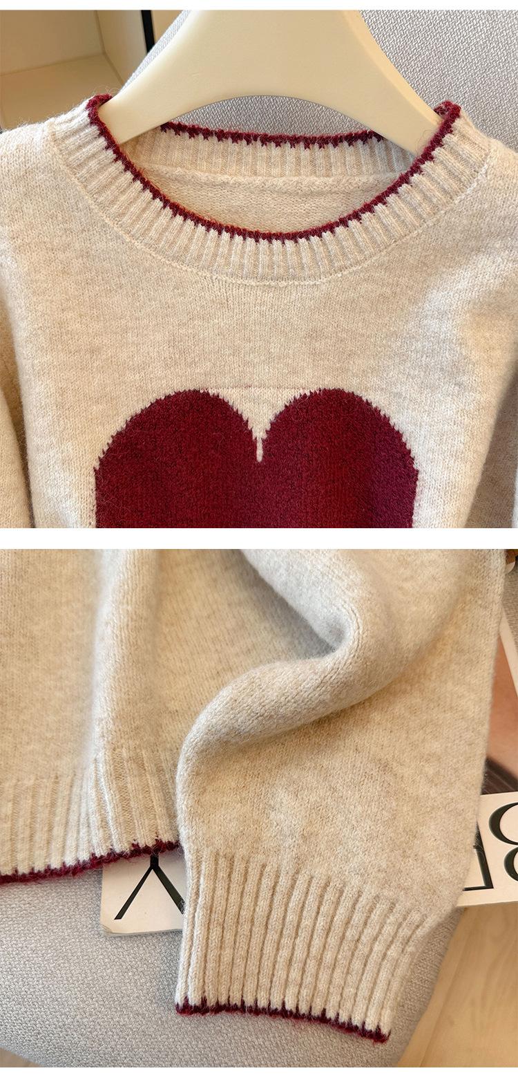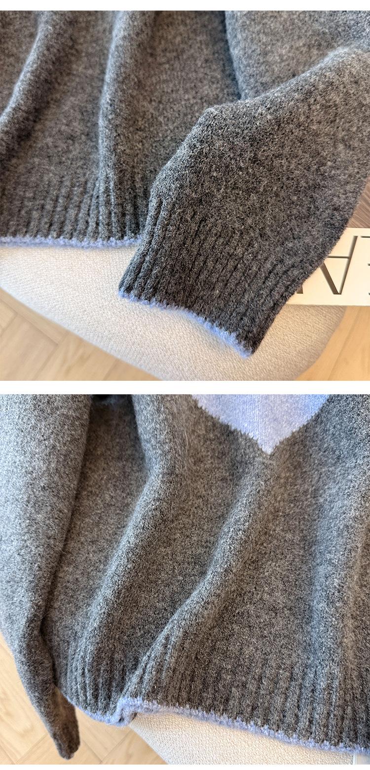 Descubre Otoño e Invierno Nuevo Sentido de Diseño Coreano Corazón Cuello Redondo Jersey Color Mohair Bloque de Color Suéter de Punto para Mujer