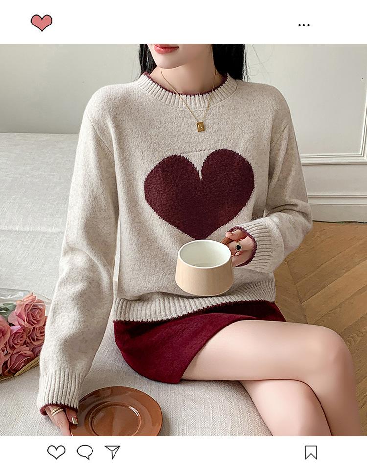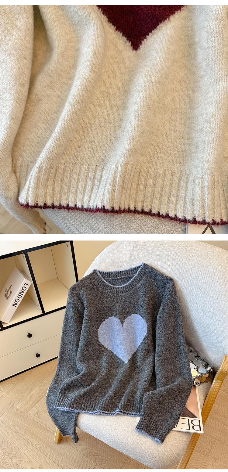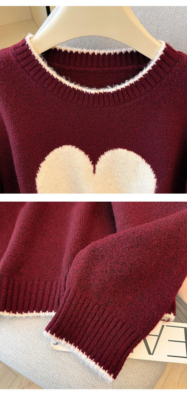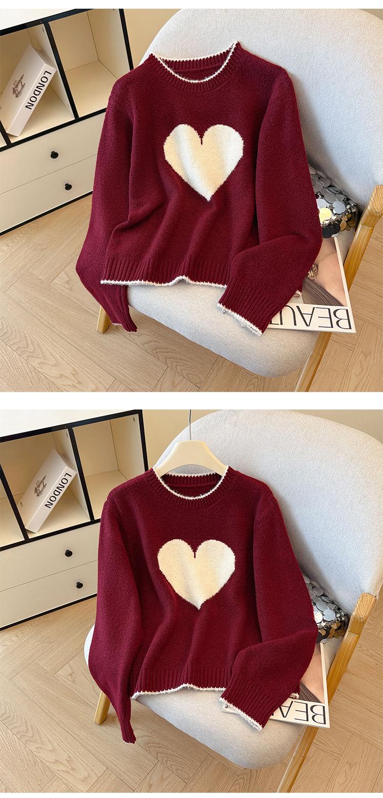 Descubre Otoño e Invierno Nuevo Sentido de Diseño Coreano Corazón Cuello Redondo Jersey Color Mohair Bloque de Color Suéter de Punto para Mujer