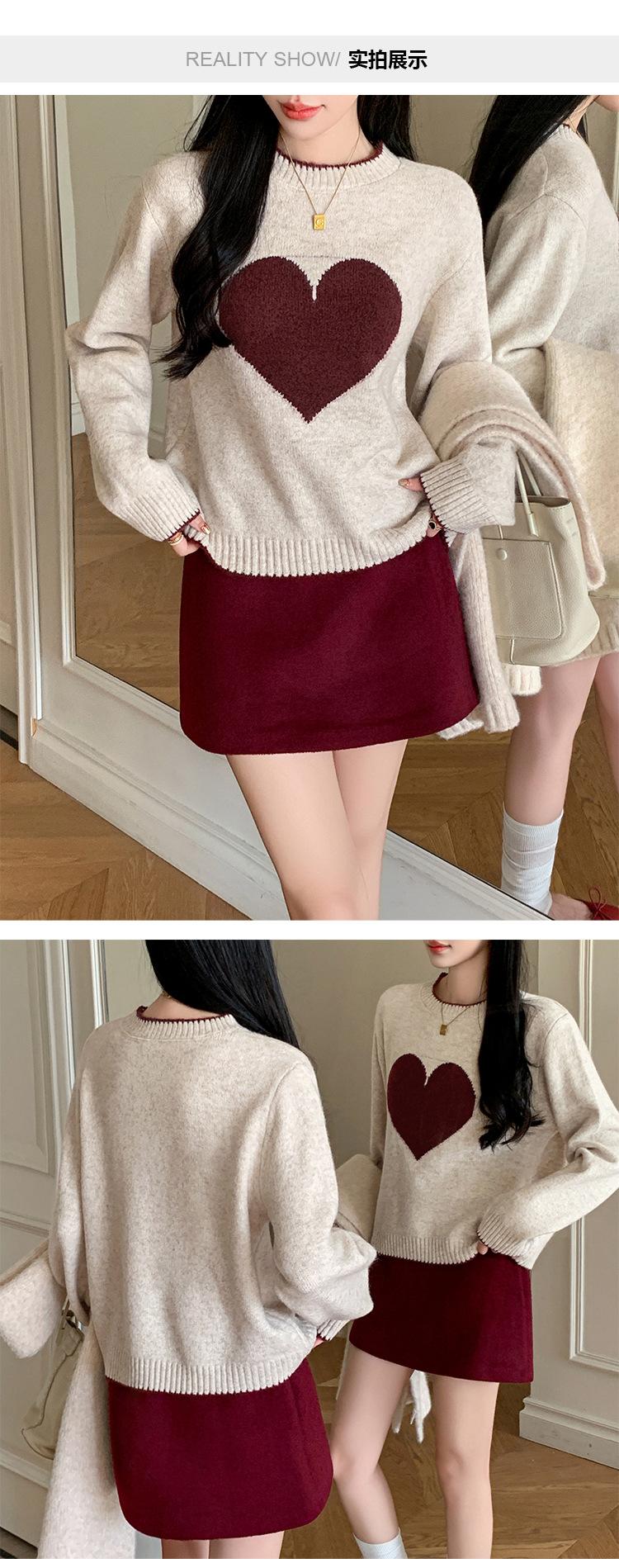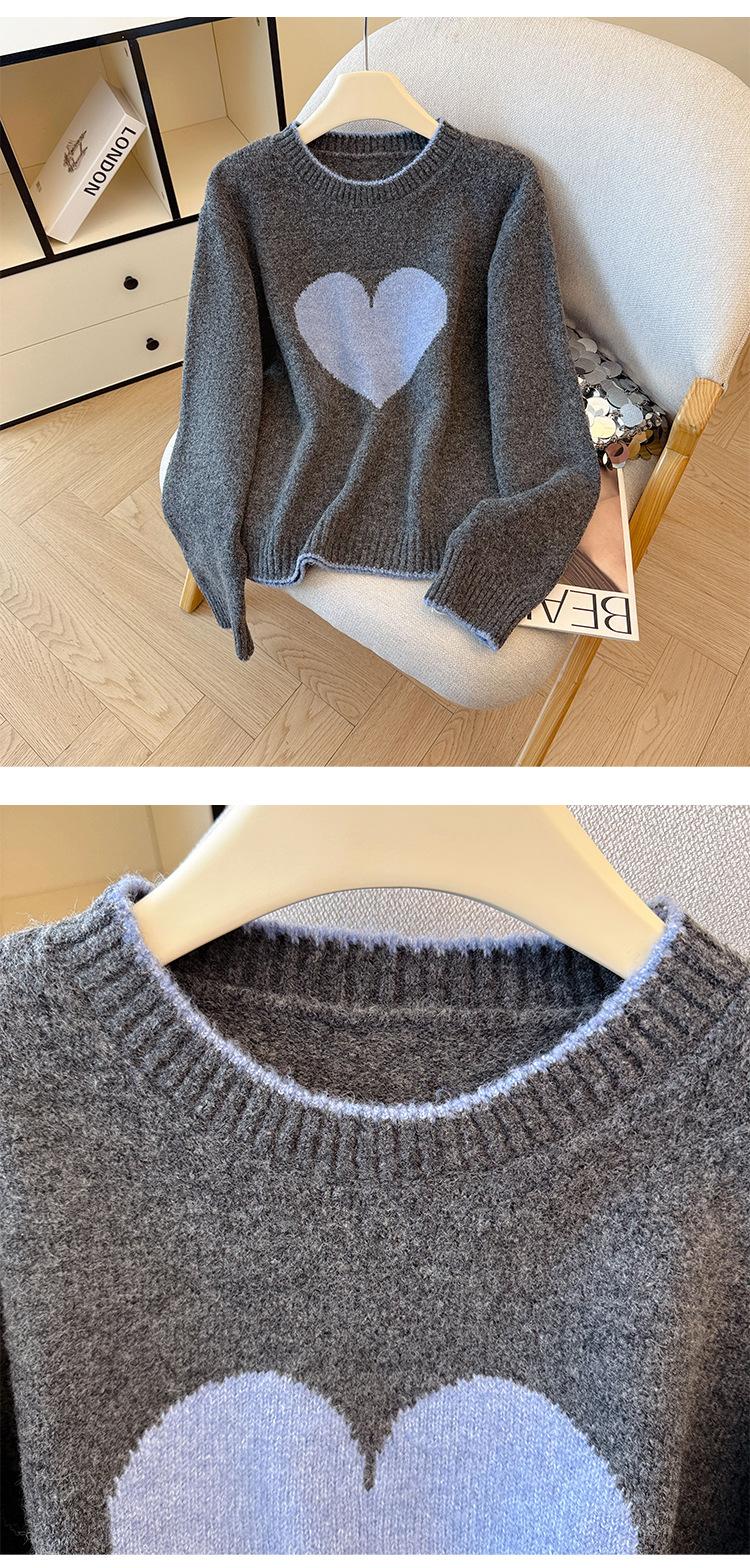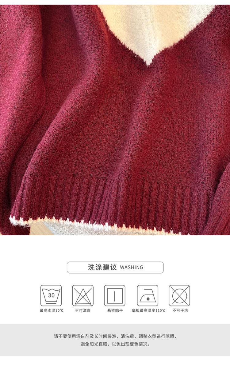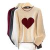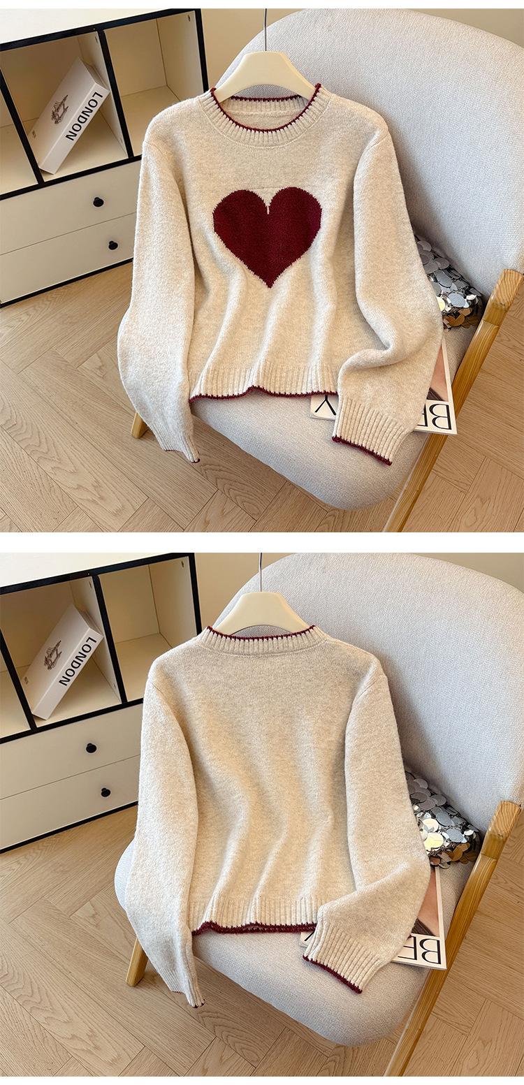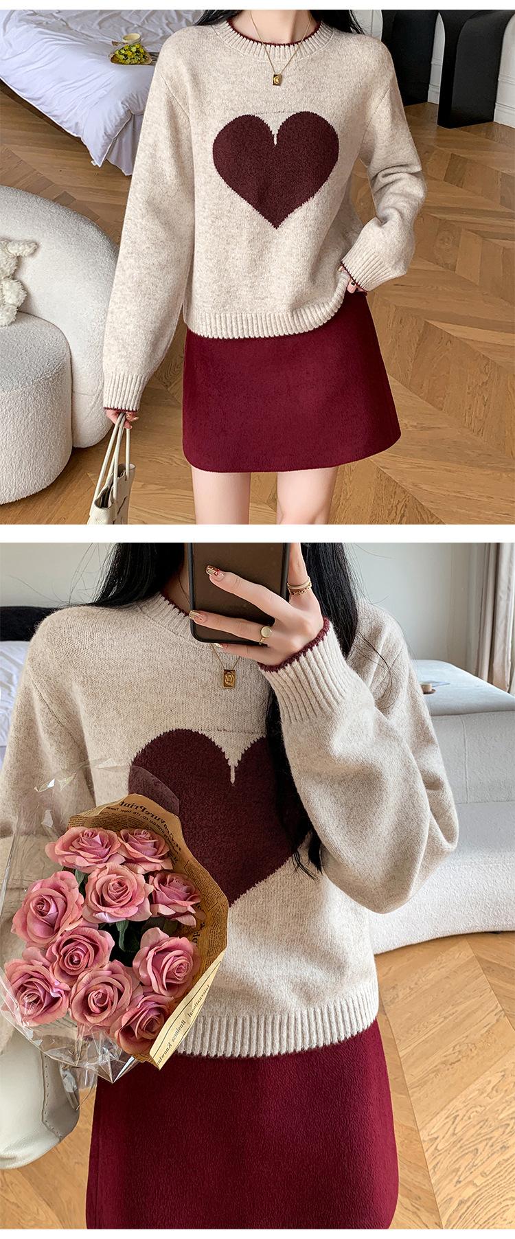 Descubre Otoño e Invierno Nuevo Sentido de Diseño Coreano Corazón Cuello Redondo Jersey Color Mohair Bloque de Color Suéter de Punto para Mujer