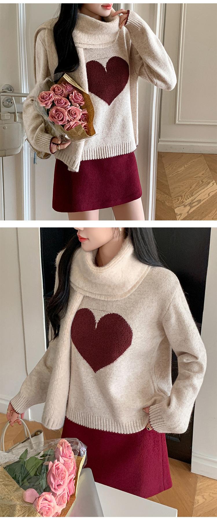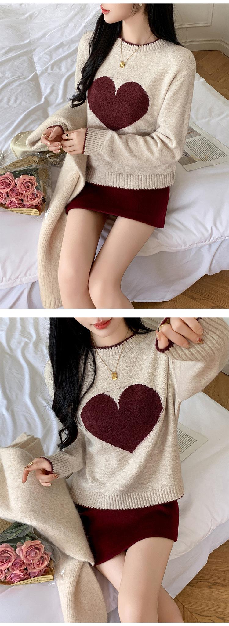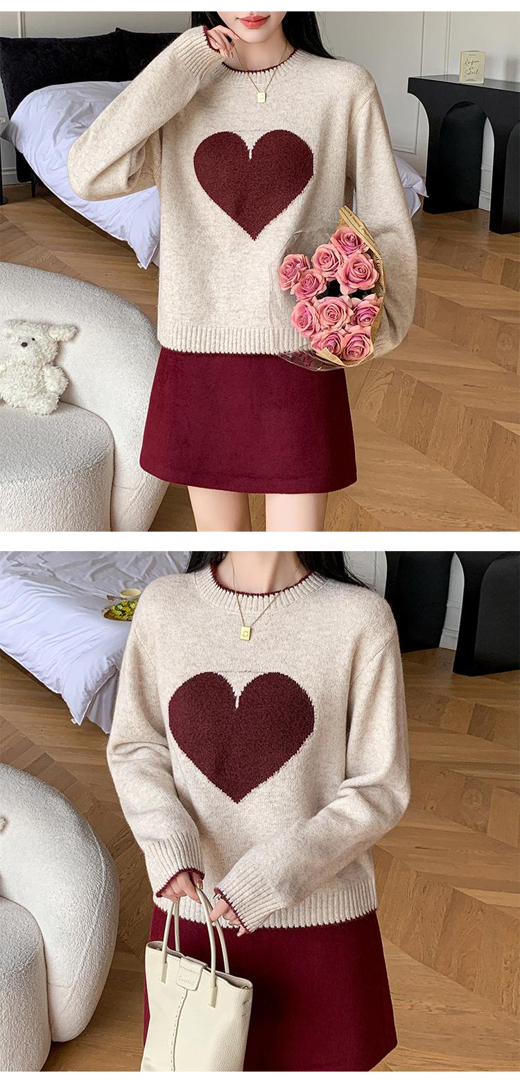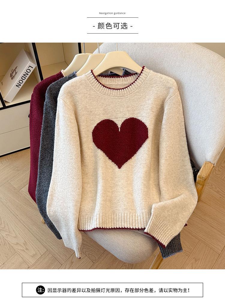 Descubre Otoño e Invierno Nuevo Sentido de Diseño Coreano Corazón Cuello Redondo Jersey Color Mohair Bloque de Color Suéter de Punto para Mujer