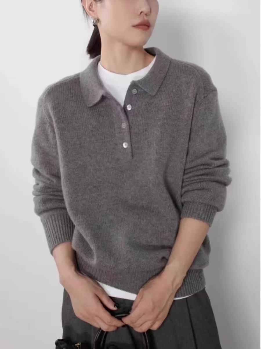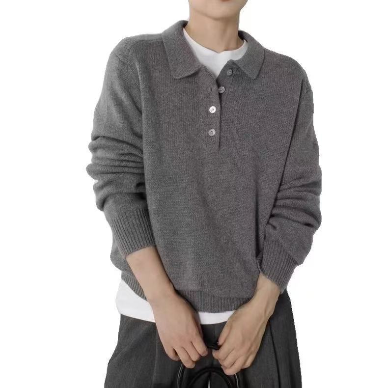 Nuevo Suéter de Lana Pura con Cuello POLO Otoño/Invierno para Mujer Estilo Europeo Cuello Vuelto Tejido Holgado Grueso Base Jersey