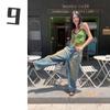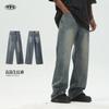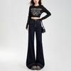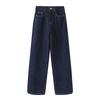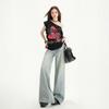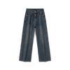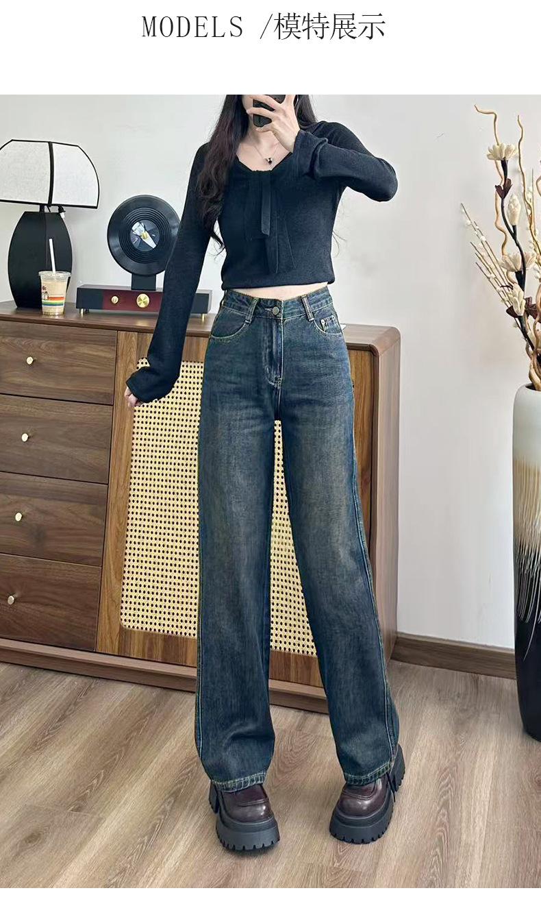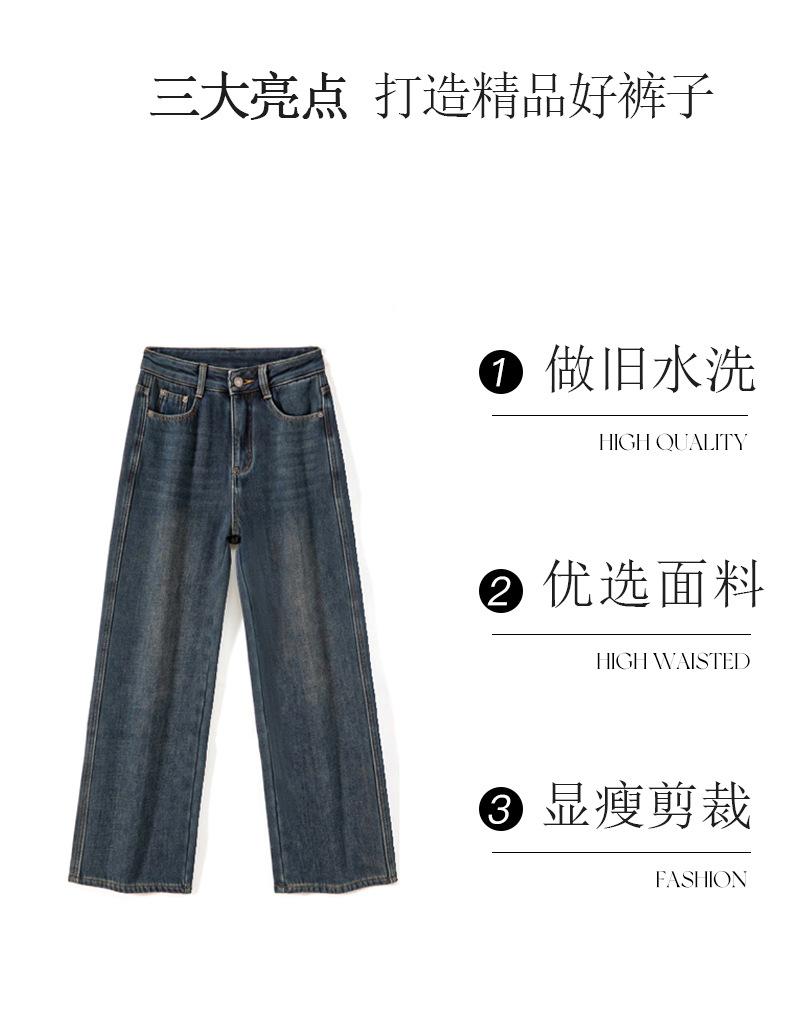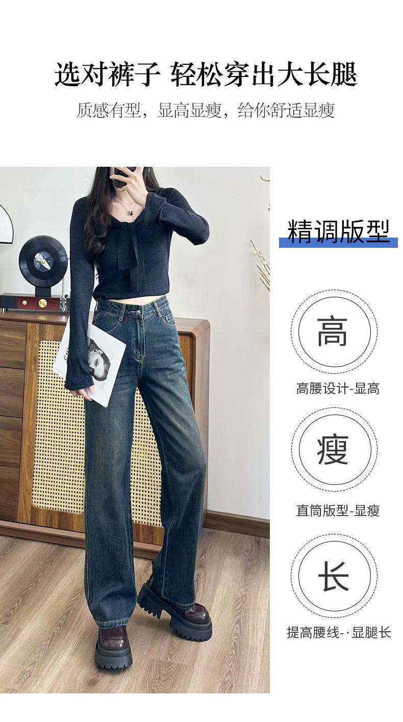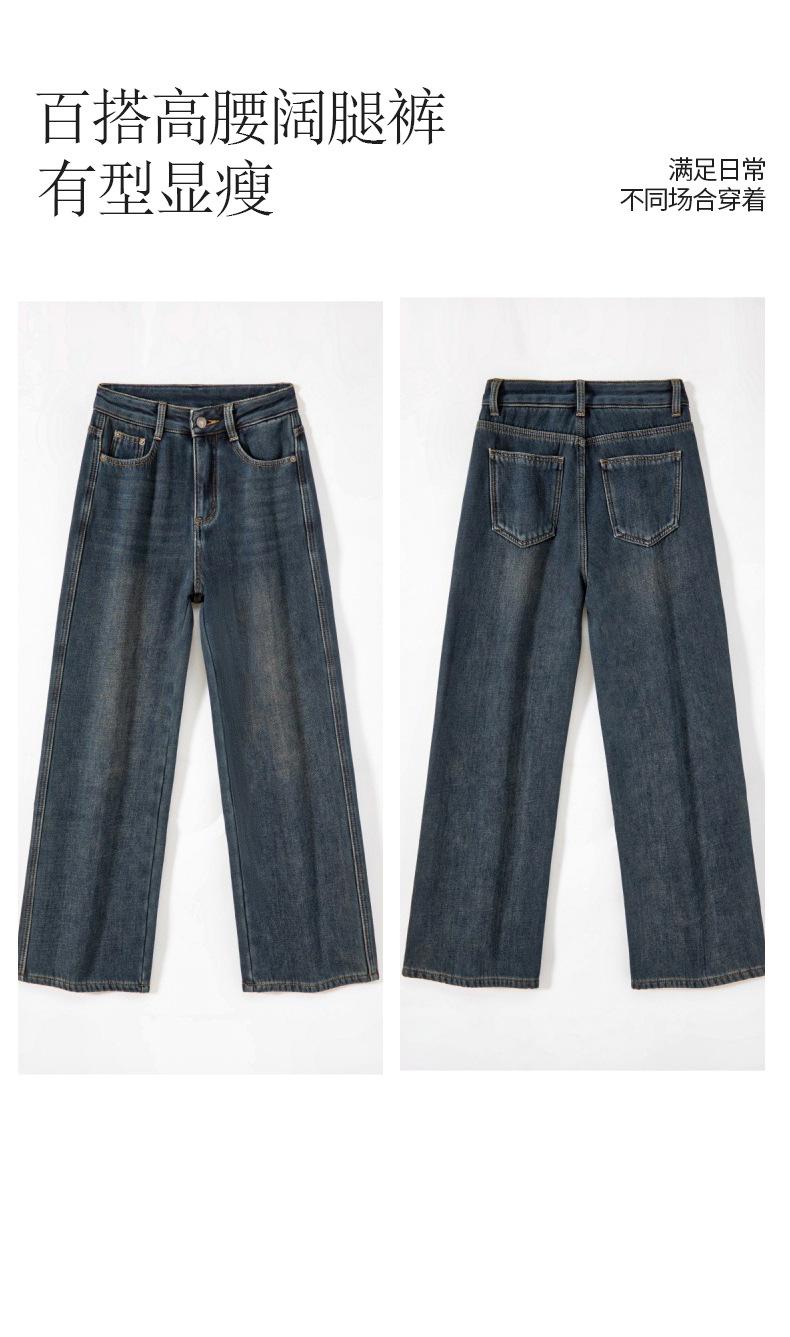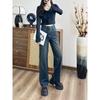 Jiawei 2025 Otoño Retro Pantalones de Mezclilla Lavados Mujer Diseño Cintura Alta Ajuste Slim Pantalones de Pierna Ancha Jeans Azul Niebla