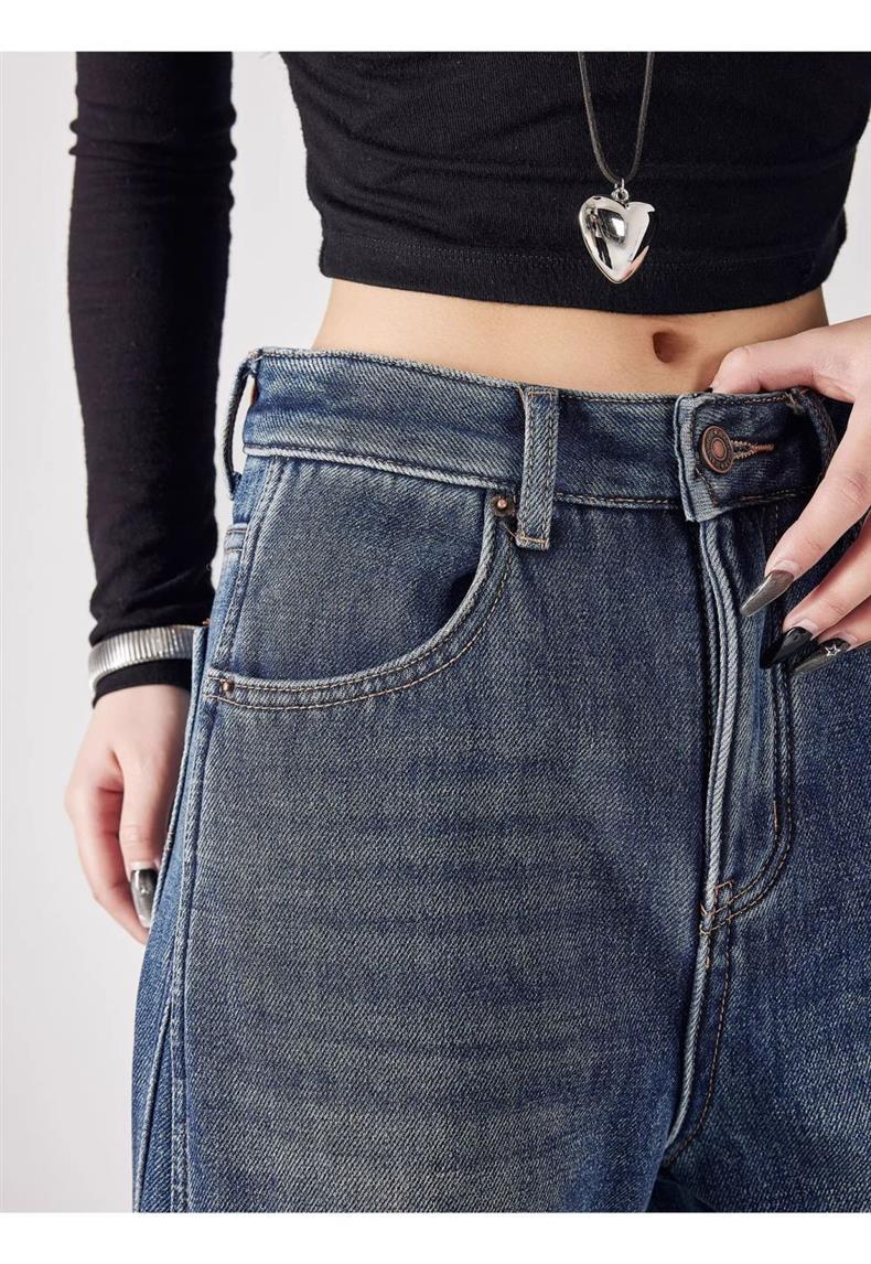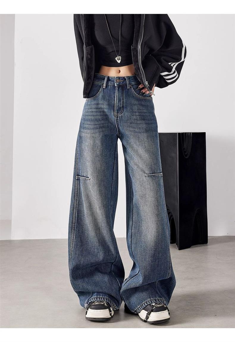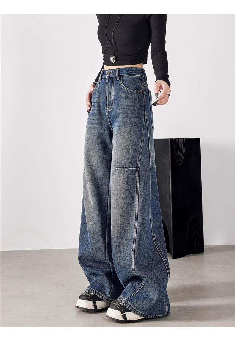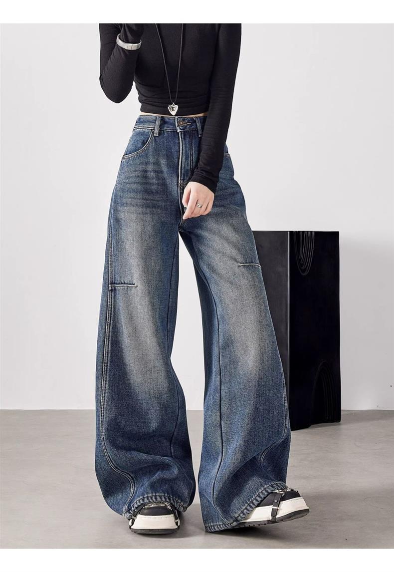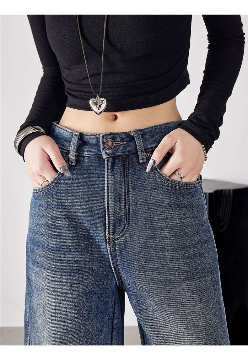 Pantalones de Pierna Ancha Street 2025 Americanos Sueltos Adelgazantes para Altas Nuevos Jeans Pantalones Cintura Alta Primavera Pantalones de Mujer Largo Hasta el Piso Retro Show