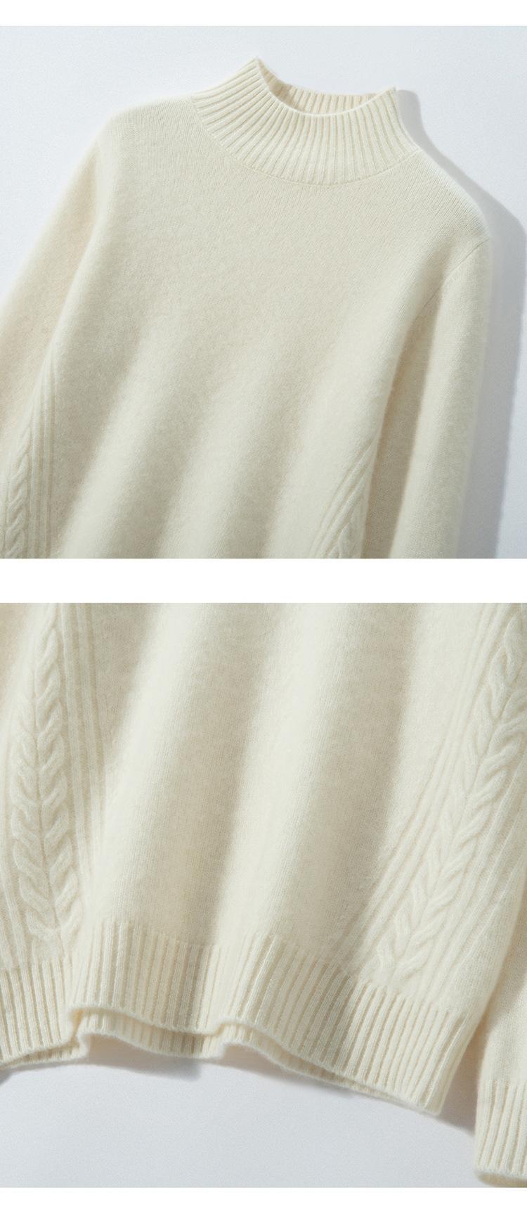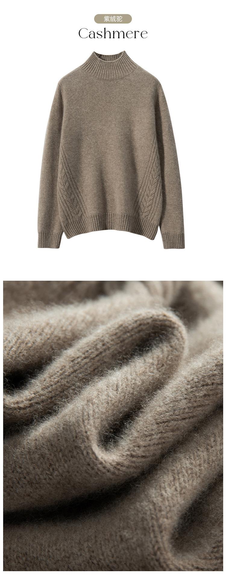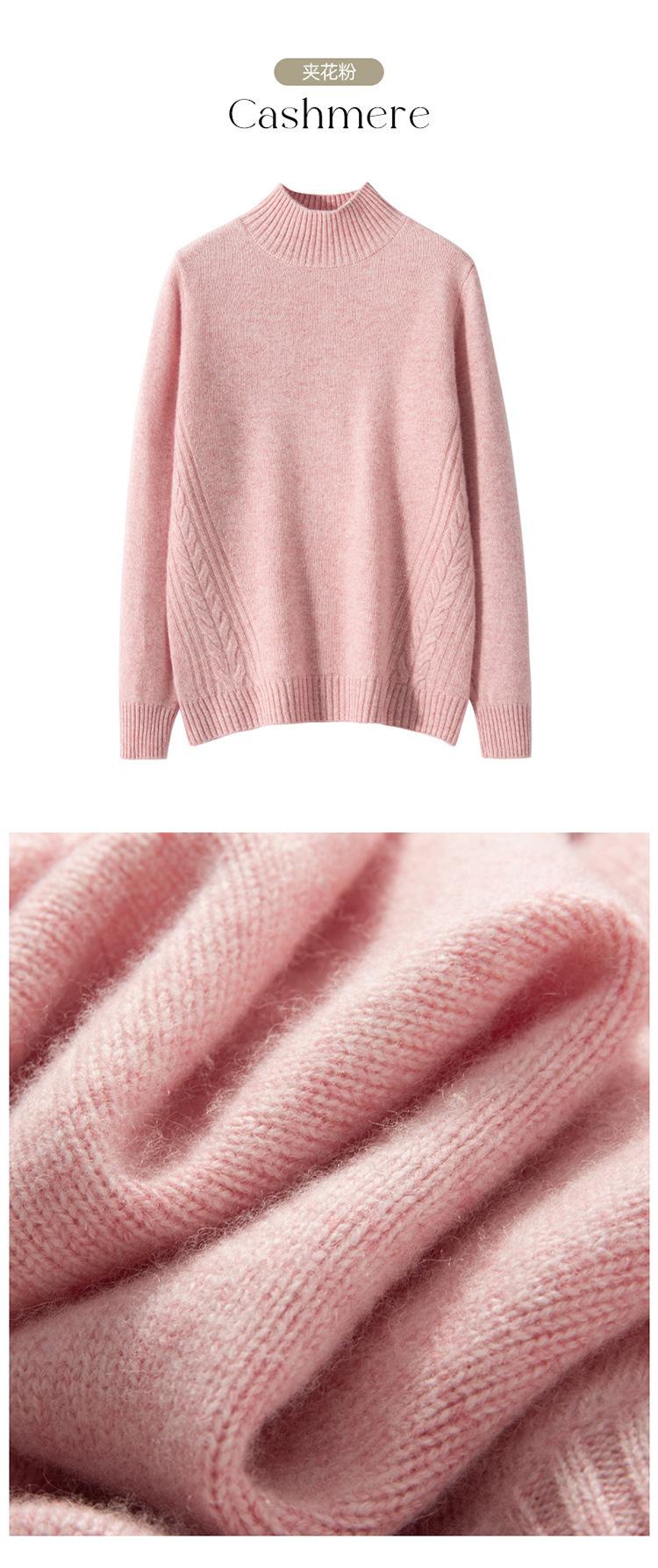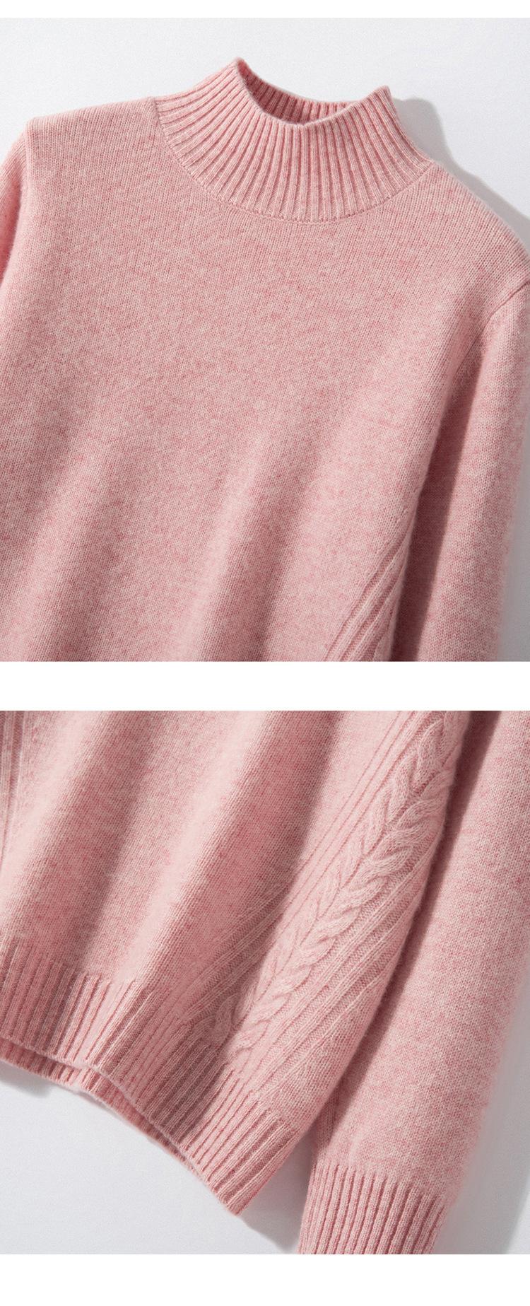 Suéter de cachemira de color sólido con cuello alto y punto de cable para mujer, suéter de punto de manga larga, top grueso