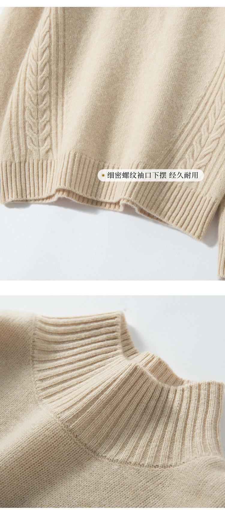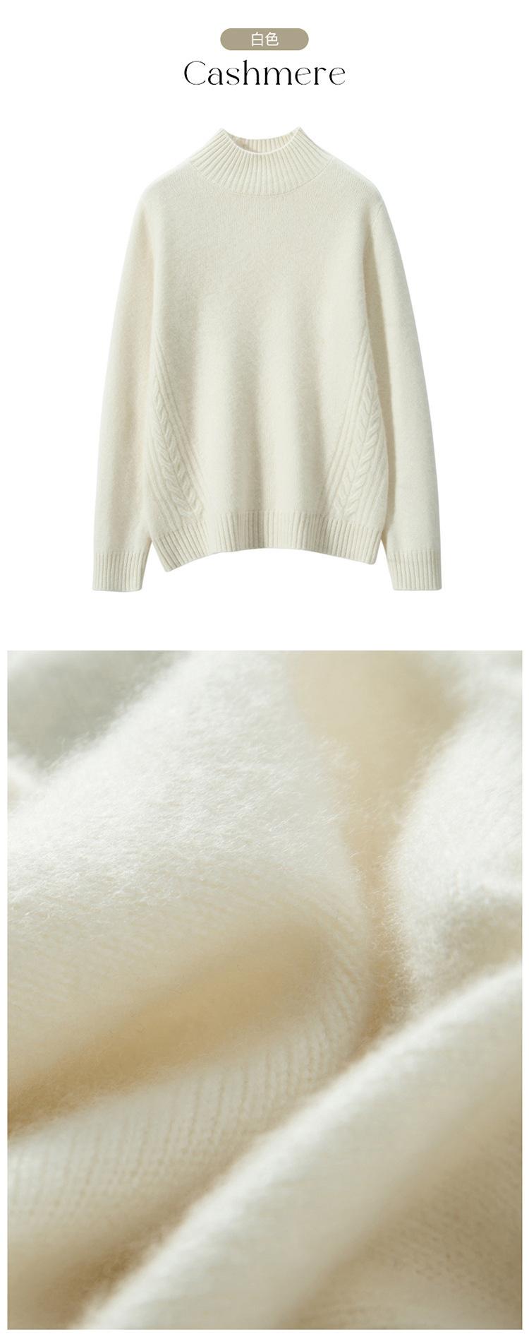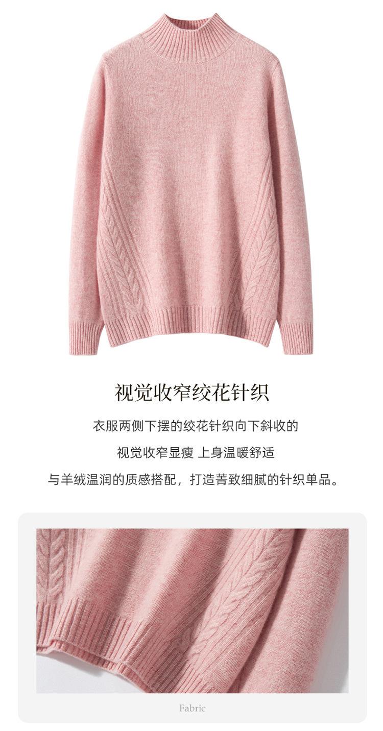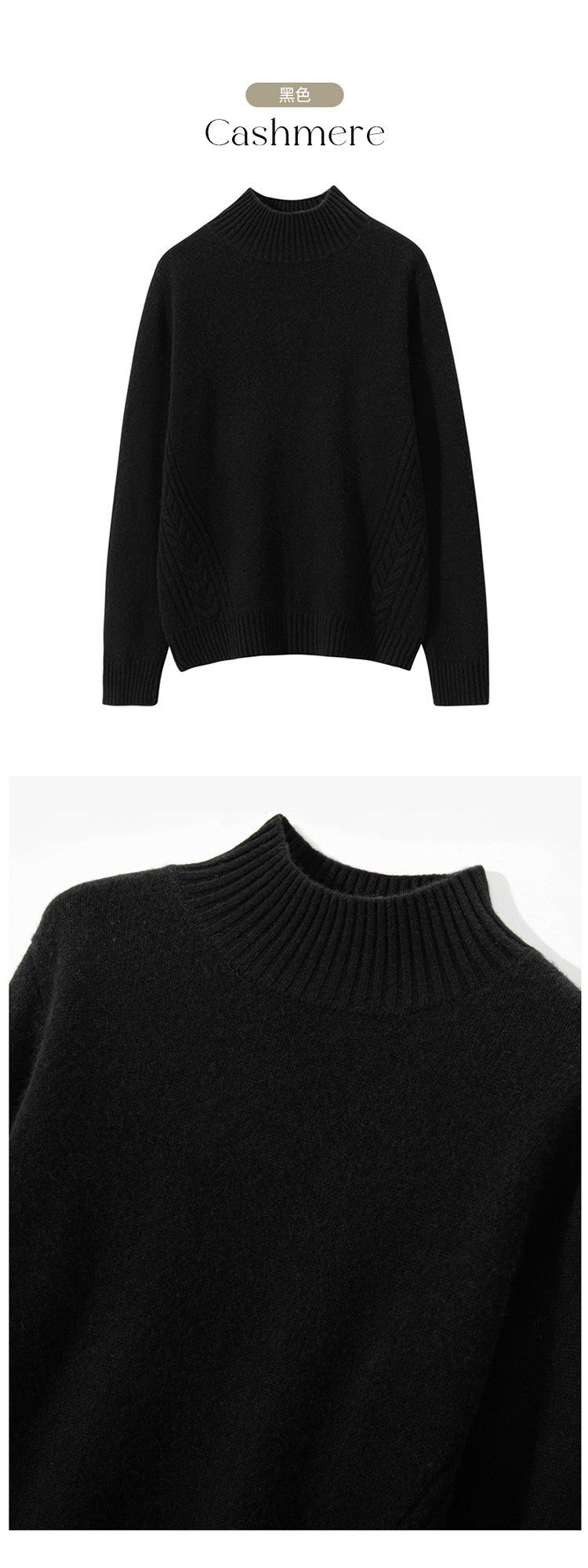 Suéter de cachemira de color sólido con cuello alto y punto de cable para mujer, suéter de punto de manga larga, top grueso