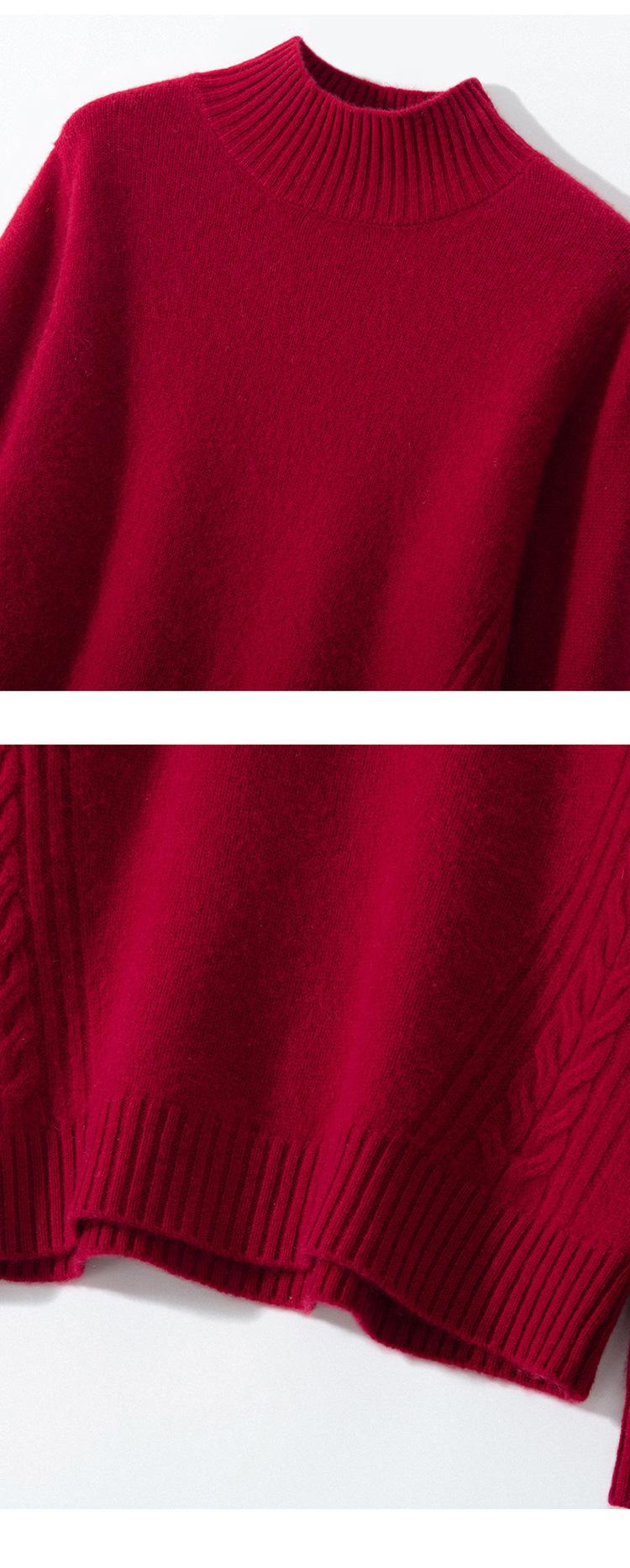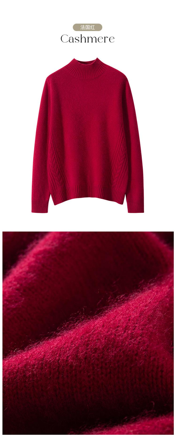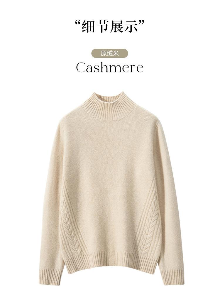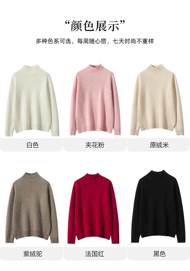 Suéter de cachemira de color sólido con cuello alto y punto de cable para mujer, suéter de punto de manga larga, top grueso
