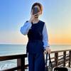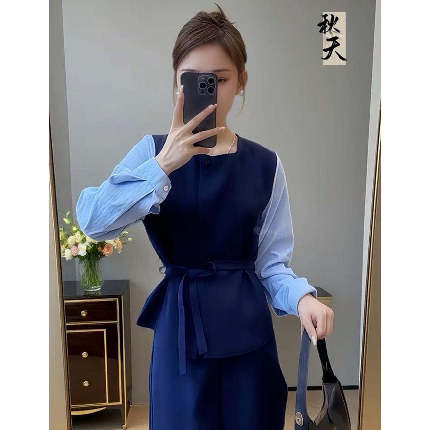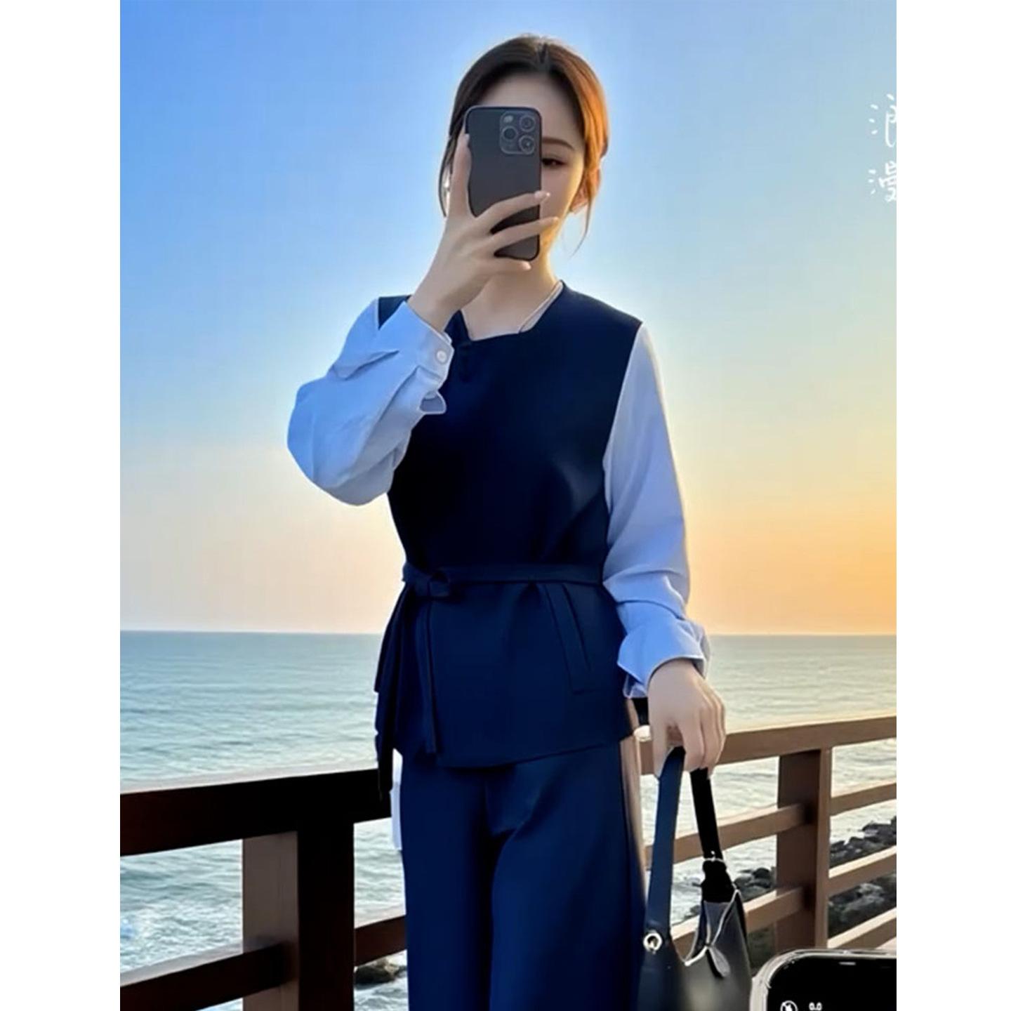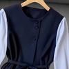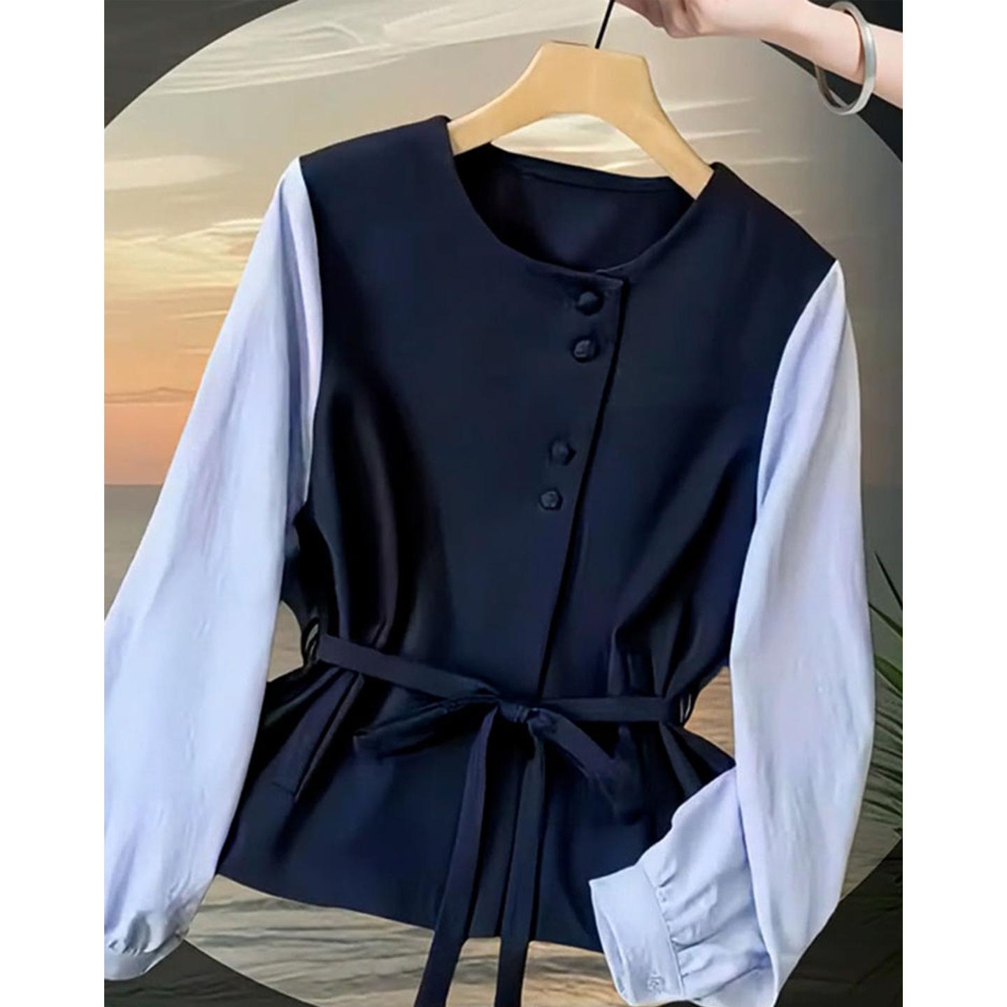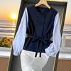 2025 Otoño/Invierno Estilo Coreano Temperamento Versátil Patchwork Falso Dos Piezas Francés Casual Blazer Chaqueta Corta de Moda Mujeres A6489