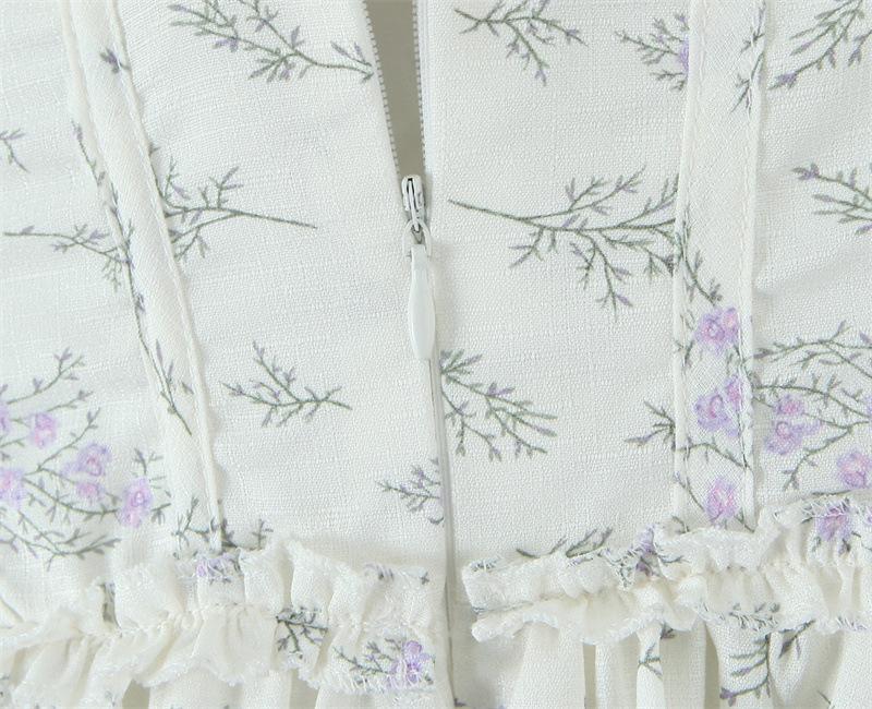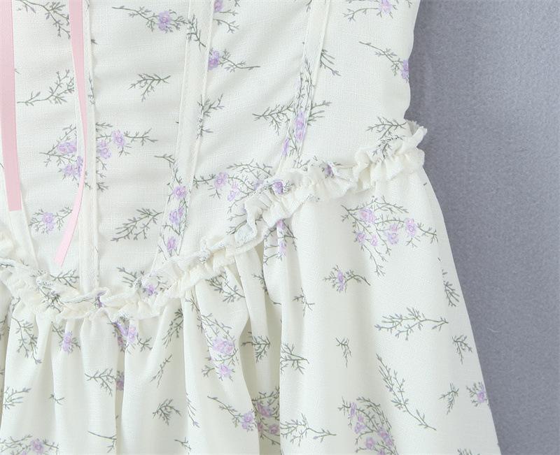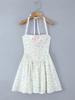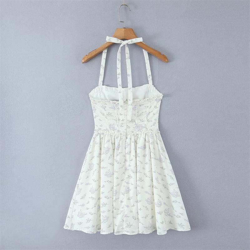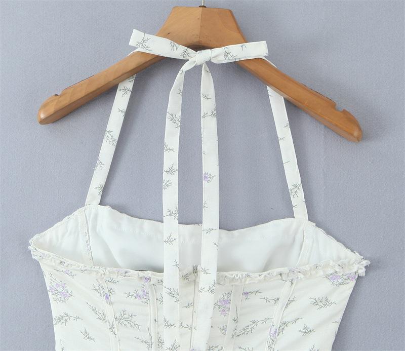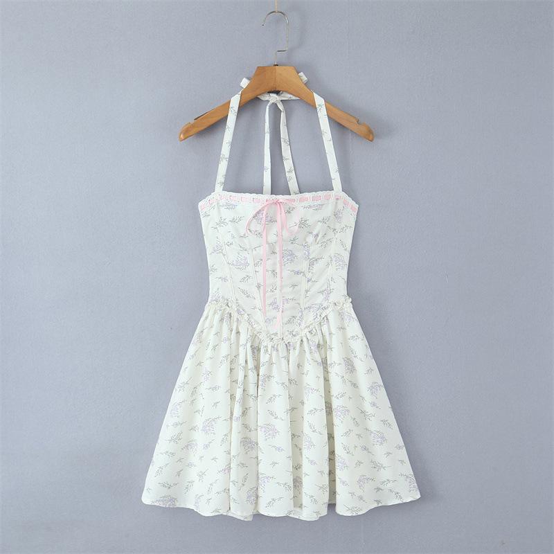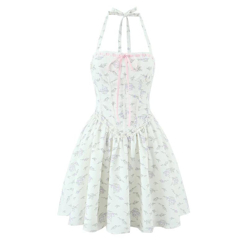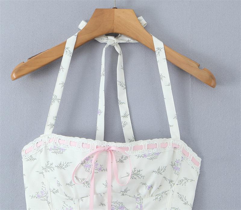 Vestido Sexy Dulce de Encaje con Cinta Floral Estilo Francés Verano Cintura Ajustada Corte Slim Chica Caliente Falda Halter