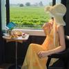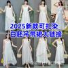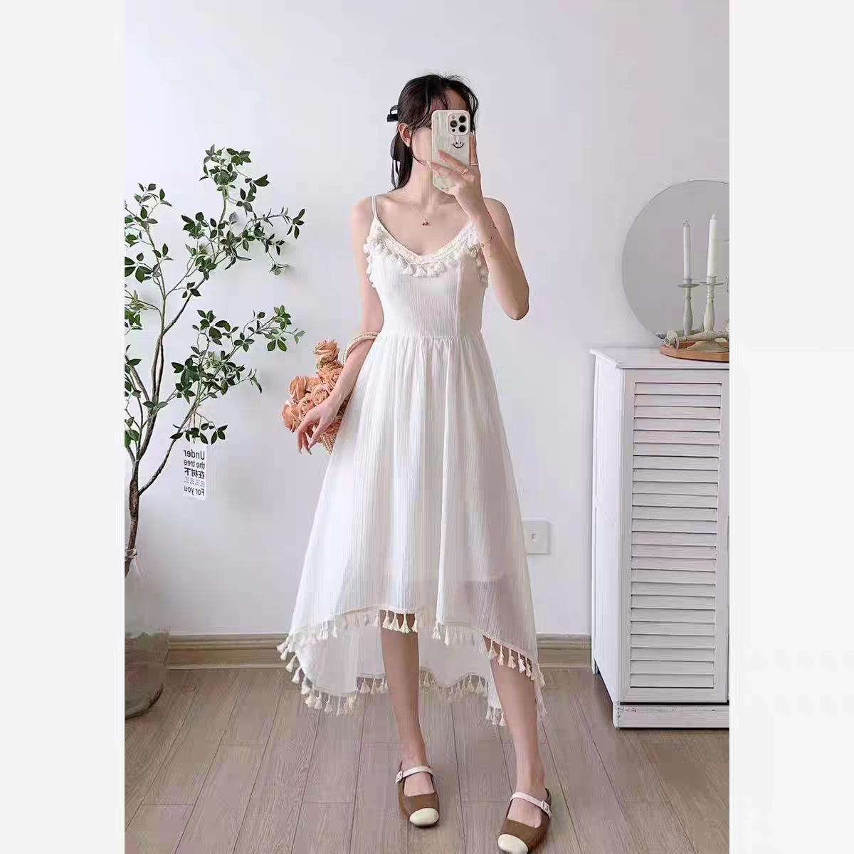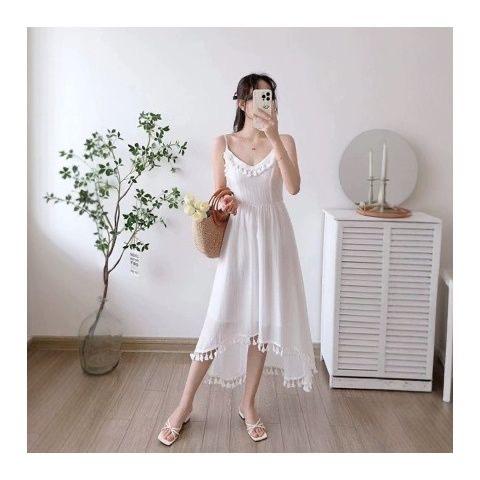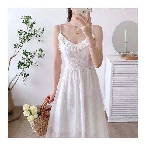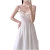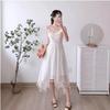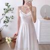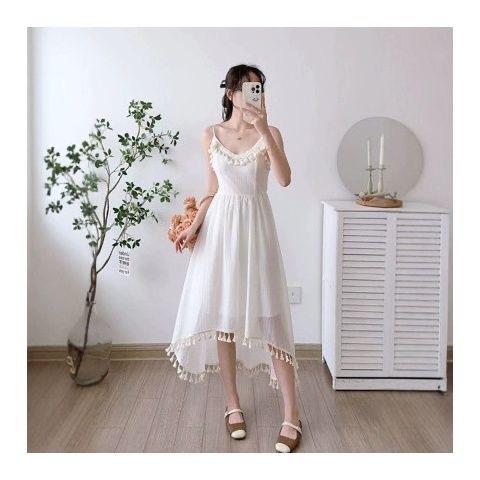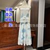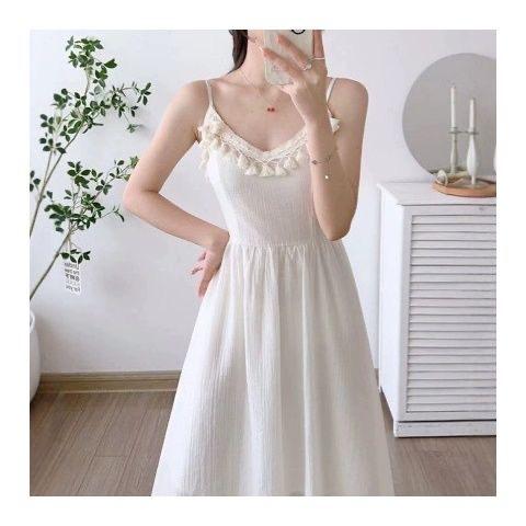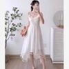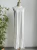 Vestido de Tirantes Blanco Tie-Dye Embrión Hecho a Mano Teñido con Plantas Teñido de Azul Vestido Étnico de Viaje Vestido con Cuello en V