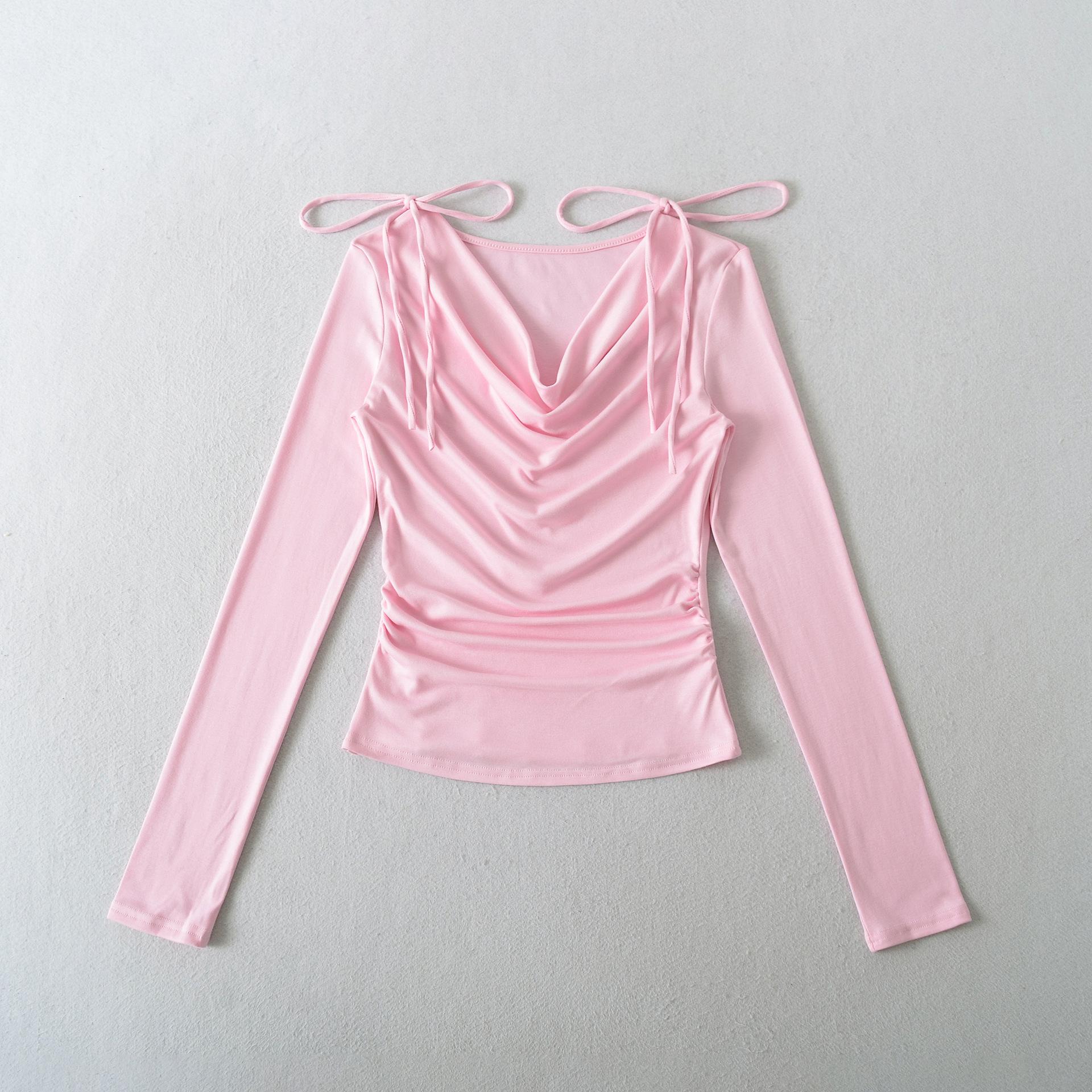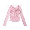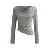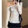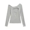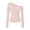 992-Chica Picante Estilo Deseo Puro Manga Larga Un Hombro Moda Camiseta Mujer 2025 Nuevo Estilo Europeo y Americano Sexy Top Ajustado