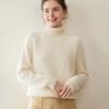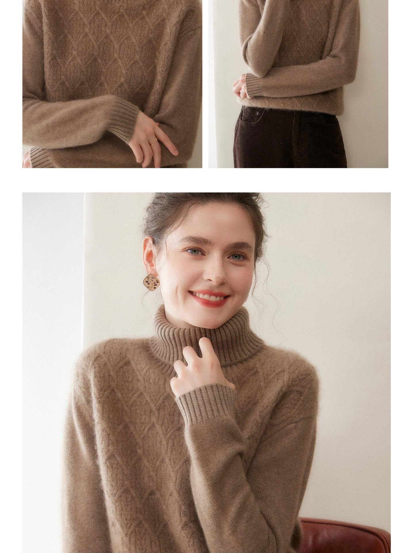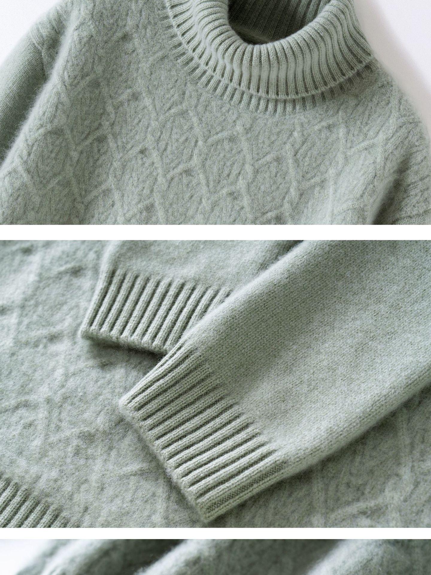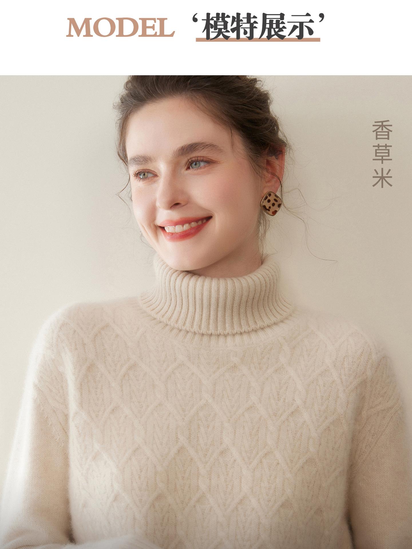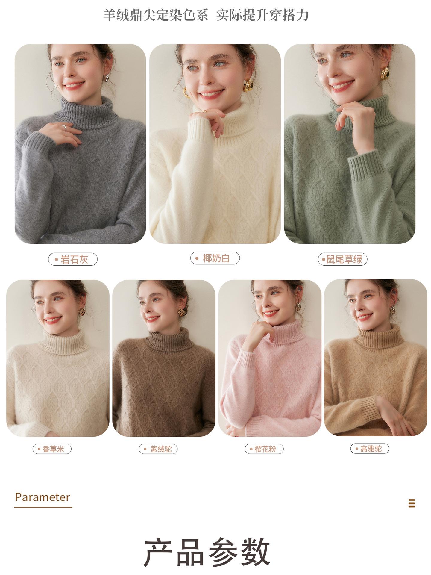 Nueva Camiseta Base de Punto de Cachemira de Color Sólido para Mujer Otoño/Invierno Holgada Adelgazante Gruesa Cuello Alto Diamante Suéter Ropa Interior