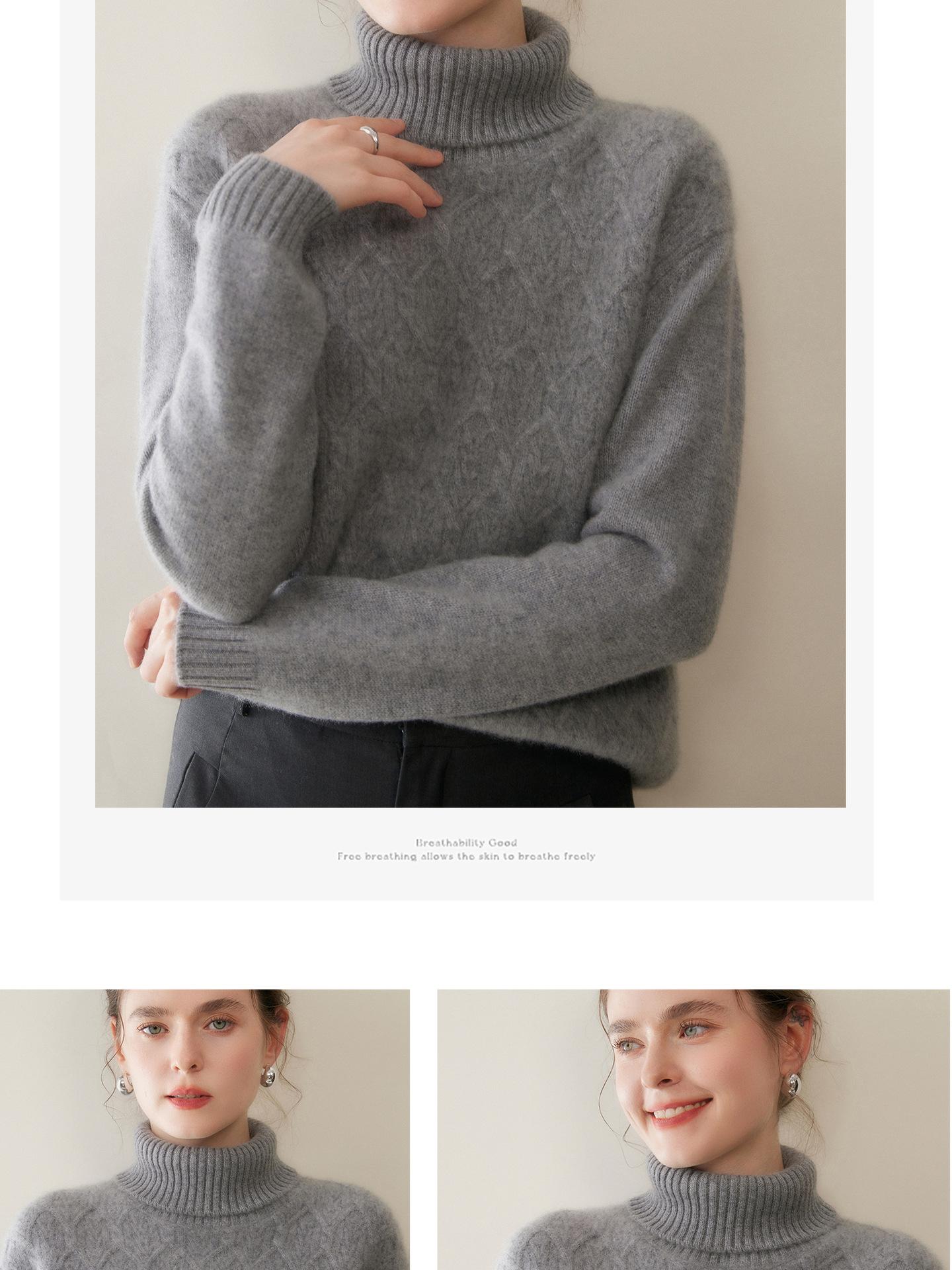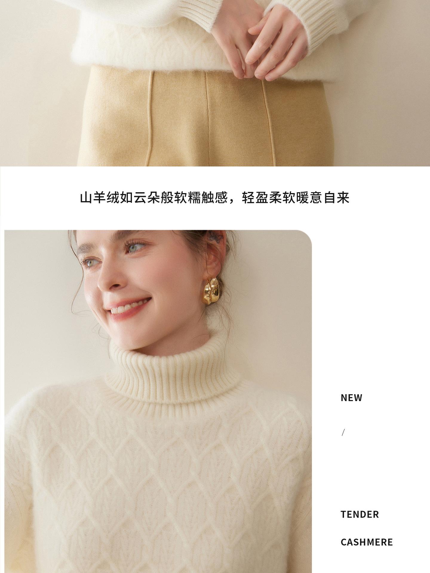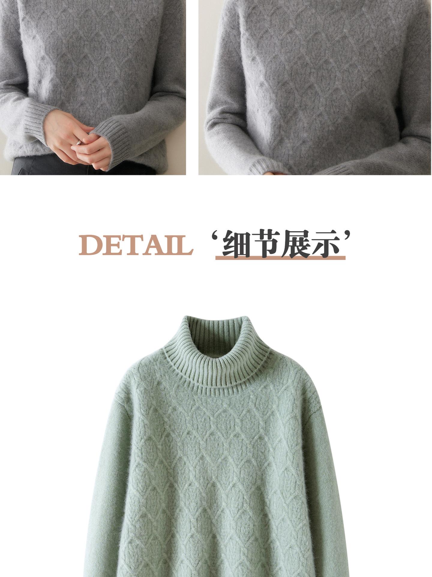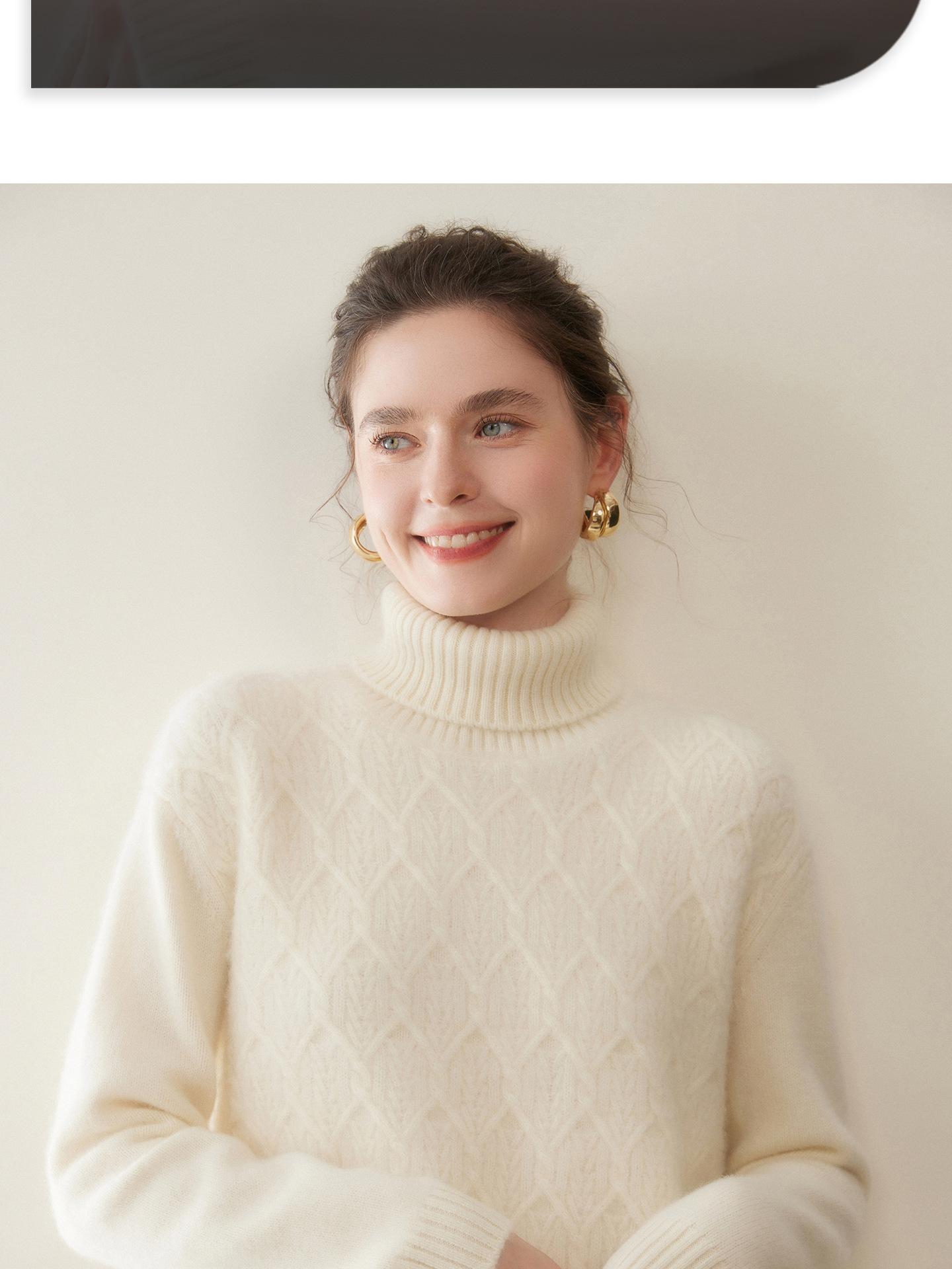 Nueva Camiseta Base de Punto de Cachemira de Color Sólido para Mujer Otoño/Invierno Holgada Adelgazante Gruesa Cuello Alto Diamante Suéter Ropa Interior
