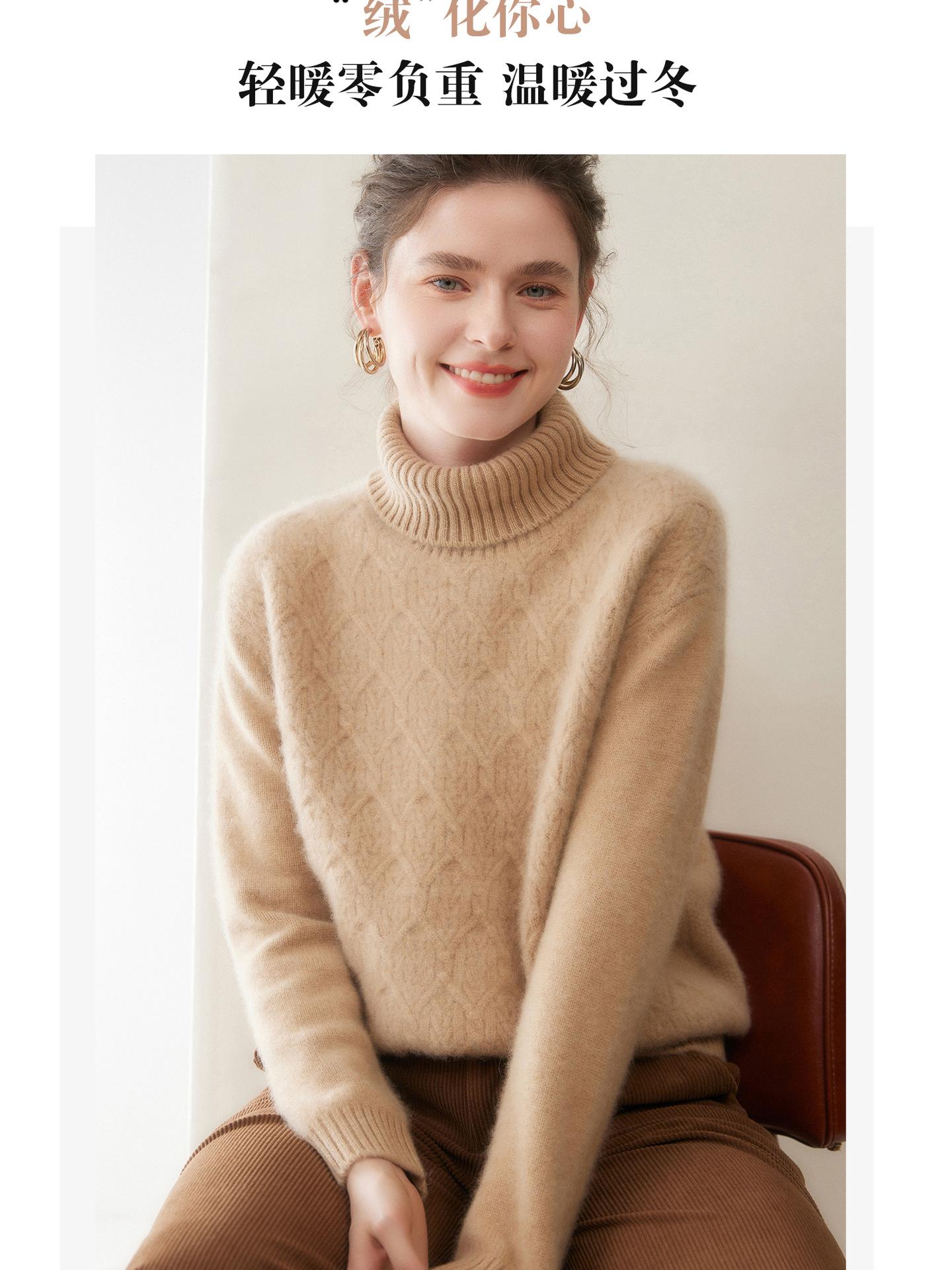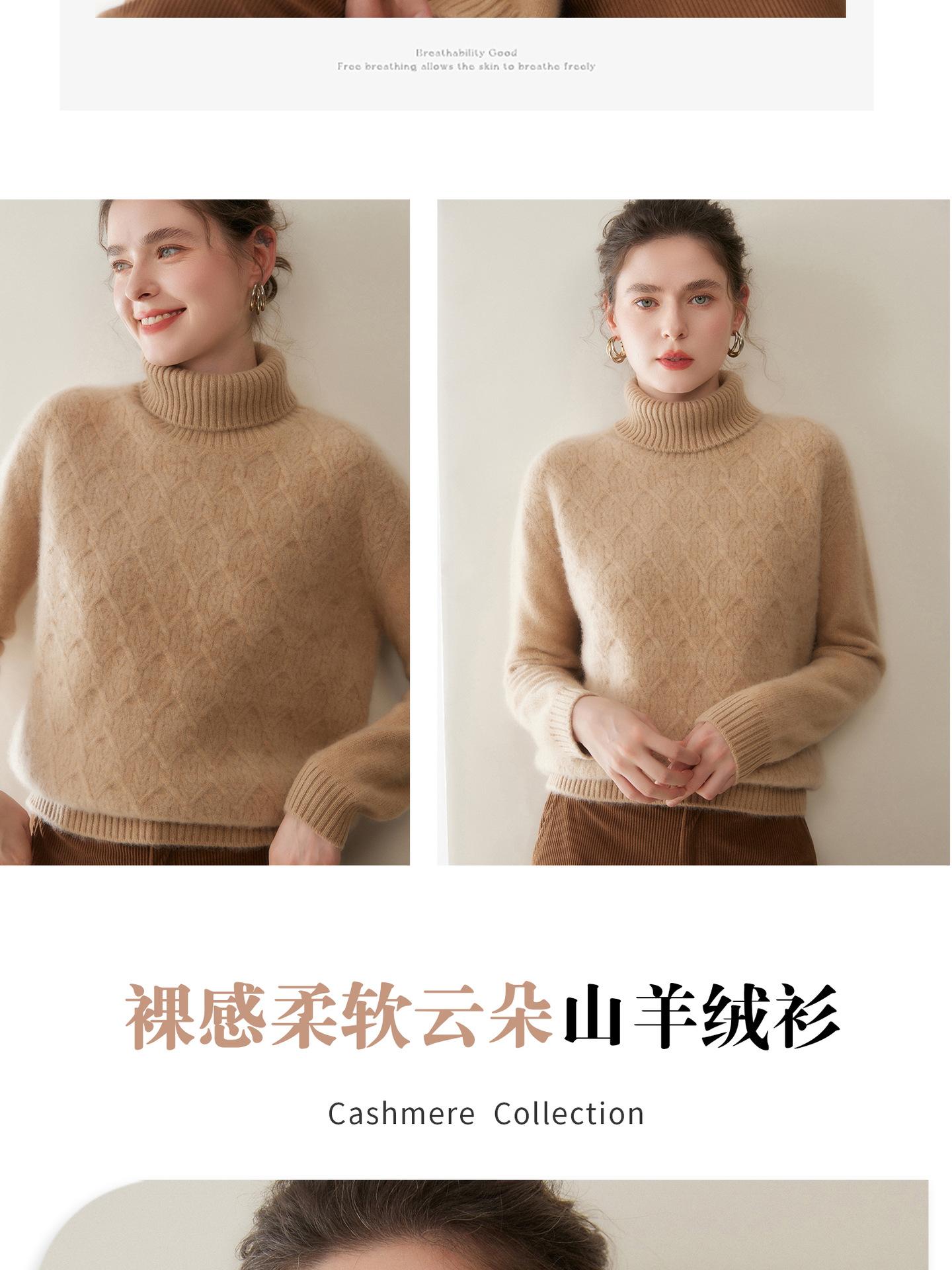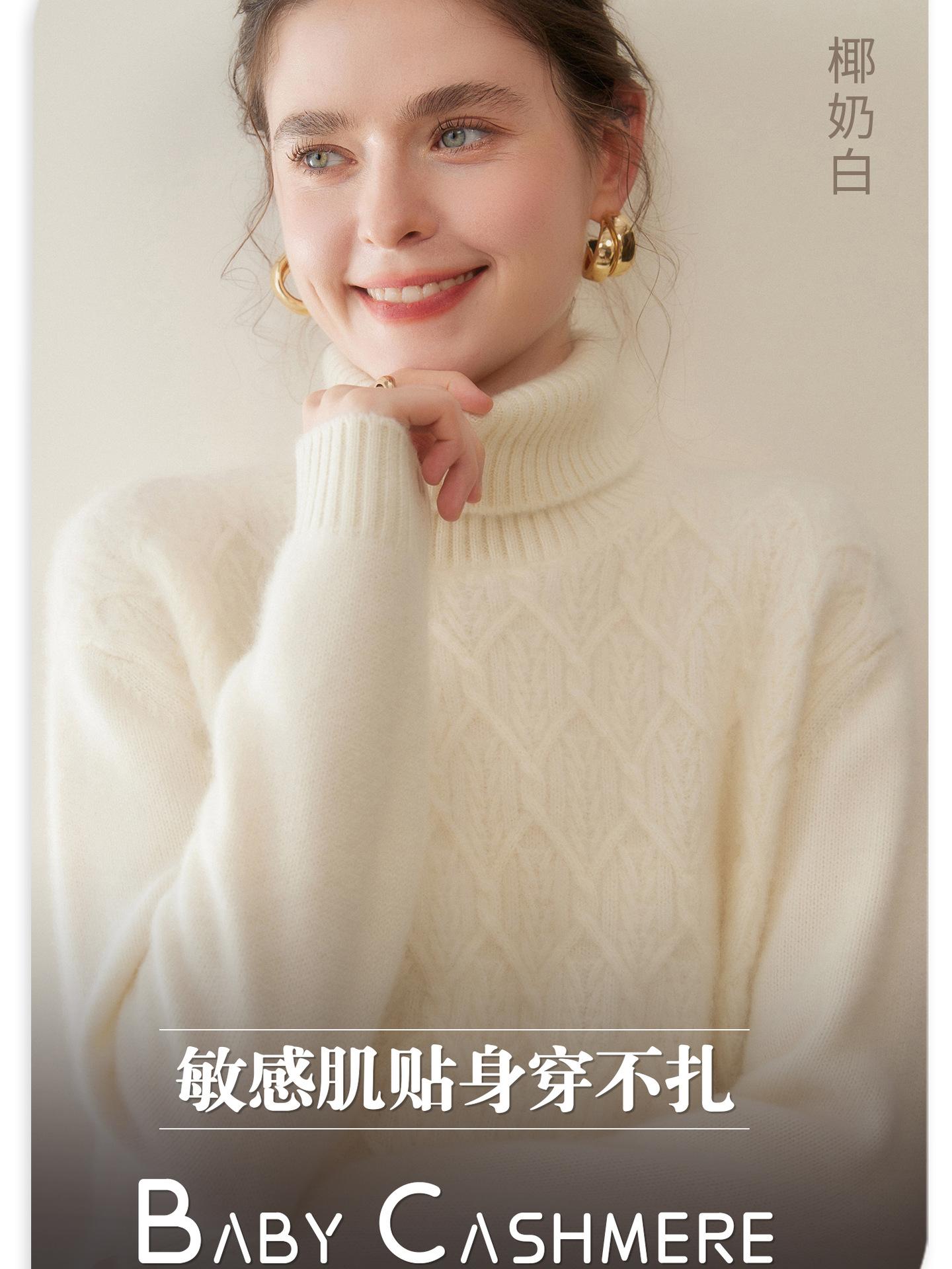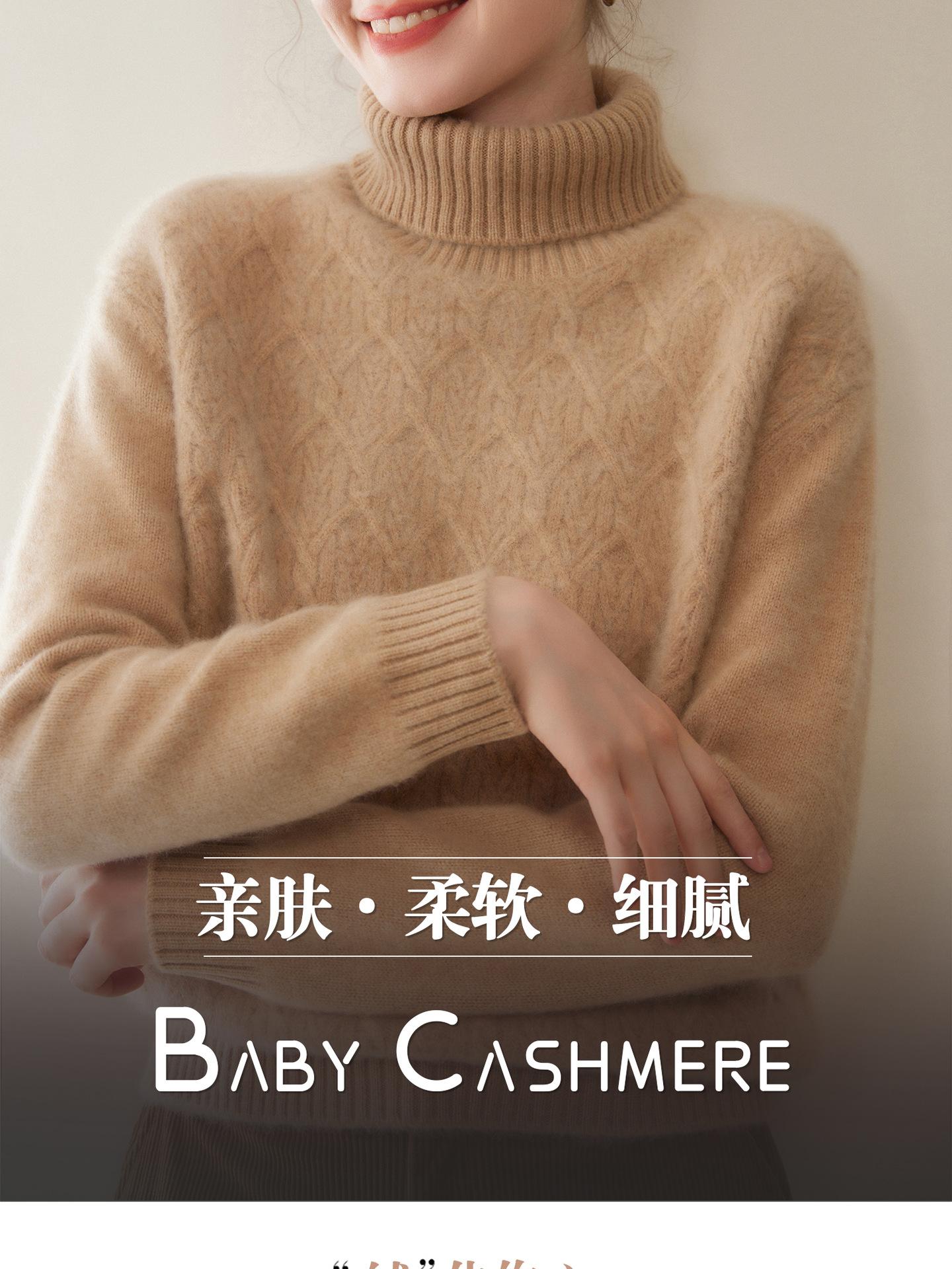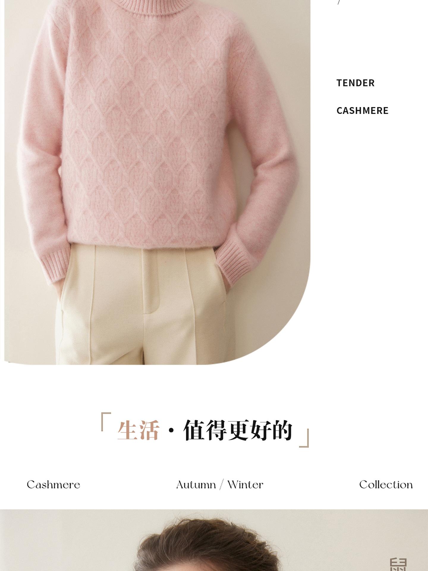 Nueva Camiseta Base de Punto de Cachemira de Color Sólido para Mujer Otoño/Invierno Holgada Adelgazante Gruesa Cuello Alto Diamante Suéter Ropa Interior