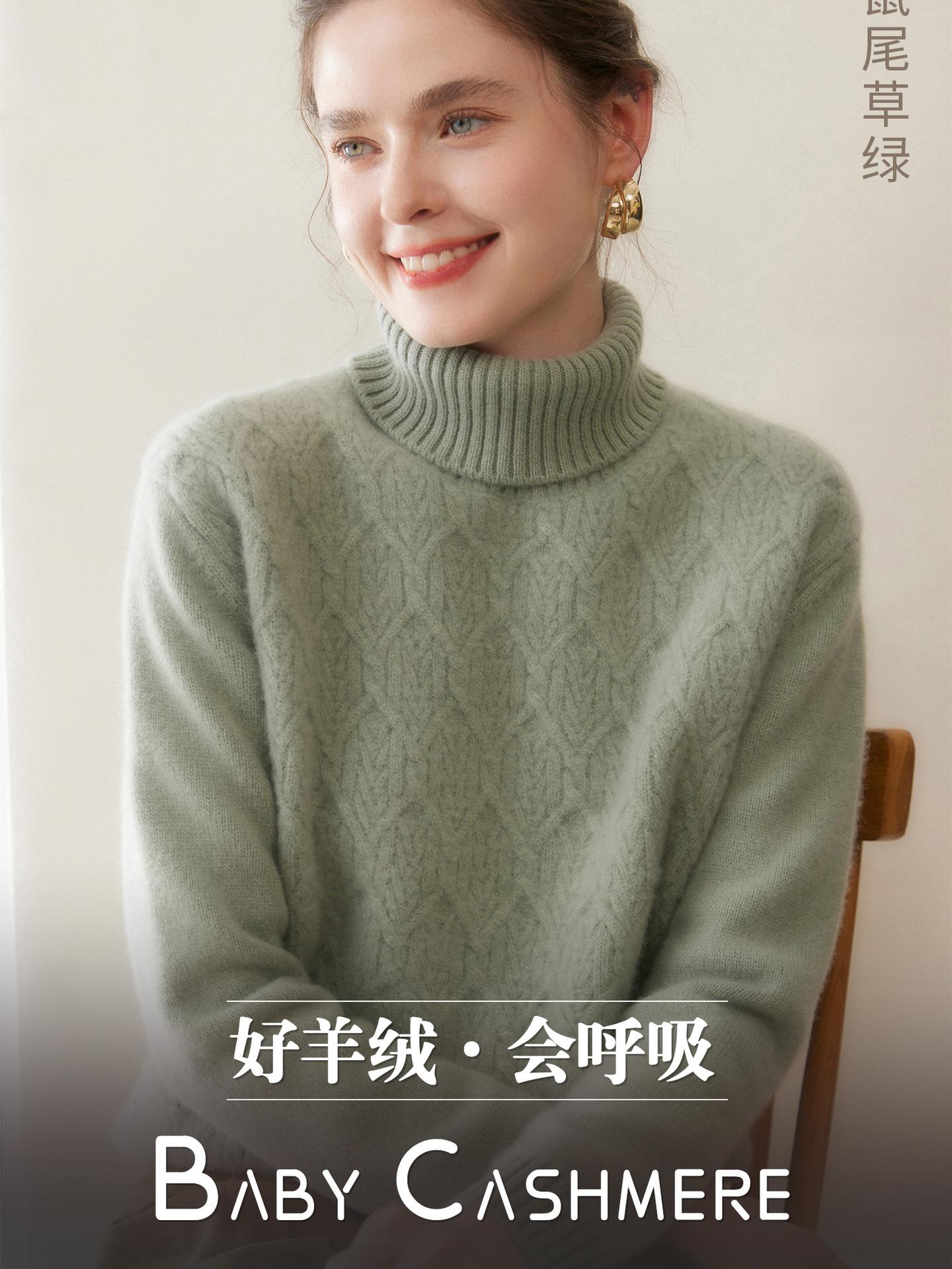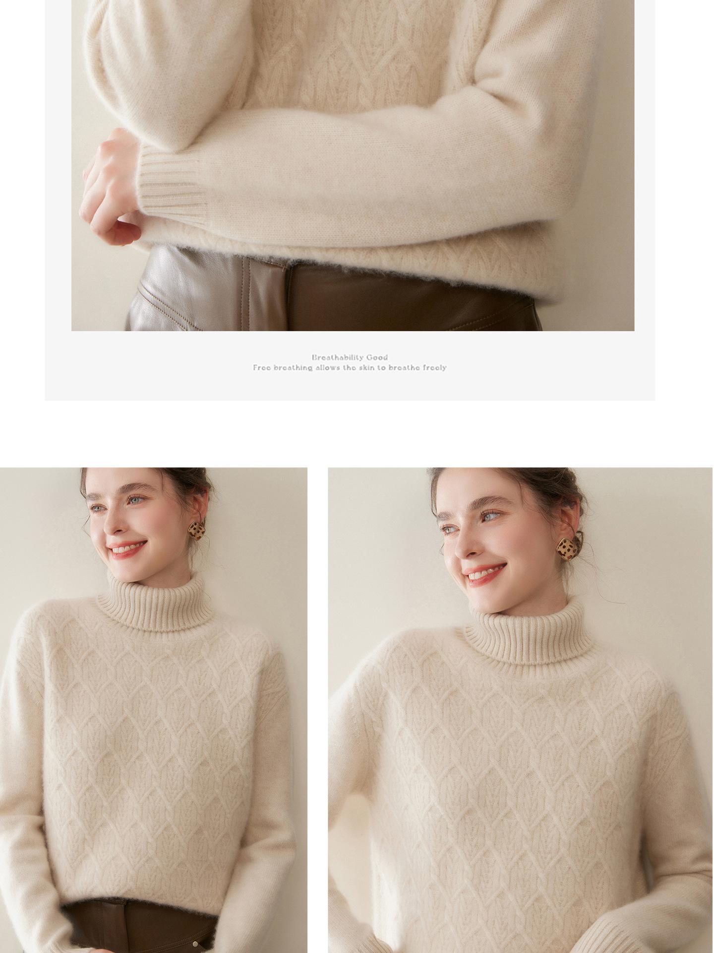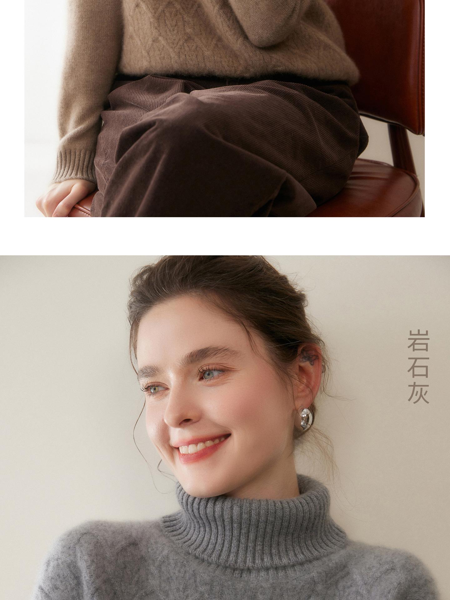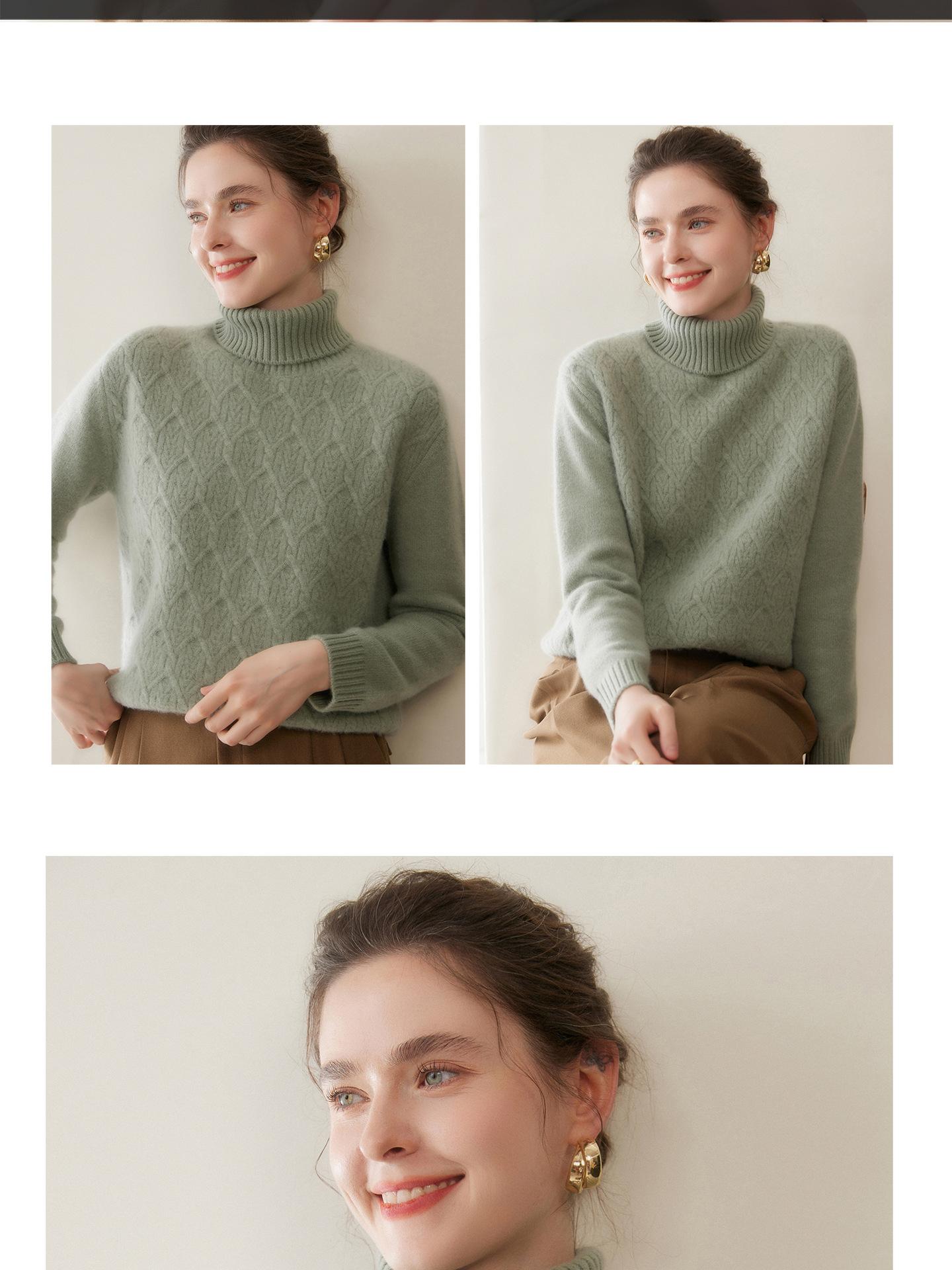 Nueva Camiseta Base de Punto de Cachemira de Color Sólido para Mujer Otoño/Invierno Holgada Adelgazante Gruesa Cuello Alto Diamante Suéter Ropa Interior