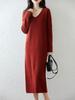 Compra Vestido 100% Lana Pura para Mujer Otoño e Invierno 2025 Cuello en V Francés Holgado Largo hasta la Rodilla Vestido de Punto Básico al por mayor en Joom.pro