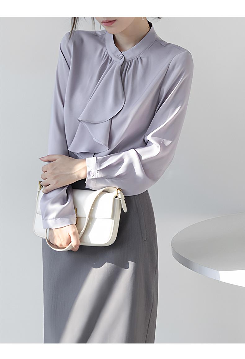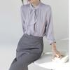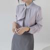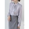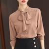 Camisa elegante francesa con lazo para mujer otoño nuevo diseño nicho suave camisa temperamento commuter top de manga larga