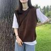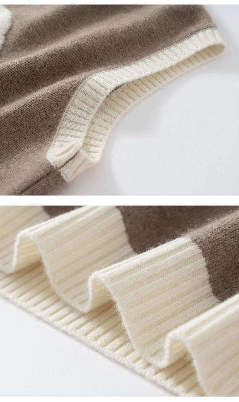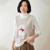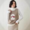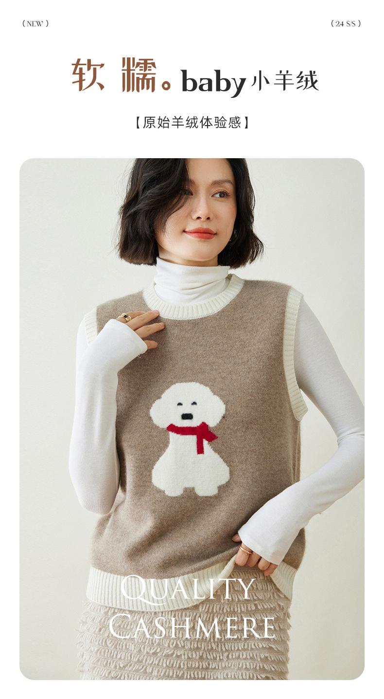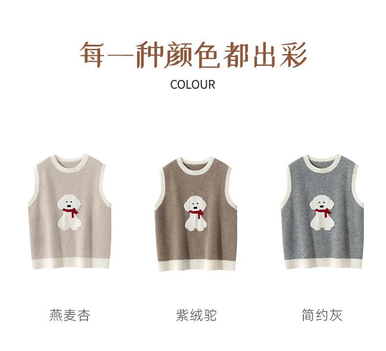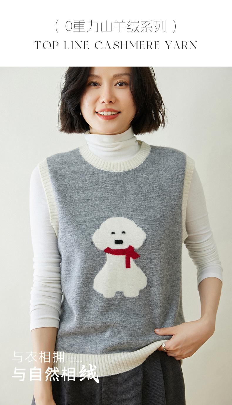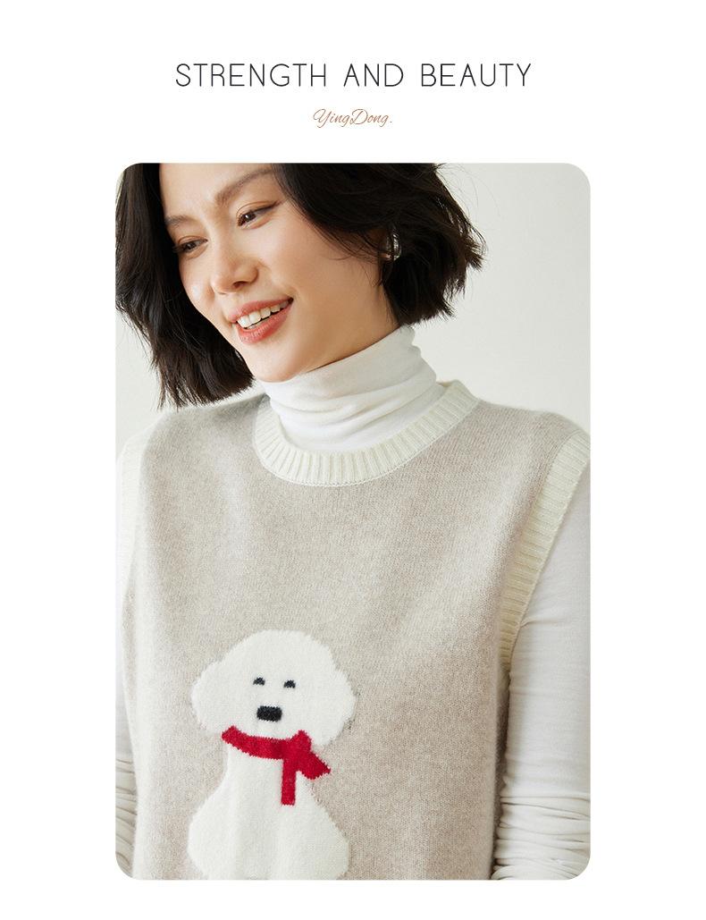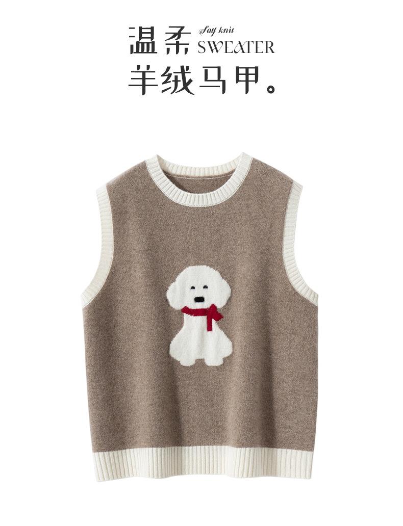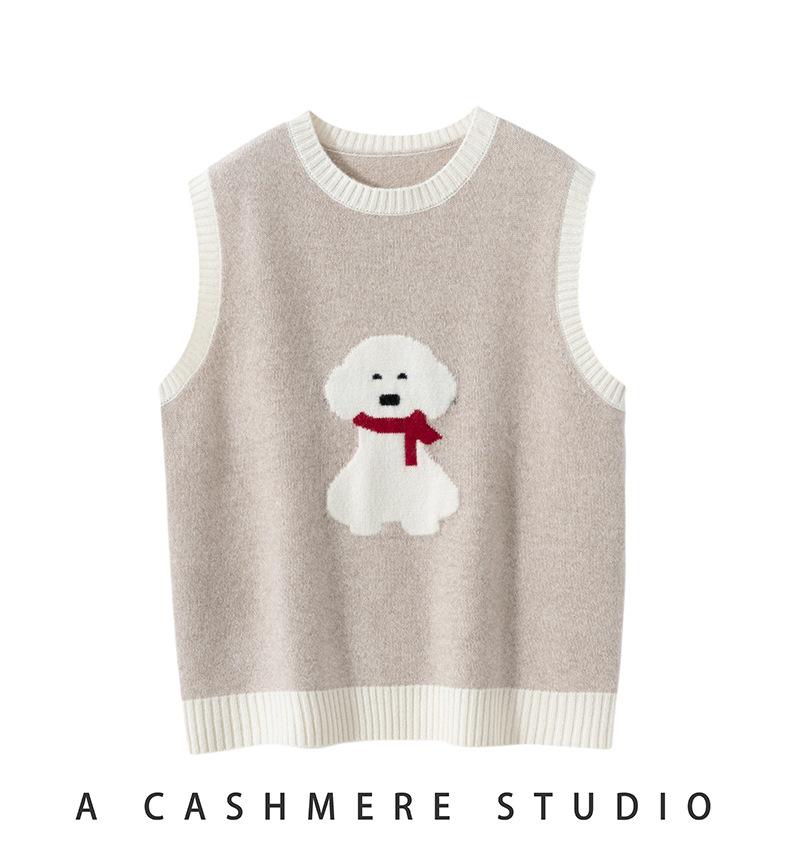 25 Otoño/Invierno Nuevo Chaleco de Cachemira sin Mangas para Mujer Cuello Redondo Jacquard de Cachorros Suéter de Punto Jersey sin Mangas Top Bloque de Color Chaleco