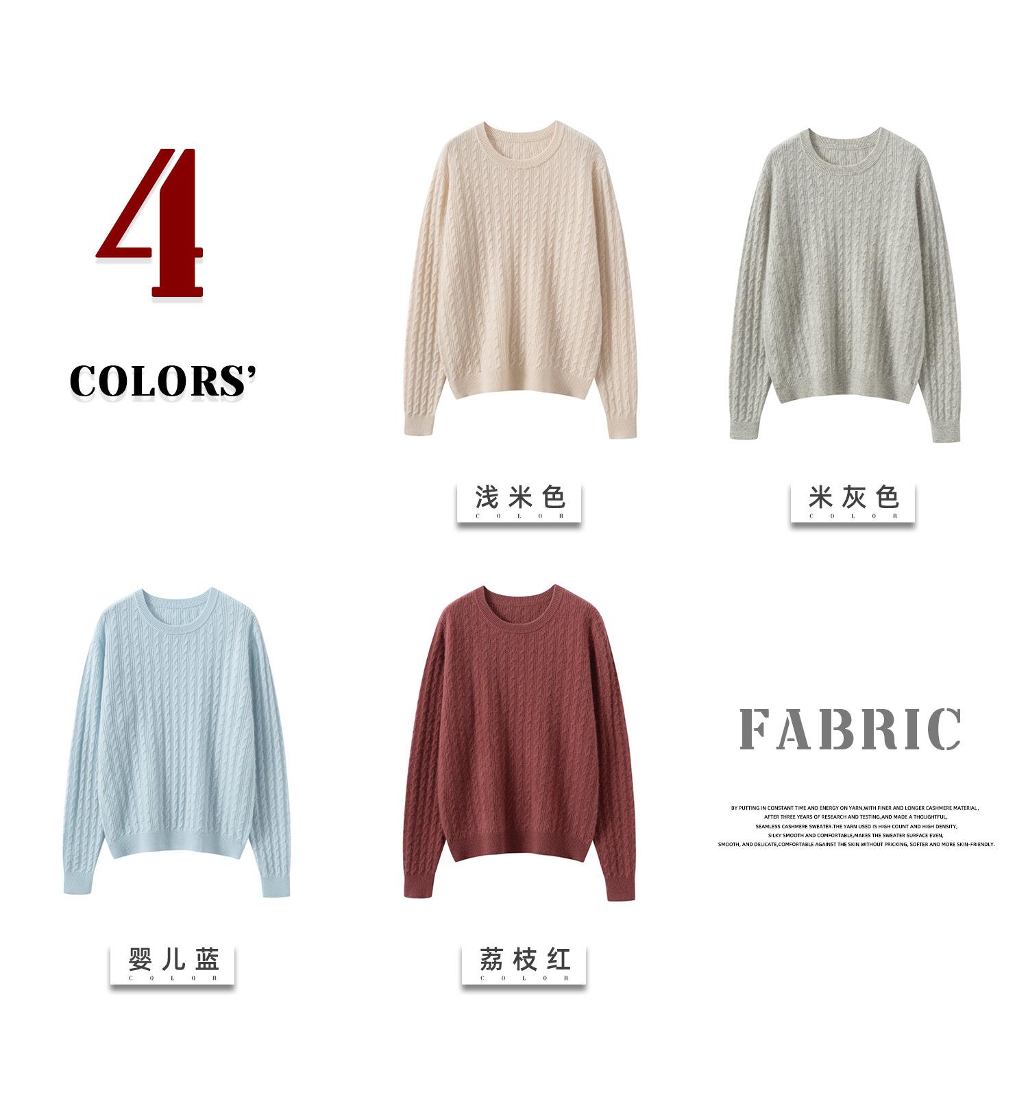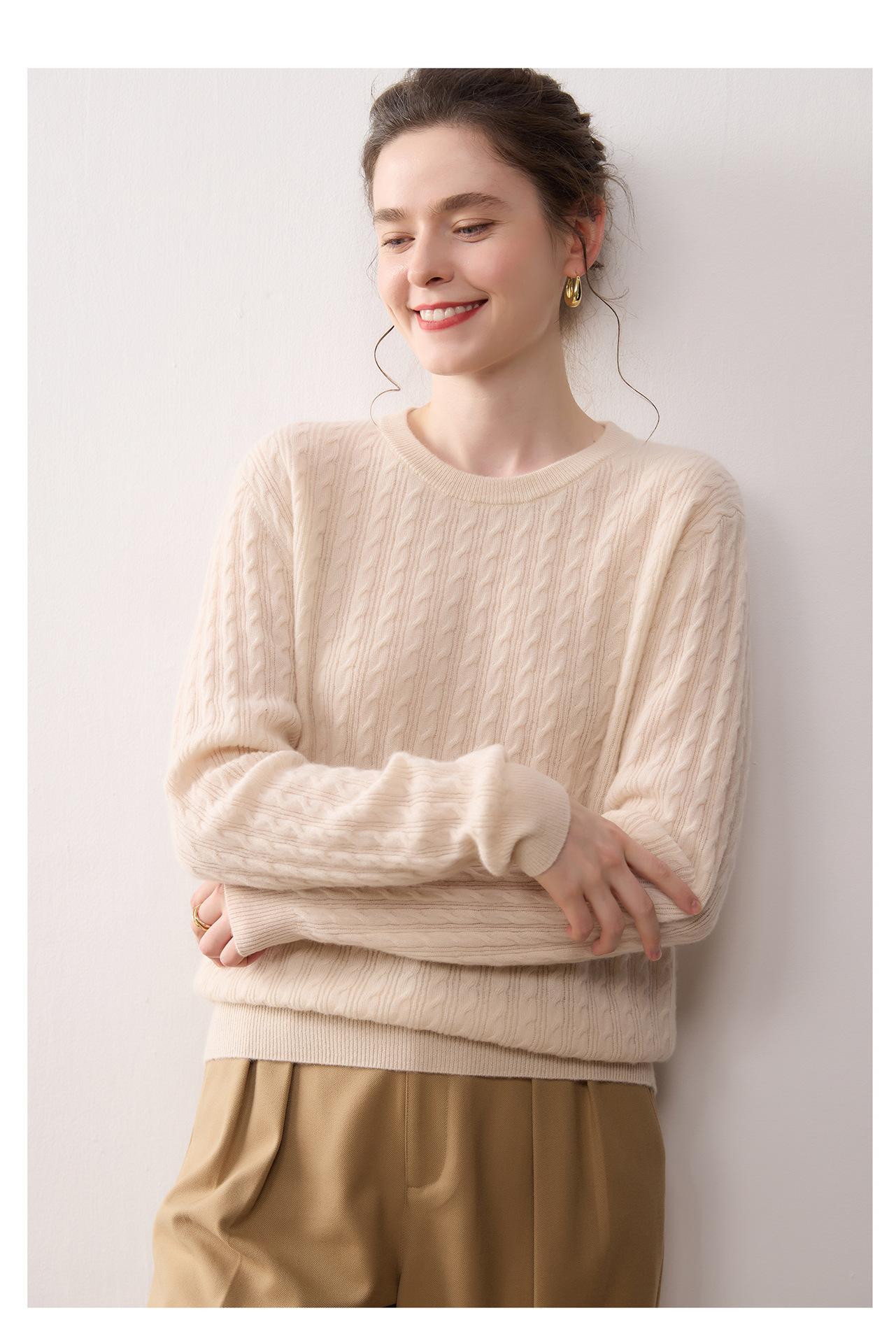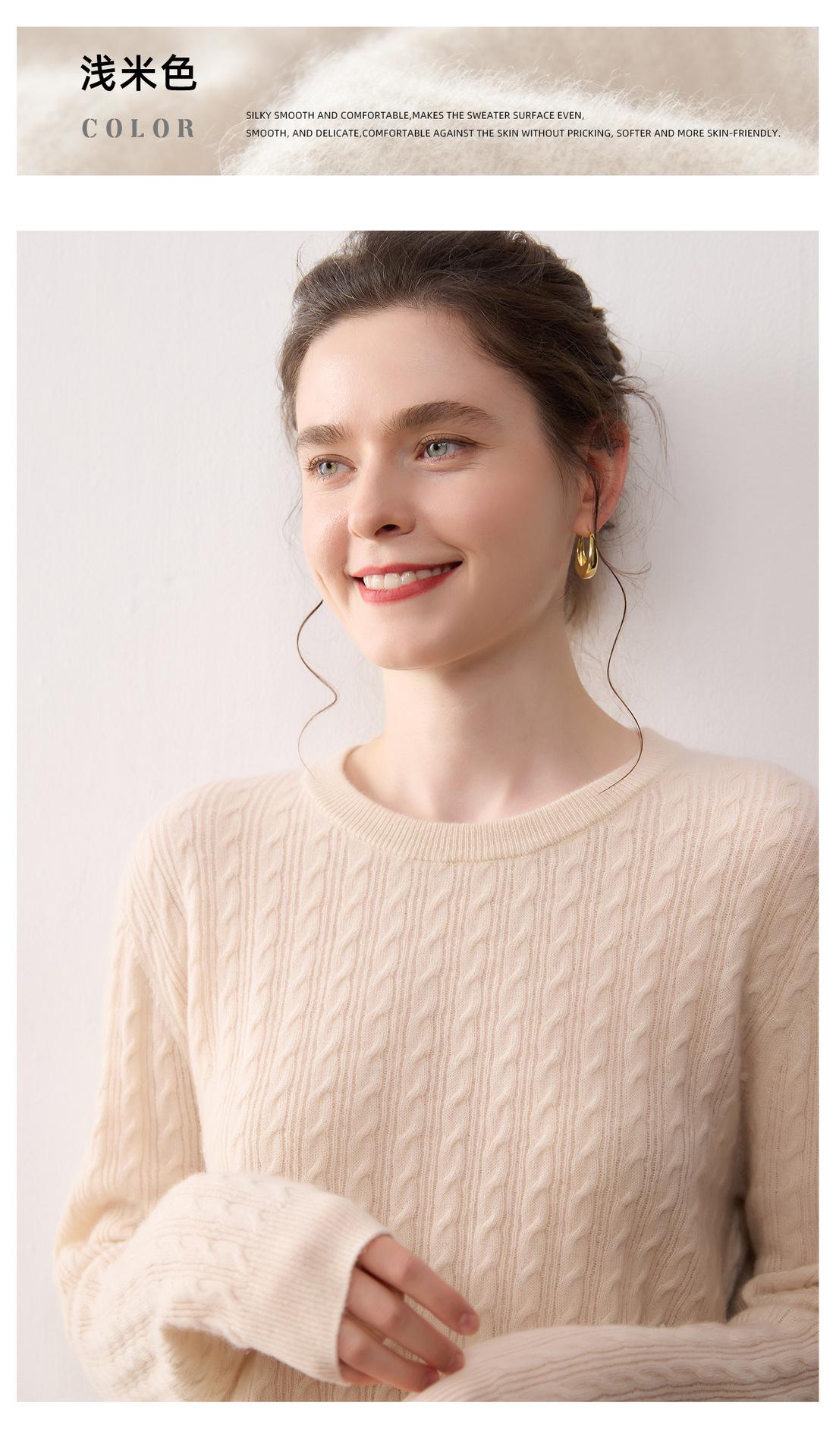 Suéter de Cachemira 100% Pura para Mujer Jersey Sencillo de Cuello Redondo Capa Interior Base Otoño Invierno Nuevo Estilo Dulce Tejido de Cable
